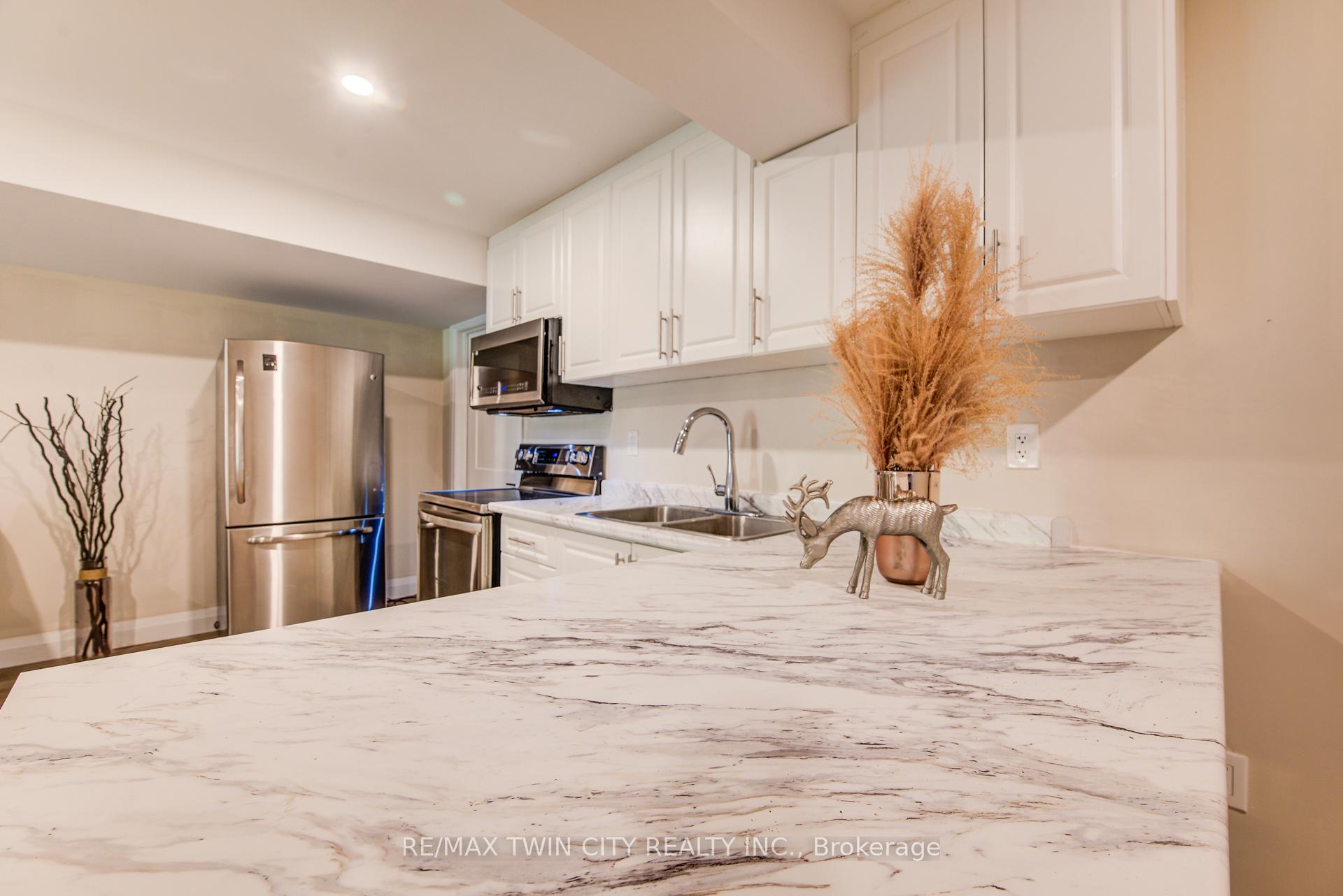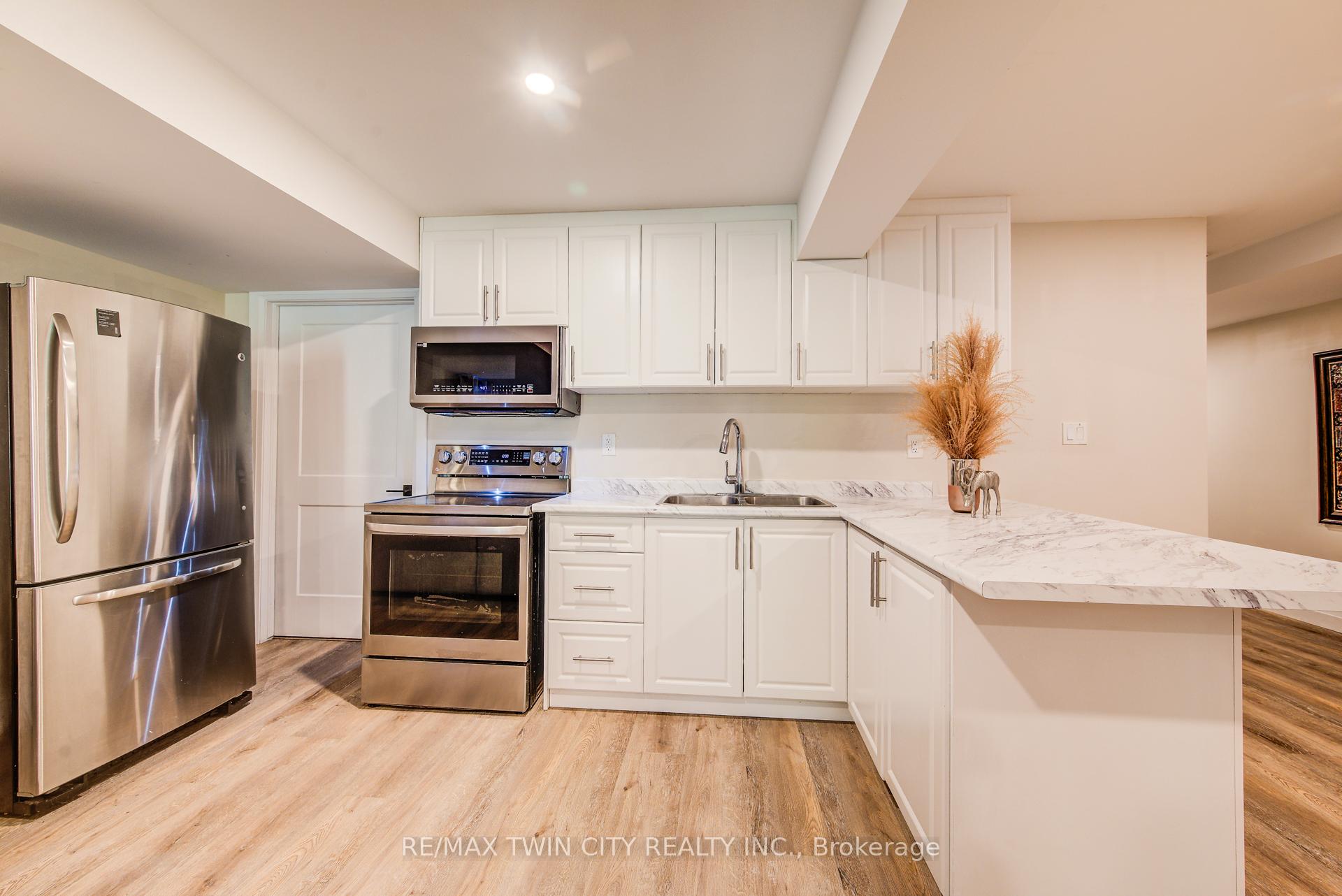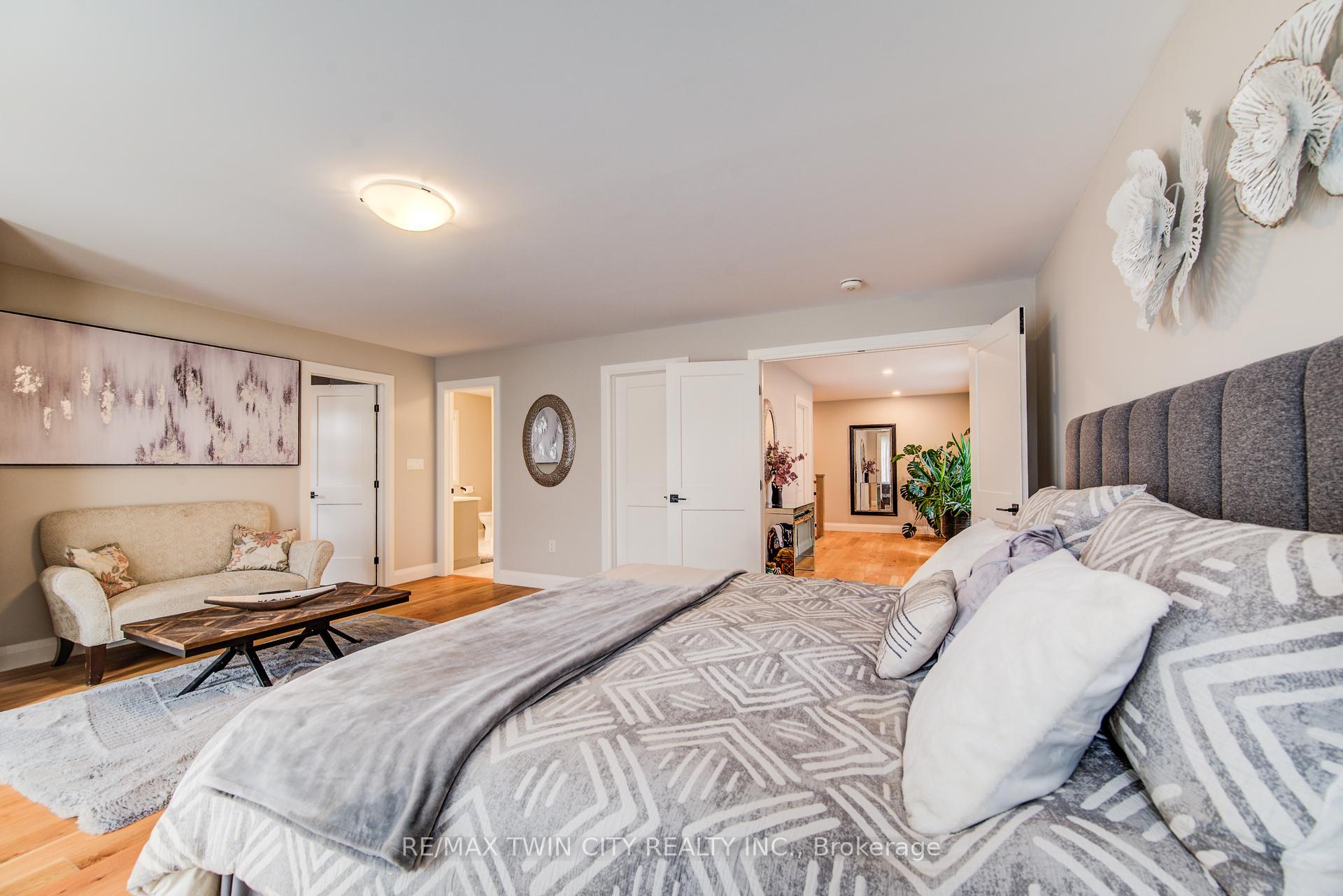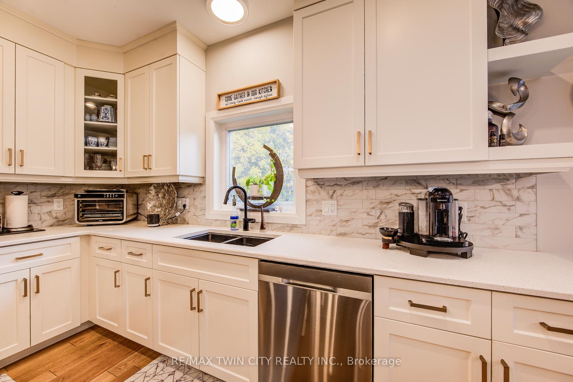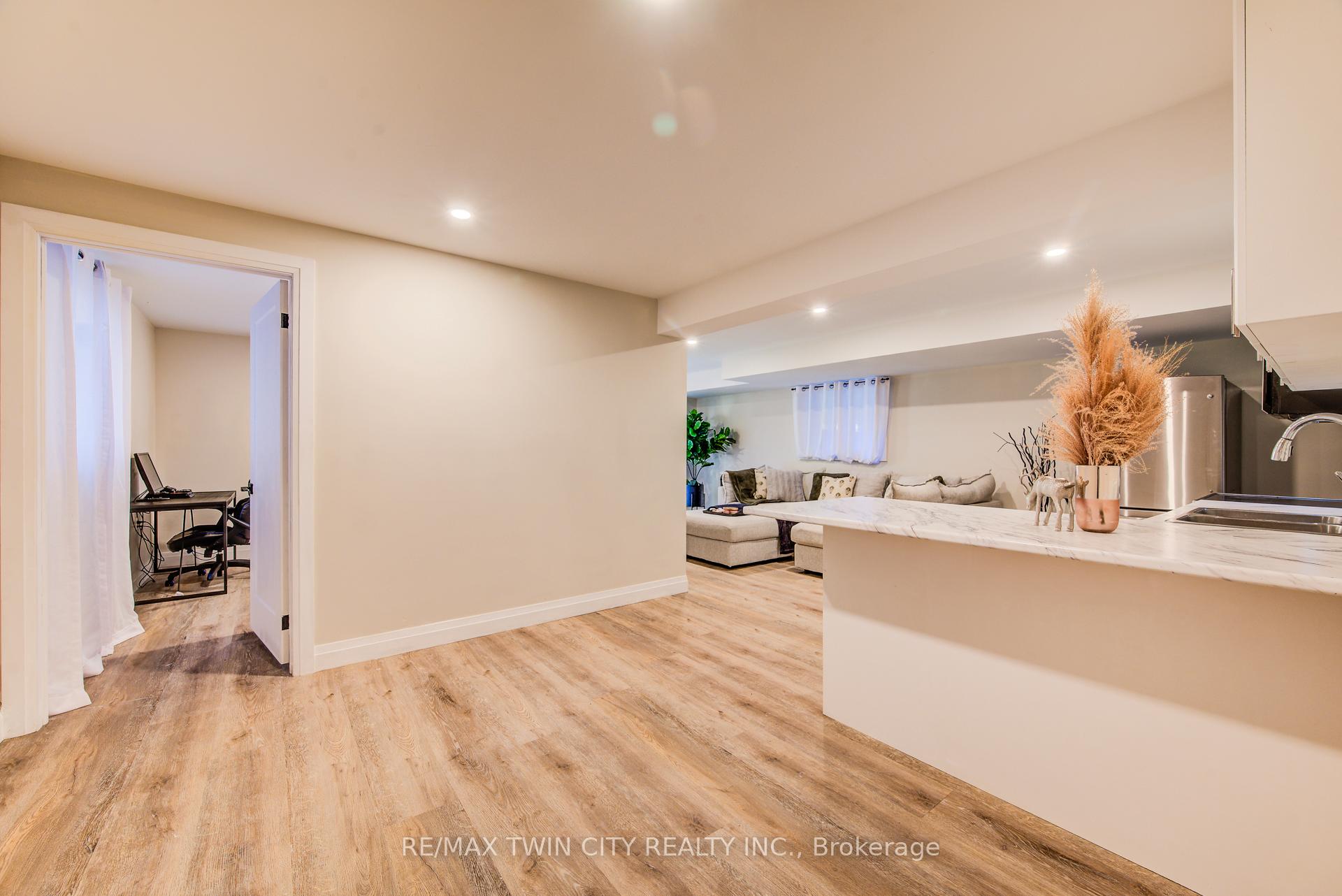 This stunning, former Crescent model Home in Doon Crossing is complete top to bottom with luxury finishes. No item has been overlooked when it comes to this beautifully finished, Dundee B model in South Kitchener, complete with a walkout basement with a bedroom and a Kitchen, which makes it perfect for an in-law suite. Nestled amongst a private collection of custom homes, this 2-story home feels extremely lavish and spacious. Upon entry, you walk into a large foyer with ample storage and a 2-piece powder room. Once in the heart of the home, you will find a breathtaking kitchen with custom cabinetry with gold accents – including tall upper cabinets with crown moulding, quartz countertops, a massive island with pendant lighting, pot filler and tasteful backsplash. This kitchen is truly to die for. Adjacent to the kitchen, you will find a bright and open concept living room and a dining room, perfect for hosting friends and family. Rounding out the main floor is a separate office space for those working from home. Moving upstairs, you will find a custom staircase with glass panelling that leads you to the breathtaking master suite. The master suite is separate from the remaining 3 bedrooms on this floor, has two large walk-in closets and an ensuite you will never want to leave; it is complete with a soaker tub, walk-in shower with bench and a double vanity. The second floor has 3 other large bedrooms and another bathroom for the rest of the family. Chapel Hill Court is 7 minutes to the 401, close to shopping and great schools. There are ample walking trails in the area, a golf course and Conestoga College. Every detail in this home is finished with class and quality. Large windows throughout the home on every level for natural light, and a gorgeous glass staircase leading you to the upper level. Landscaped tastefully, fully fenced private backyard with an upper-level deck backing onto a natural environment. This home is a must-see! You will truly be amazed!