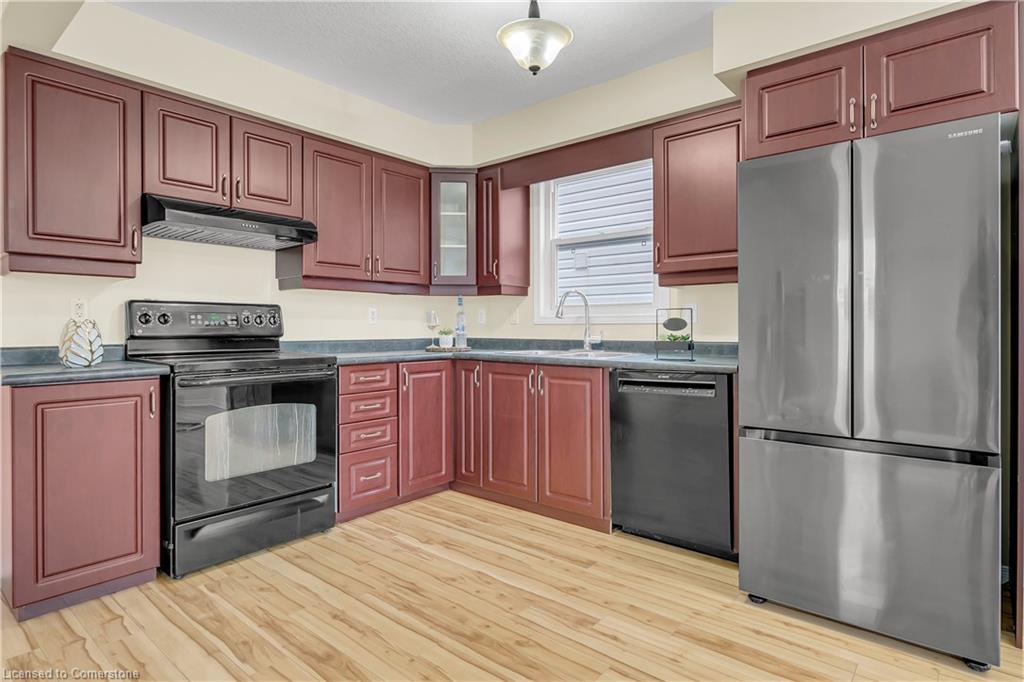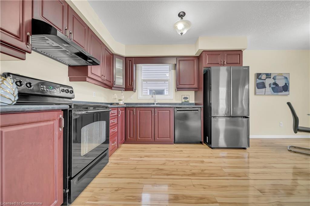 Welcome to 934 Creekside Drive, Waterloo, located in one of the most desirable neighborhoods in the region. This sought-after community is known for its top-rated schools, including Abraham Erb Public School & Laurel Heights Secondary School, making it an ideal choice for growing families, investors & first-time home buyers. This stunning detached home sits on a ravine lot, with no front or backyard neighbors. The property features 3 parking spaces, including a garage & 2-car driveway. Step inside this freshly painted house where The main level features luxury laminate flooring & a spacious open-concept layout. The bright & airy living room is filled with natural light. The kitchen is fully equipped with recently updated appliances & a brand-new refrigerator (2024). The dining area seamlessly connects to the kitchen, making mealtime convenient. Moving upstairs, you’ll find 3 spacious bedrooms & a full 4pc bathroom. All the bedroom are generously sized features ample natural light & a well-organized closets. The 4pc bathroom includes a Jacuzzi & a built-in closet for extra storage. Downstairs is The fully finished walkout basement that offers endless possibilities! This level includes a huge recreation room with cozy fireplace & a 3pc bathroom. It also features 4 built-in ceiling speakers, enhancing the entertainment experience & provides plenty of storage space. Step outside to the fully fenced backyard, where a double-deck will be an ideal spot to host summer BBq’s or entertaining guests while enjoying the serene & peaceful views of pond & trails. Conveniently located within walking distance to top-rated schools, grocery stores, scenic trails & essential amenities. It is also just a short drive from Conestoga Mall, The Universities, Laurel Creek Conservation Area, St. Jacobs Market, The Boardwalk & Costco Plaza. This is a rare opportunity to own a beautiful home in a fantastic location! Don’t miss out—Book your private showing today!