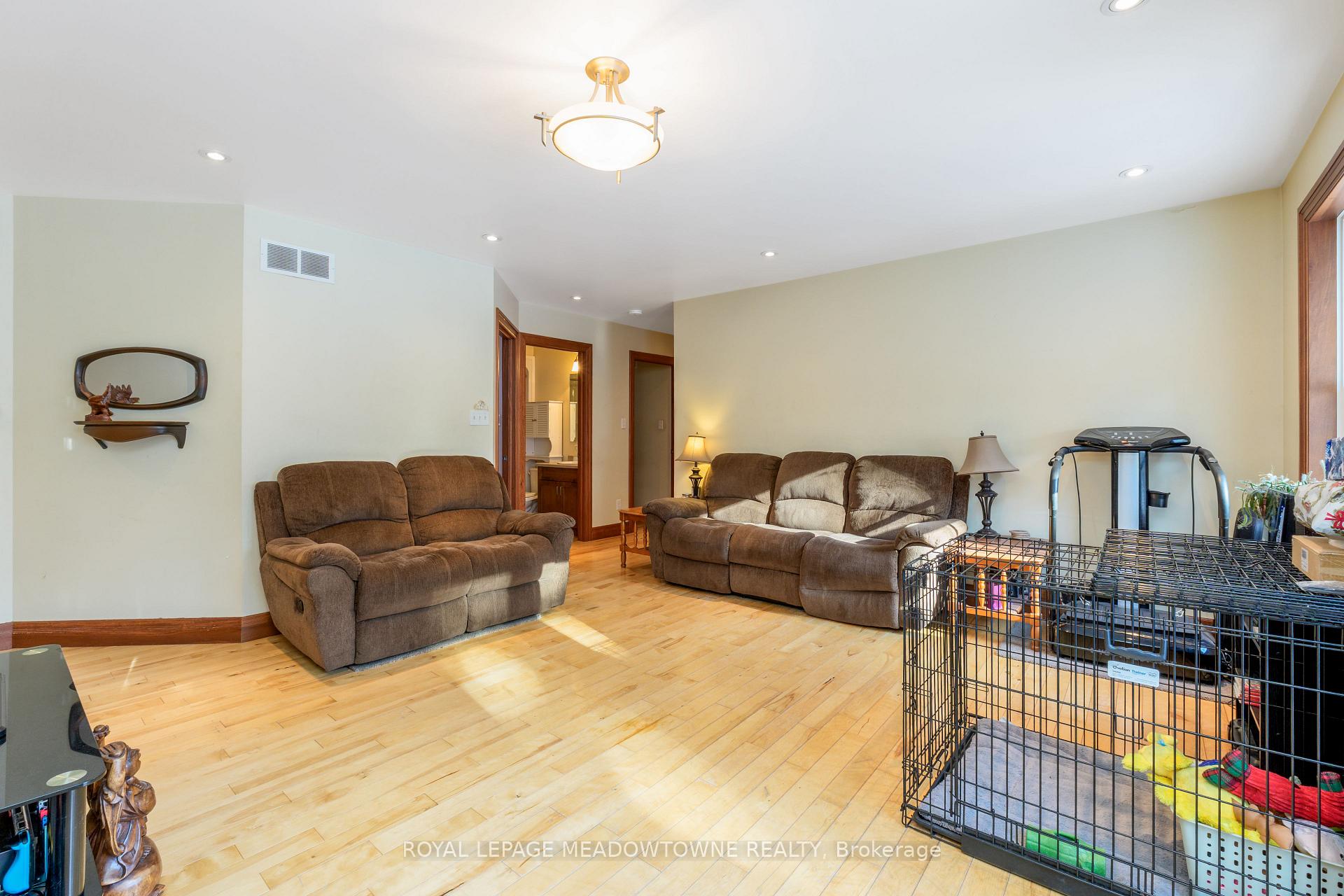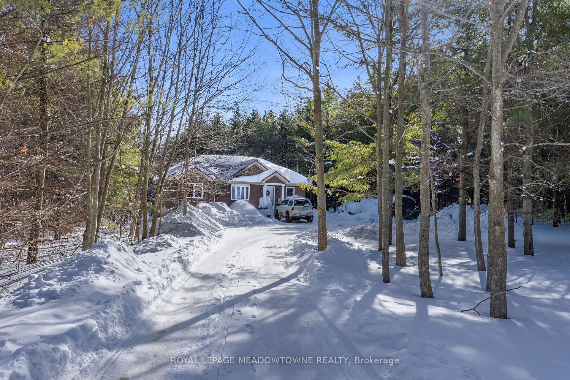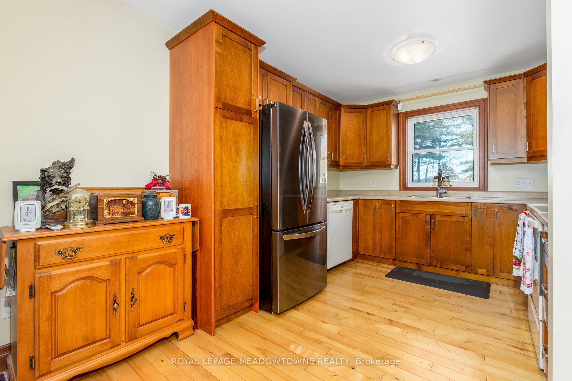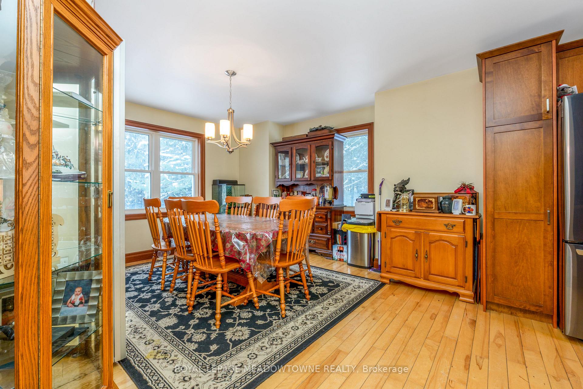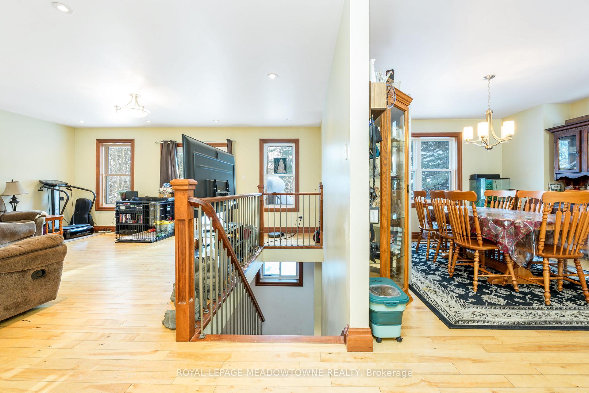 Nestled on a private and serene 1+ acre lot surrounded by mature trees, this beautifully maintained 3+1 bedroom, 2 bathroom detached raised bungalow offers the perfect blend of modern comfort and peaceful country living. Built in 2013 and topped with a durable metal roof, this home is set in a quiet rural setting while remaining conveniently close to town amenities.The welcoming foyer opens into a bright, open-concept living room featuring hardwood flooring, pot lights, and a walk-out to the deck. The dining area is seamlessly overlooked by the kitchen, creating an easy flow for gatherings. Hardwood flooring continues throughout, and the kitchen offers ample cabinetry and counter space to meet all your culinary needs.The main level hosts a spacious primary suite complete with a double closet and a private 3-piece ensuite. Two additional bedrooms on this level are generously sized and feature large closets.The finished lower level expands your living space with a massive open-concept recreation room, laminate flooring, two above-grade windows, and a walk-out to the backyard. A convenient fourth bedroom with an above-grade window, ample storage, a mechanical room, and a laundry room with a rough-in for an additional bathroom complete this level.Step outside to a lush, private backyard-perfect for relaxing, entertaining, or enjoying nature. Ideally located just a short drive to all major amenities, including GO stations in both Acton and Georgetown. Additional highlights include a newly added propane forced-air furnace (2024). A fantastic opportunity to enjoy tranquil country living without sacrificing convenience.