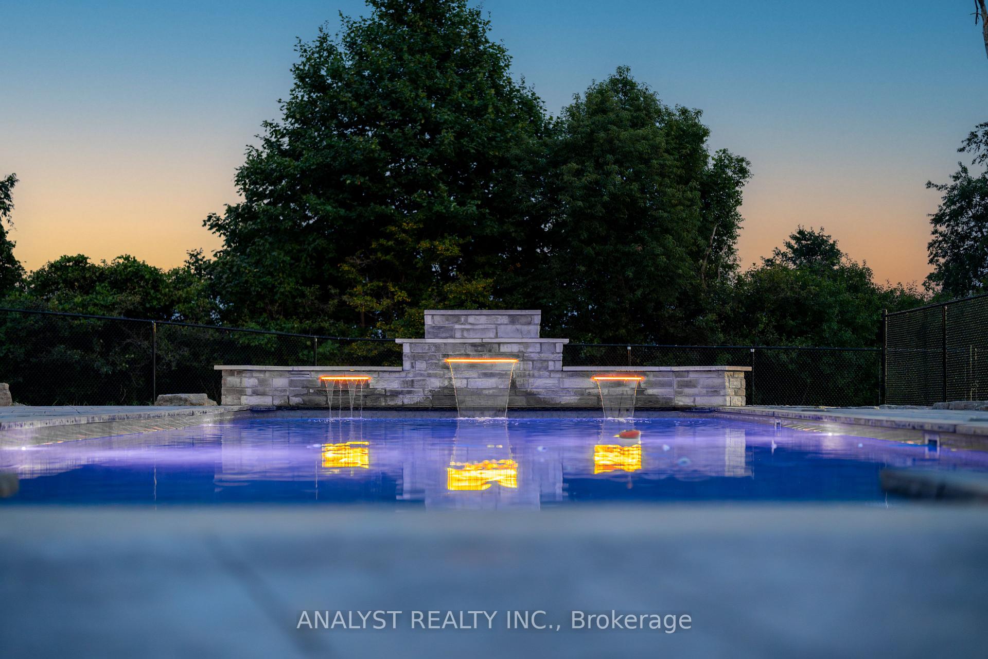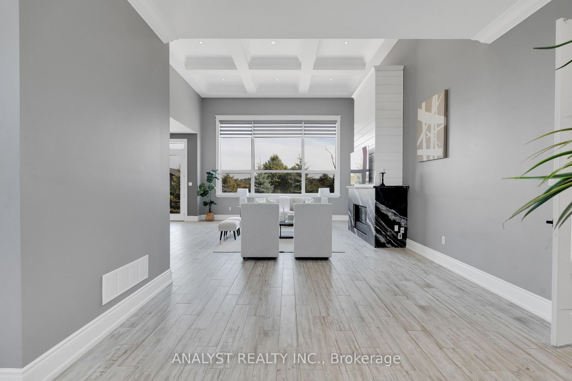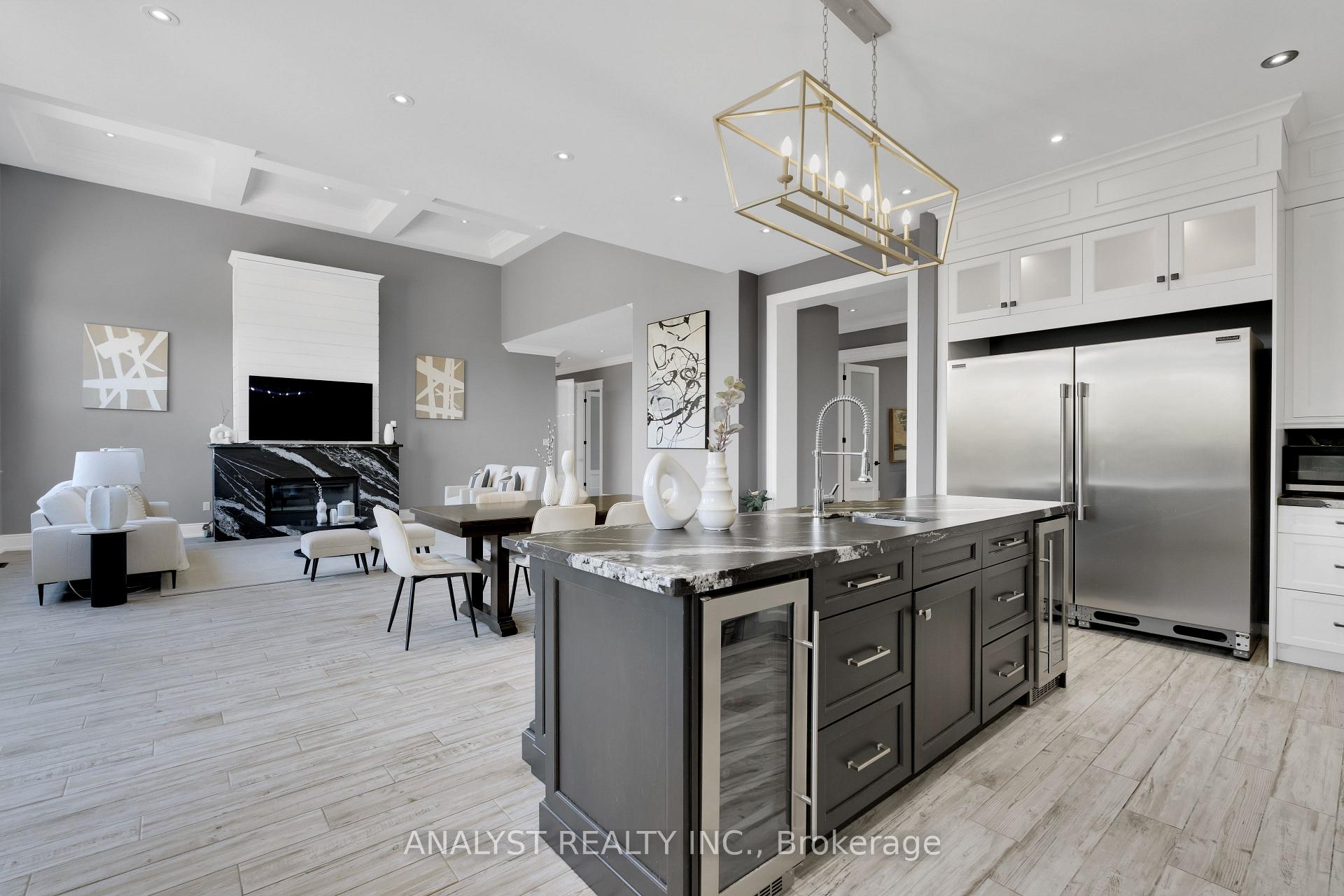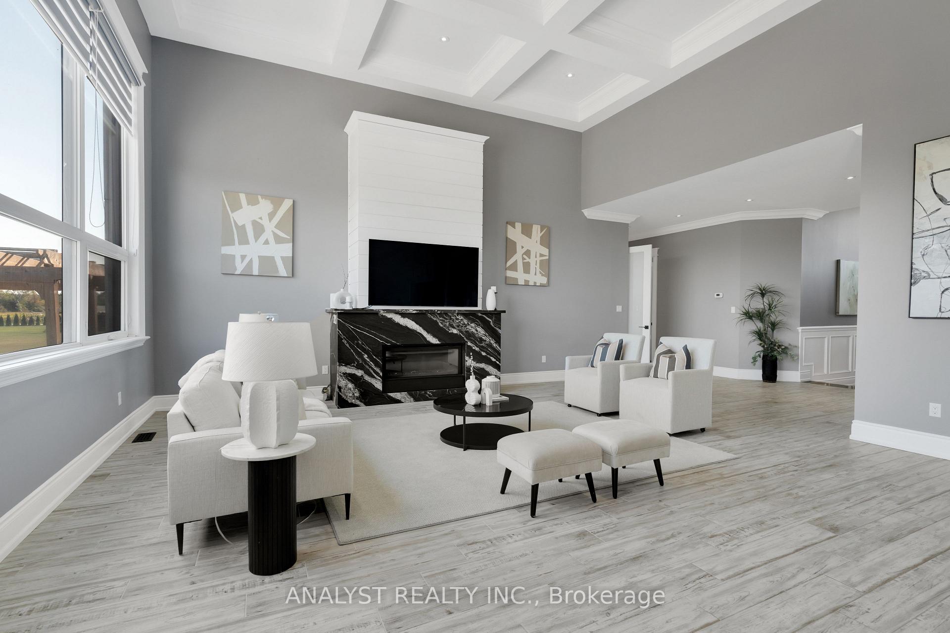Welcome to 9383 Wellington 124 Road in Erin, an absolutely stunning custom-built bungalow offering over 5,700 square feet of finished living space. Set on 1.31 acres of beautifully landscaped grounds, this home is designed with exceptional craftsmanship and thoughtful details throughout.The main level spans 2,846 square feet and features an open-concept layout with soaring 10- to 15-foot ceilings. A striking 9-by-15-foot picture window floods the family room with natural light, while the gas fireplace adds warmth and elegance. The gourmet kitchen is a showpiece, complete with a centre island, leathered granite counters, stainless steel appliances, and upper and lower accent lighting. The primary suite is a true retreat with a lavish spa-like ensuite, while the additional bedrooms offer spacious layouts, walk-in closets, and a Jack-and-Jill bath.The fully finished lower level adds another 2,876 square feet of living space, featuring a massive recreation room, guest suite, and full bath. This versatile space is perfect for entertaining, relaxing, or hosting extended family and friends.Outdoors, the property continues to impress with a heated saltwater pool, cascading waterfalls, a sports pad, and a cabana that can also serve as a separate garage with space for up to four additional vehicles. Along with the oversized three-car garage with a drive-thru bay and the long private driveway, this home offers exceptional parking and functionality.This is more than a home its a lifestyle. Combining luxury, recreation, and comfort, 9383 Wellington 124 Road delivers the best of both home and cottage living in one remarkable property.