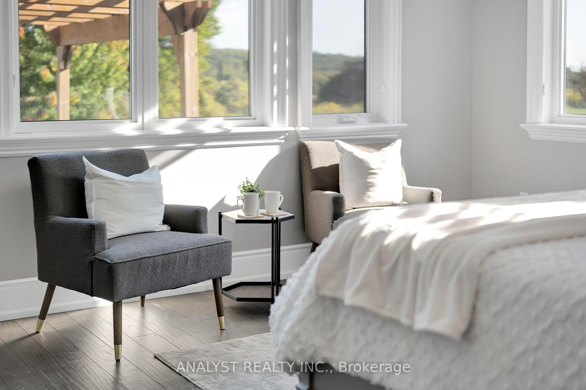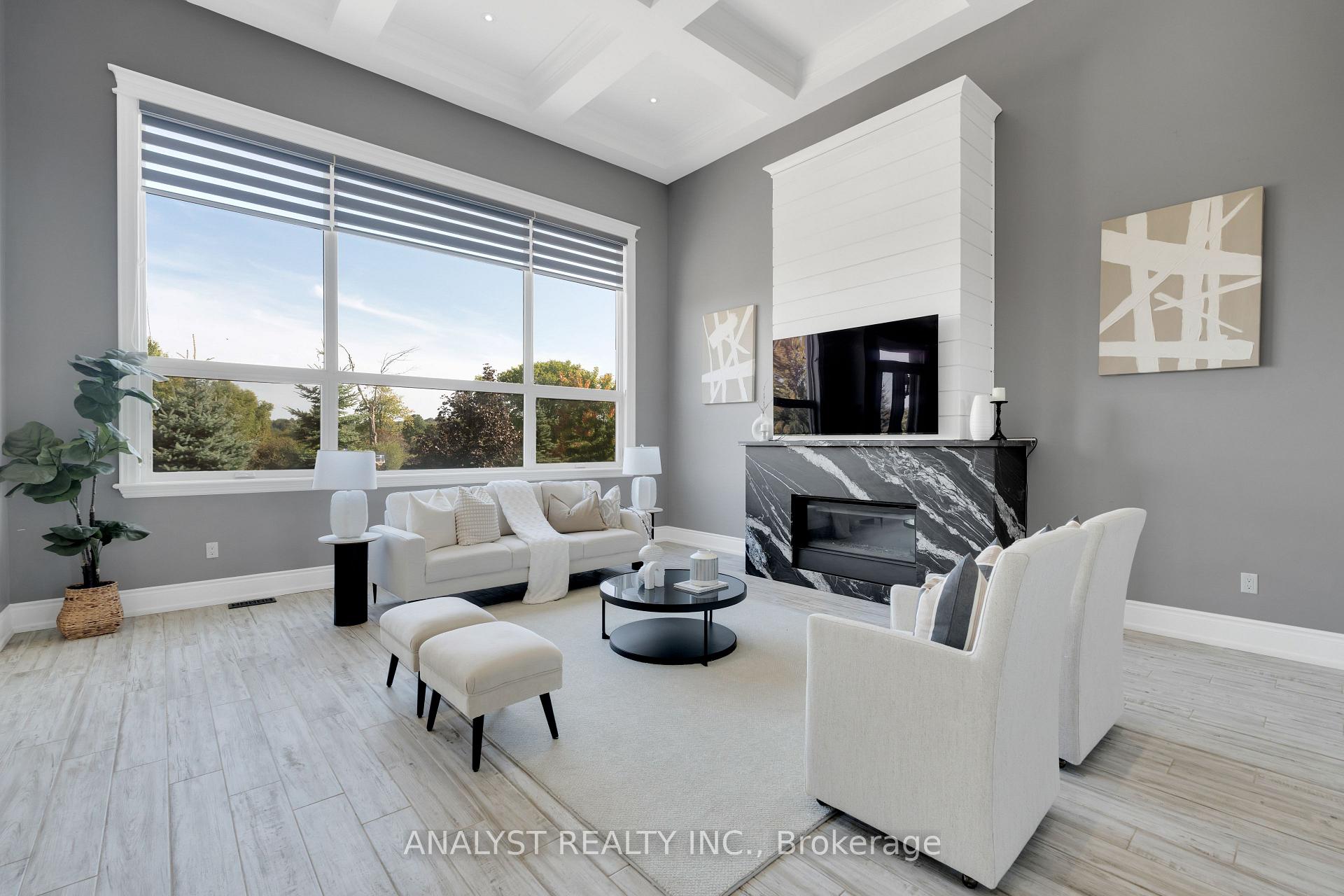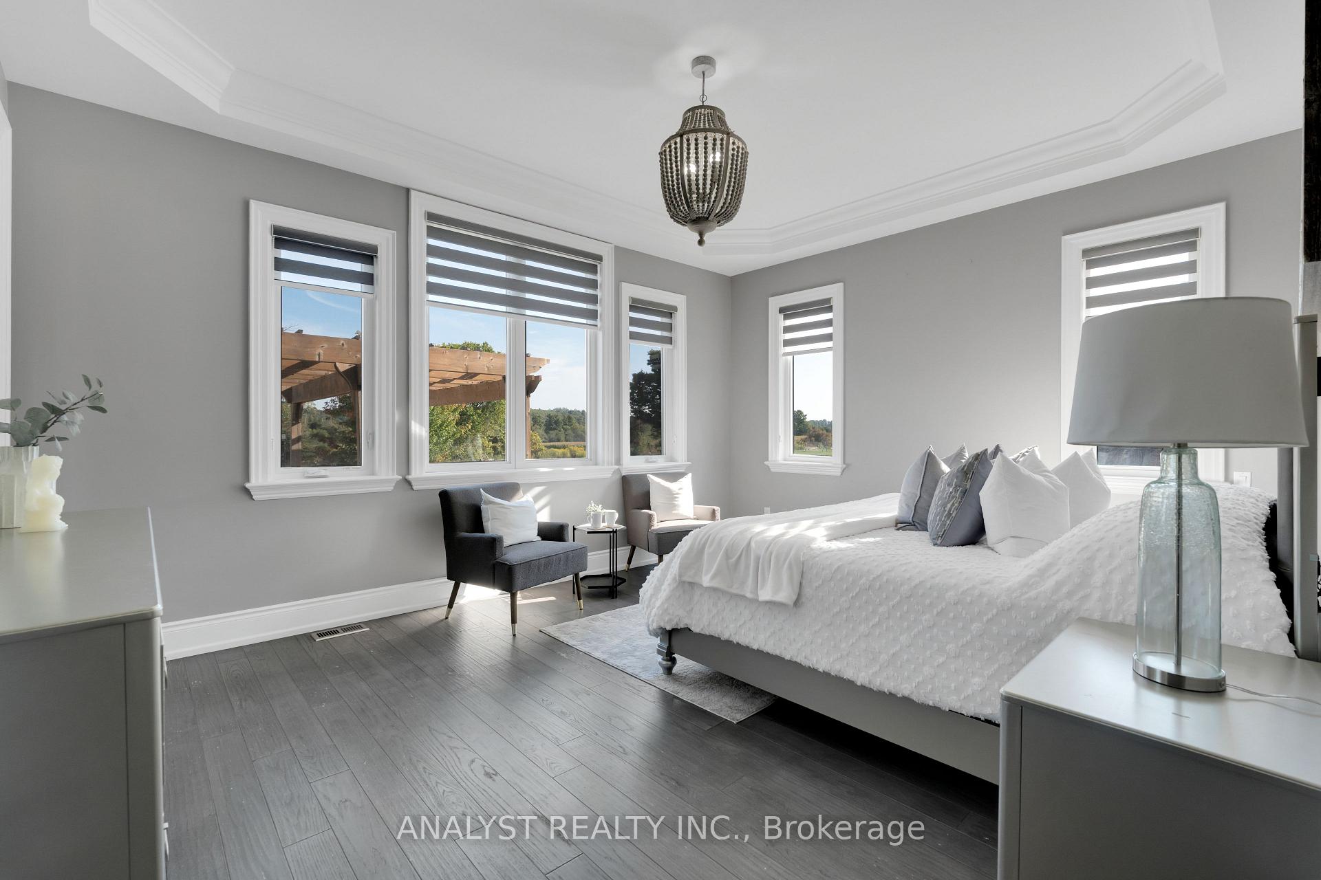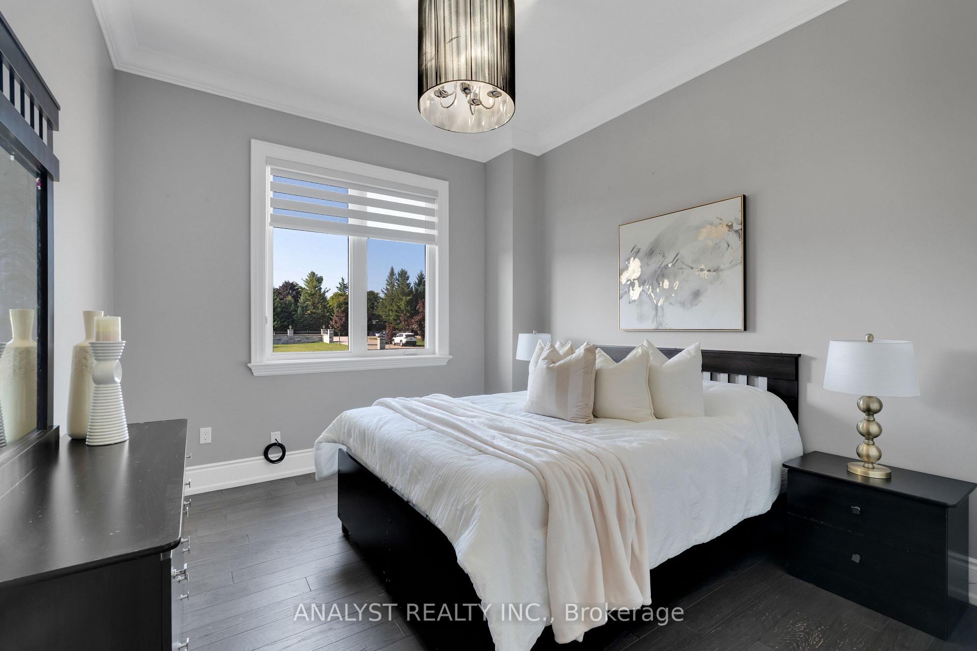 Welcome to 9383 Wellington 124 Road in Erin, an absolutely stunning custom-built bungalow offering over 5,700 square feet of finished living space. Set on 1.31 acres of beautifully landscaped grounds, this home is designed with exceptional craftsmanship and thoughtful details throughout.The main level spans 2,846 square feet and features an open-concept layout with soaring 10- to 15-foot ceilings. A striking 9-by-15-foot picture window floods the family room with natural light, while the gas fireplace adds warmth and elegance. The gourmet kitchen is a showpiece, complete with a centre island, leathered granite counters, stainless steel appliances, and upper and lower accent lighting. The primary suite is a true retreat with a lavish spa-like ensuite, while the additional bedrooms offer spacious layouts, walk-in closets, and a Jack-and-Jill bath.The fully finished lower level adds another 2,876 square feet of living space, featuring a massive recreation room, guest suite, and full bath. This versatile space is perfect for entertaining, relaxing, or hosting extended family and friends.Outdoors, the property continues to impress with a heated saltwater pool, cascading waterfalls, a sports pad, and a cabana that can also serve as a separate garage with space for up to four additional vehicles. Along with the oversized three-car garage with a drive-thru bay and the long private driveway, this home offers exceptional parking and functionality.This is more than a home its a lifestyle. Combining luxury, recreation, and comfort, 9383 Wellington 124 Road delivers the best of both home and cottage living in one remarkable property.
