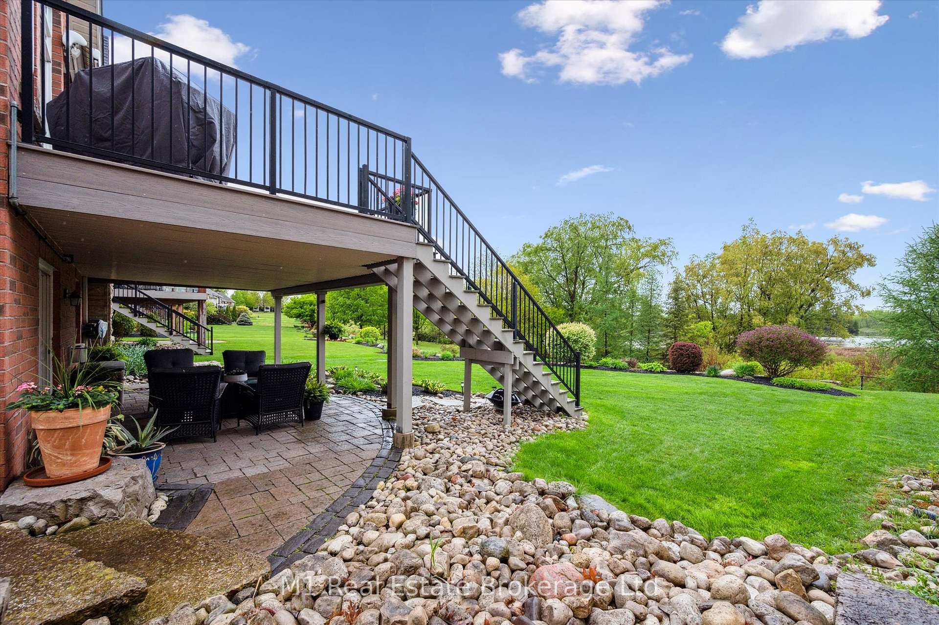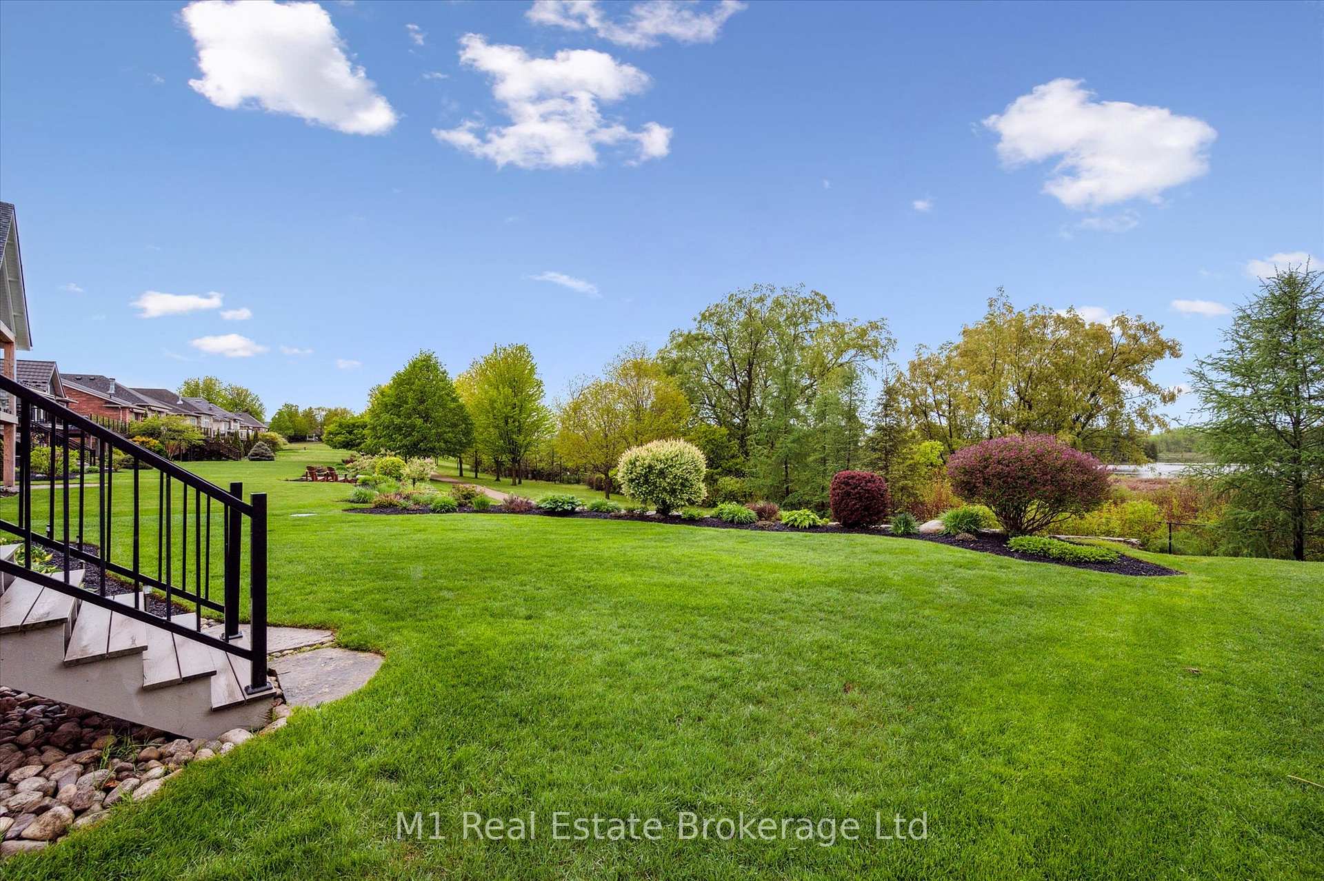 Tucked within an exclusive enclave known for its tranquility and sense of community, this refined bungalow offers a unique blend of modern comfort and natural beauty. One of only ten residences with direct access to the peaceful waters of Mill Pond, this home is a hidden gem for those who cherish outdoor living and serene surroundings. Step outside and discover your own private gateway to over 20 acres of untouched woodland and scenic walking trails just steps from your deck. With no immediate rear neighbors and unobstructed views of the water, this property offers unmatched seclusion and connection to nature.Inside, the thoughtfully designed main floor features two generously sized bedrooms and a versatile den, ideal for a home office or guest accommodations. A well-equipped kitchen awaits with granite surfaces,built-in appliances and a center island with seating, all designed for culinary creativity. The living area is bright an airy, opening itself up to a large deck. The primary suite is a peaceful retreat with vaulted ceilings which are a dream to wake up to, offering a walk-in closet, ensuite spa bath with a glass-enclosed shower and a deep soaker tub perfect for unwinding. Enjoy panoramic pond views as you dine or relax on the composite deck. Take shelter from the rain underneath the deck on a patio which was carefully designed to enjoy when the sun is not shining. Natural gas BBQ hookups make outdoor cooking a breeze.Downstairs,the finished walk-out basement expands your living space with a recreation room, an additional bedroom, a dedicated fitness area, and ample storage for all your needs. Landscaped gardens designed for year-round beauty and minimal upkeep. Book your showing today!