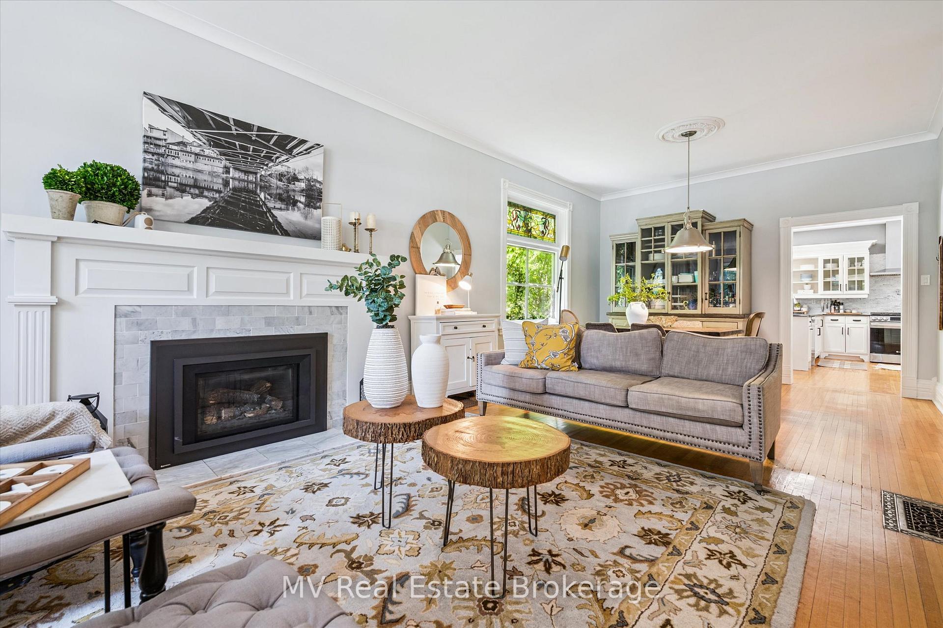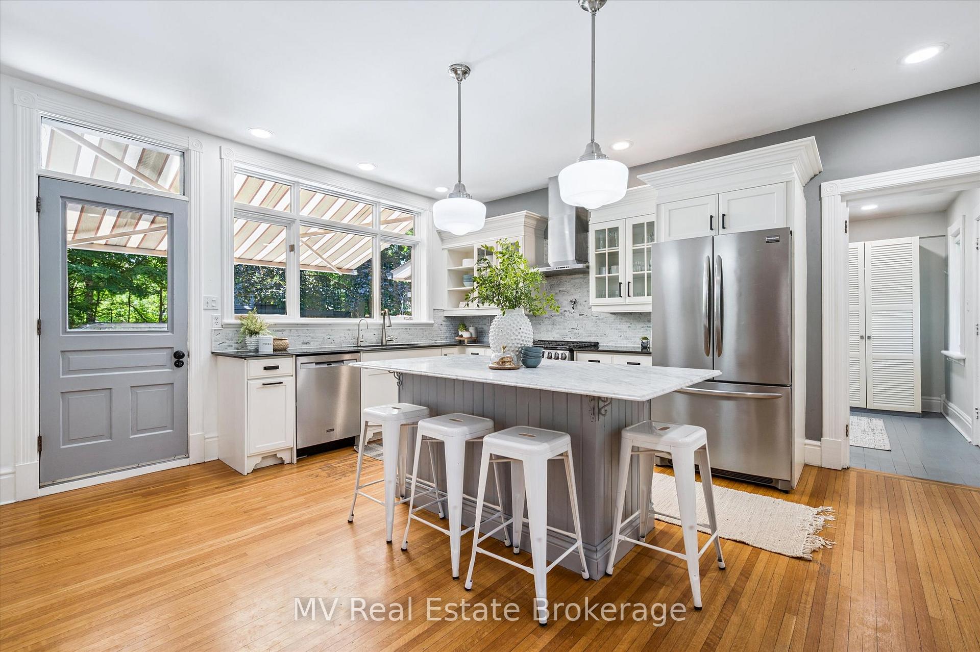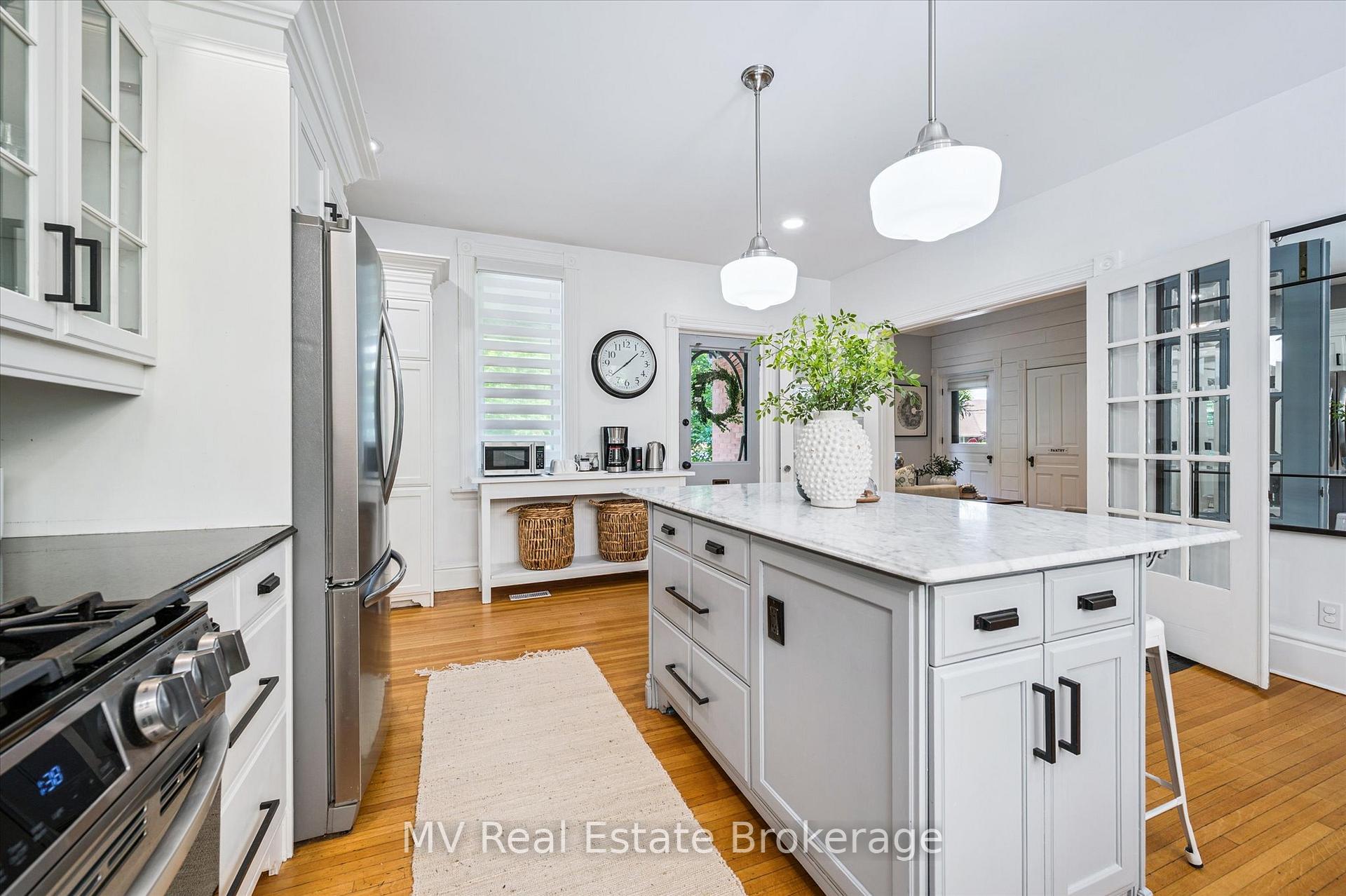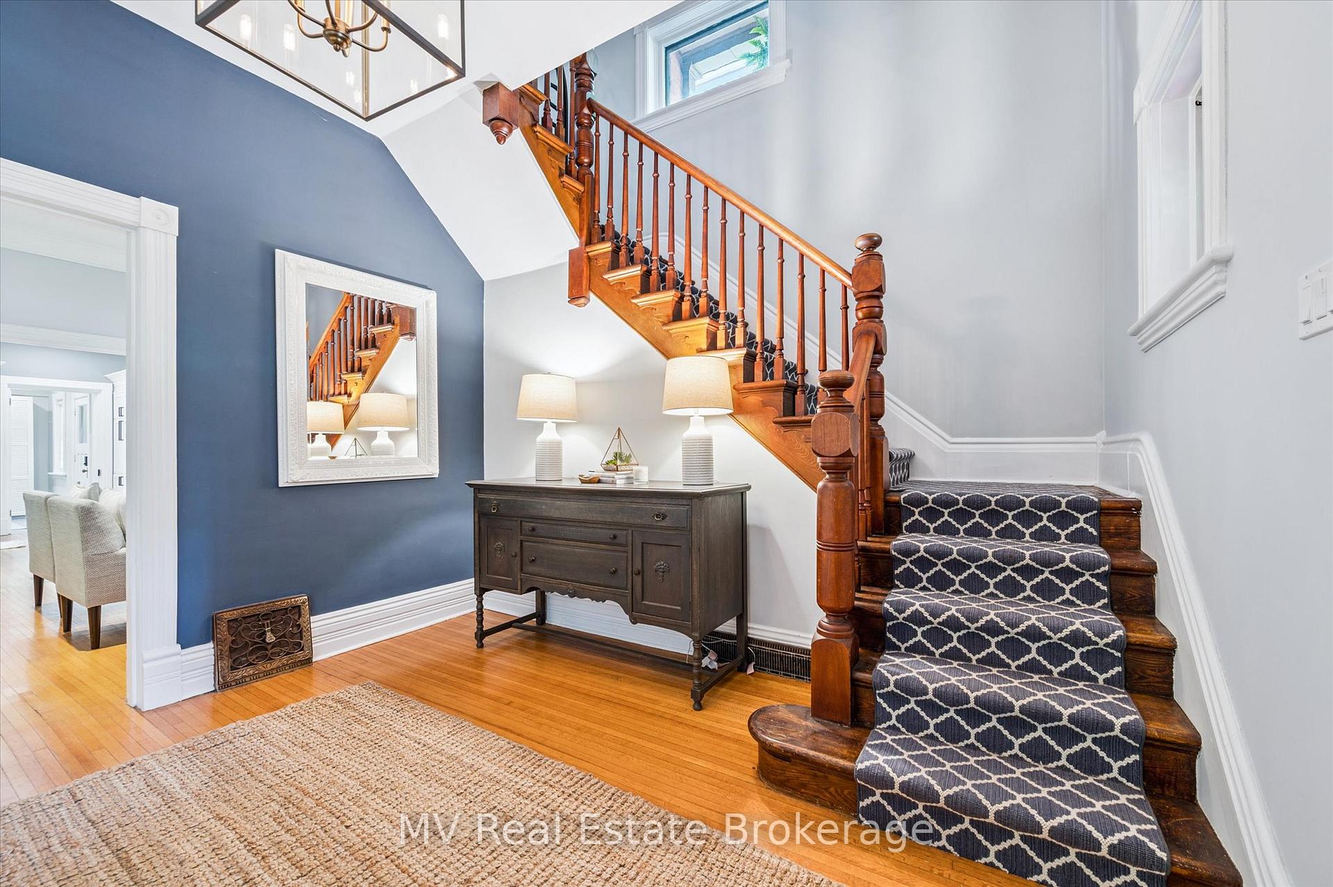 Escape to Elora and discover one of the village’s most iconic homes. Built by the town’s original mill owner around 1900, this nearly 3,500 sq ft heritage home blends timeless character with modern comfort – just steps from Downtown. With soaring ceilings, oversized principal rooms, and large windows, this home is flooded with natural light and an incredible sense of space. Solid hardwood floors, stained glass accents, and beautiful pocket doors highlight the craftsmanship of a bygone era, thoughtfully preserved throughout. The renovated kitchen features stone counters, premium finishes, and a generous island that flows effortlessly into both the formal and informal living areas. Upstairs, the timeless and luxurious primary suite offers a true retreat, complete with a stunning ensuite bathroom and a massive walk-in closet/dressing room. Two additional generous bedrooms offer comfort and privacy and as an added bonus – a third story loft adds even more space for guests, work, or play. Outside, imagine yourself enjoying a cup of tea on the wraparound front porch, perfect for peaceful mornings and neighbourly chats. The pool-sized backyard is beautifully landscaped with mature trees (one with a swing!), hardscaping, firepit, two decks, and a hot tub for year-round enjoyment. Deep historical roots, unbeatable curb appeal, and a walkable location just beyond the tourist path, this is a rare opportunity to own a piece of Elora’s living history.