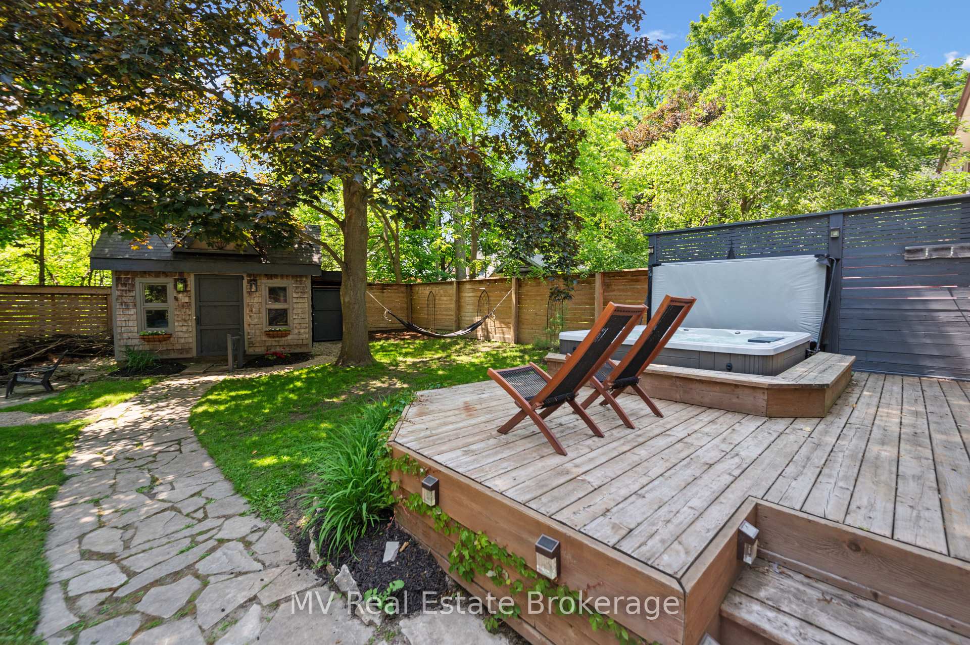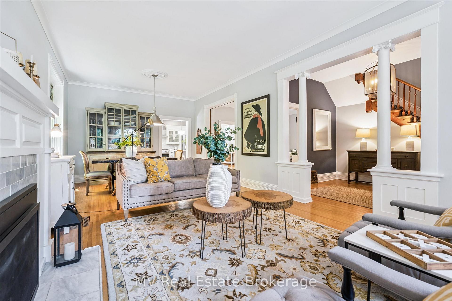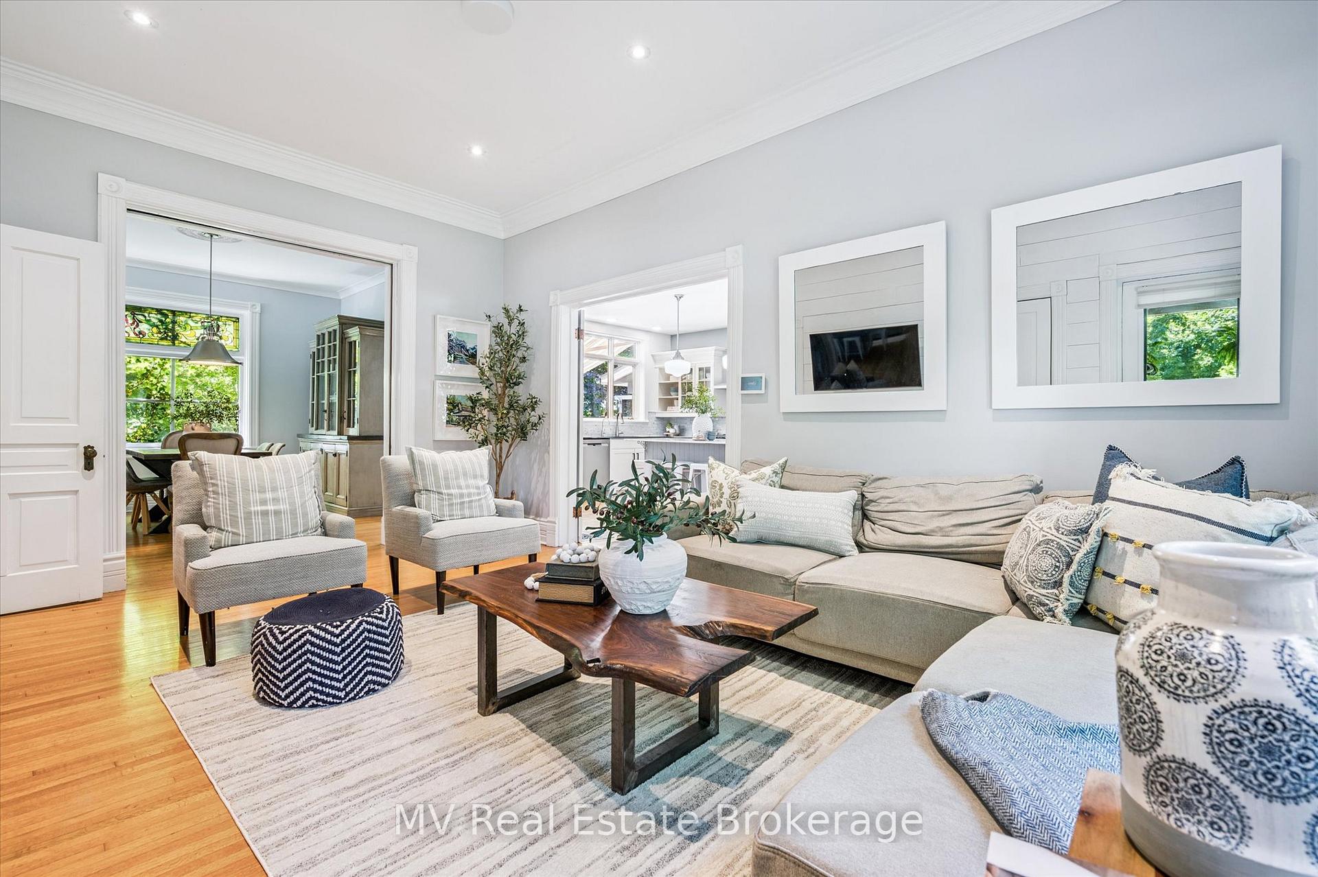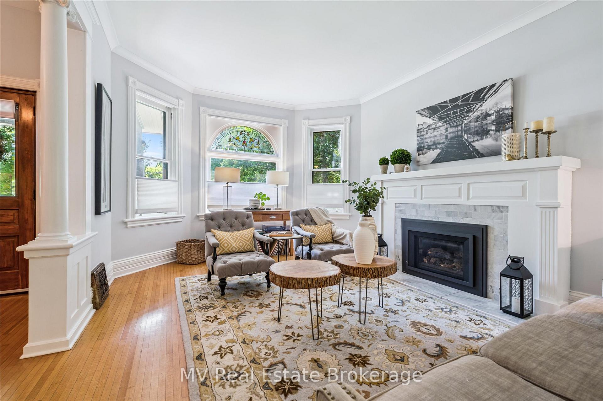 Escape to Elora and discover one of the village’s most iconic homes. Built by the town’s original mill owner around 1900, this nearly 3,500 sq ft heritage home blends timeless character with modern comfort – just steps from Downtown. With soaring ceilings, oversized principal rooms, and large windows, this home is flooded with natural light and an incredible sense of space. Solid hardwood floors, stained glass accents, and beautiful pocket doors highlight the craftsmanship of a bygone era, thoughtfully preserved throughout. The renovated kitchen features stone counters, premium finishes, and a generous island that flows effortlessly into both the formal and informal living areas. Upstairs, the timeless and luxurious primary suite offers a true retreat, complete with a stunning ensuite bathroom and a massive walk-in closet/dressing room. Two additional generous bedrooms offer comfort and privacy and as an added bonus – a third story loft adds even more space for guests, work, or play. Outside, imagine yourself enjoying a cup of tea on the wraparound front porch, perfect for peaceful mornings and neighbourly chats. The pool-sized backyard is beautifully landscaped with mature trees (one with a swing!), hardscaping, firepit, two decks, and a hot tub for year-round enjoyment. Deep historical roots, unbeatable curb appeal, and a walkable location just beyond the tourist path, this is a rare opportunity to own a piece of Elora’s living history.