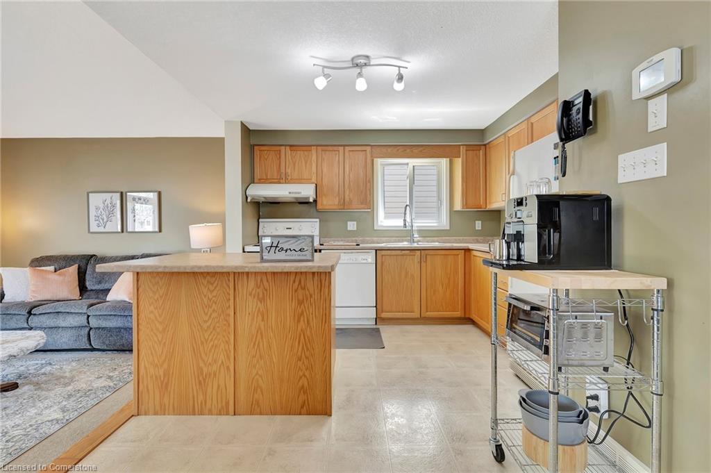 Welcome to this well-maintained 3-bedroom, 2-bathroom home located in a quiet and family-friendly neighbourhood in Waterloo’s desirable Colonial Acres/East Bridge area. With plenty of natural light and a functional layout, this home offers comfort and convenience in a great location. The main floor features a bright living room with vaulted ceilings and a sliding door that leads to the backyard. The eat-in kitchen includes an island for extra prep space and seating, and there is a main floor powder room. Upstairs, you’ll find three bedrooms and a full 4-piece bathroom with the primary bedroom having a large closet space. The finished basement adds even more living space, including a comfortable rec-room, a bonus room that can be used as a home office or fourth bedroom, a large utility and laundry area, and a good-sized cold storage room. The backyard is fully fenced with low-maintenance landscaping and a newly refinished deck—perfect for relaxing or hosting friends and family. There’s also a single-car garage and the 2-car cement driveway was more recently redone. This home is close to parks, trails, great schools, shopping, and RIM Park. Golf courses and Conestoga Mall are nearby, and there’s easy access to the expressway and Highway 85 for commuting. Don’t miss out on this amazing opportunity and book your showing today.