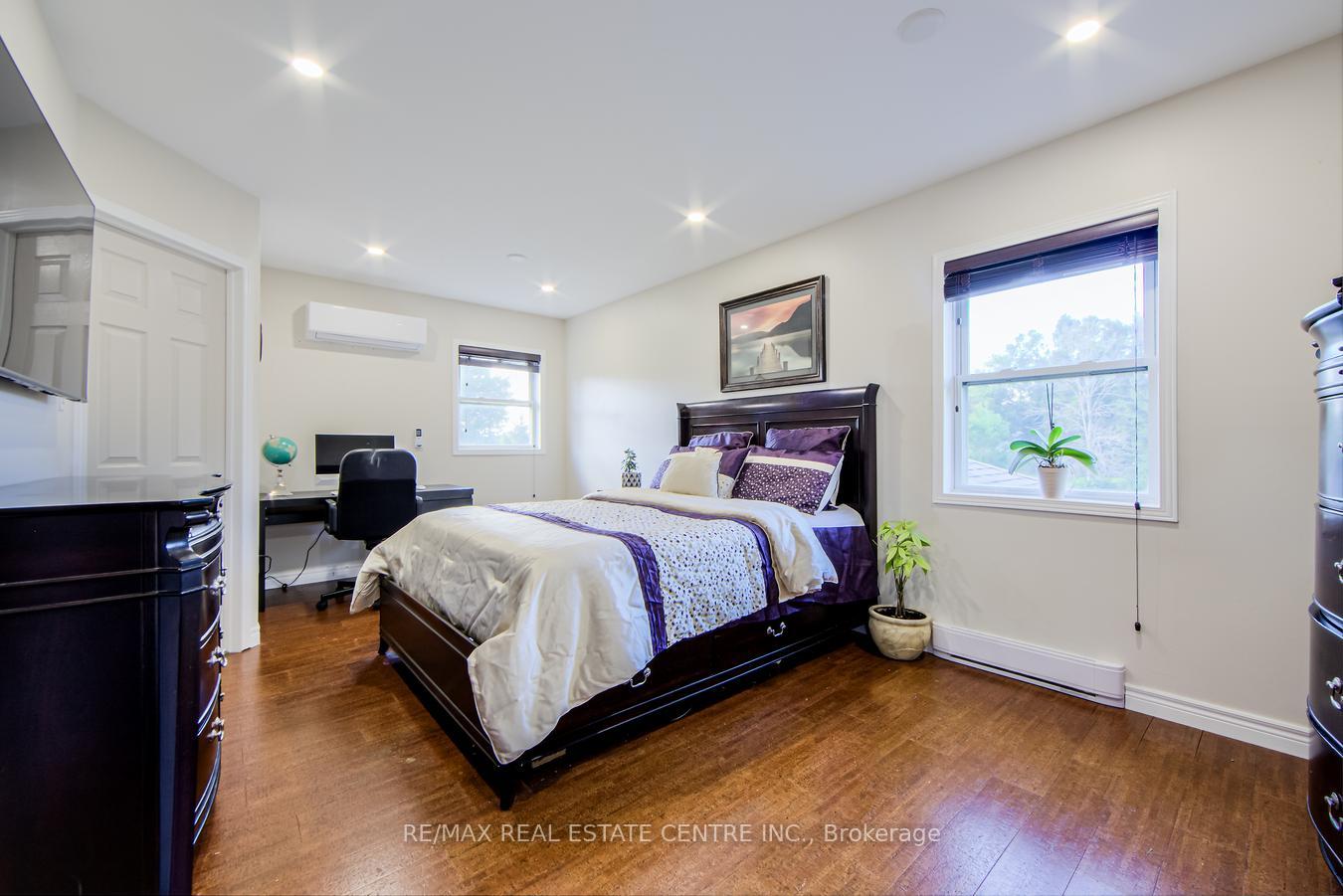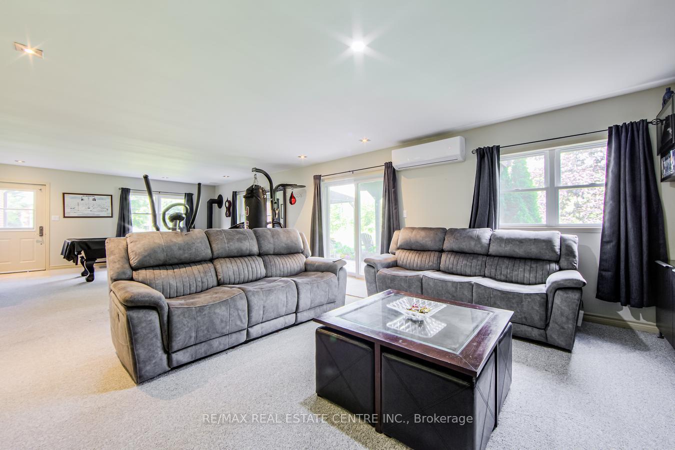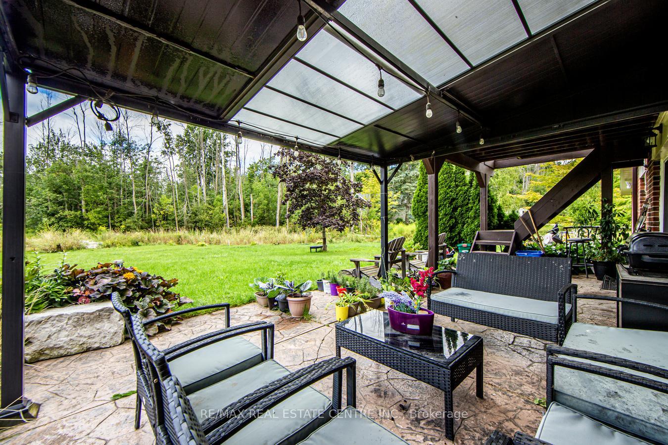 Discover this well-maintained raised bungalow set on a generous countryside lot shy of 1 acre, offering over 2,000 sq. ft. of finished living space in a peaceful rural setting. Featuring 3 spacious bedrooms and 2 bathrooms, including a private semi-ensuite off the primary bedroom, this home is designed for comfort and convenience. The open-concept floor plan creates a bright and airy atmosphere, with abundant natural light flowing through both levels. Over $50,000 spent in recent upgrades further enhance the value and comfort of this property. Notable improvements include a new heat pump, a Rain Soft water filtration system, stylish pot lights both inside and outside the property and a fiberglass roof on the shed for long-term durability. The finished 2-car garage provides versatility for parking, storage, or workshop projects, while the separate entrance to the lower level offers excellent in-law suite potential or additional income opportunity. Outdoors, the property shines with recent landscaping upgrades, including armor stones and hydroseeding for both beauty and functionality. A charming back bridge leads to a private entertaining area complete with a cozy fire pit perfect for quiet evenings or hosting gatherings. With nearly an acre of land, there is ample room for outdoor activities, gardening, or simply enjoying the tranquility of country living. Perfectly located near Georgetown, Brampton, and Mississauga, close to Trafalgar Road and only 20 minutes to Highways 401 and 407, this home offers the best of both worlds – countryside serenity with city convenience. With low utilities, modern upgrades, and a move-in-ready design, this bungalow is the ideal blend of comfort, space, and rural charm.