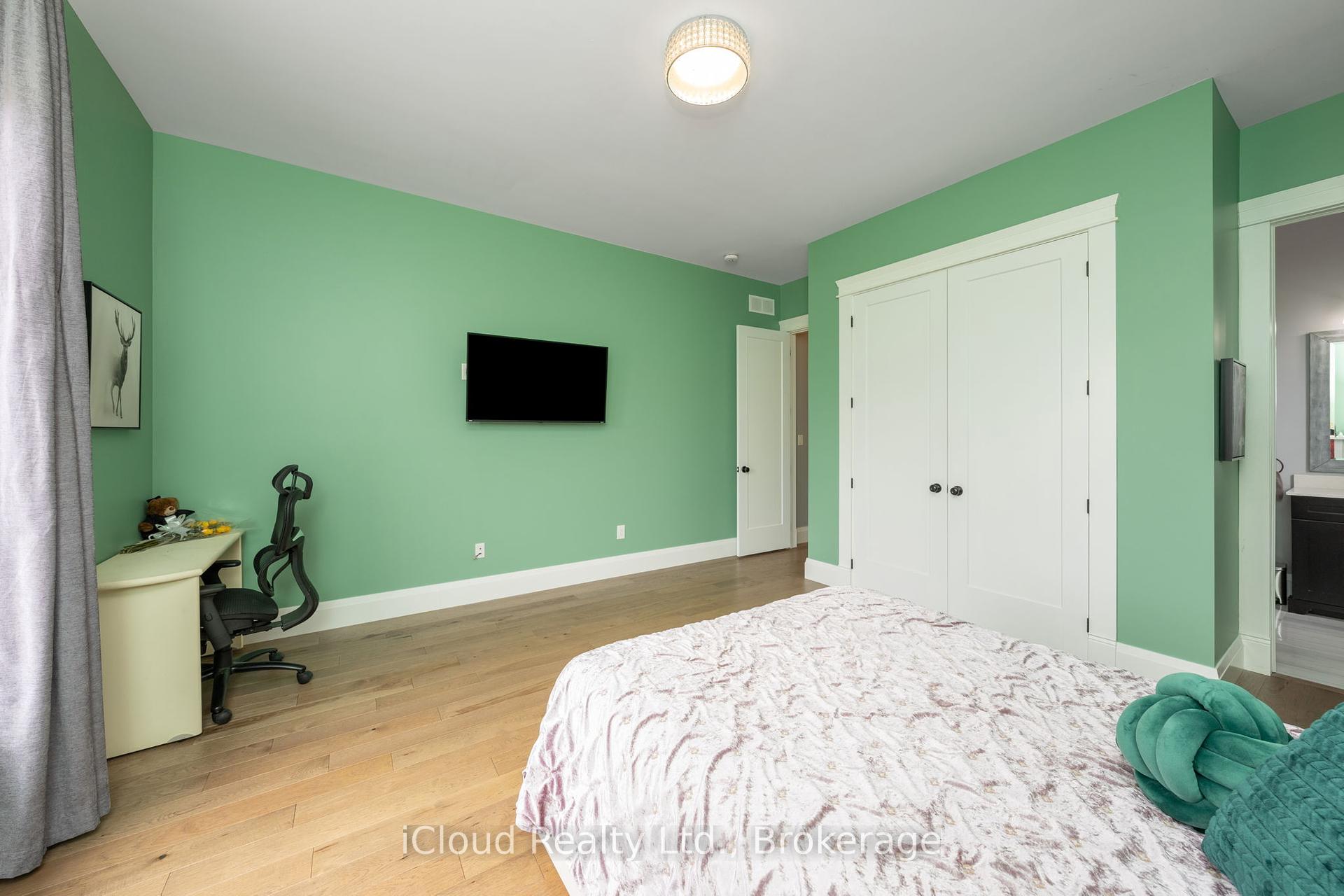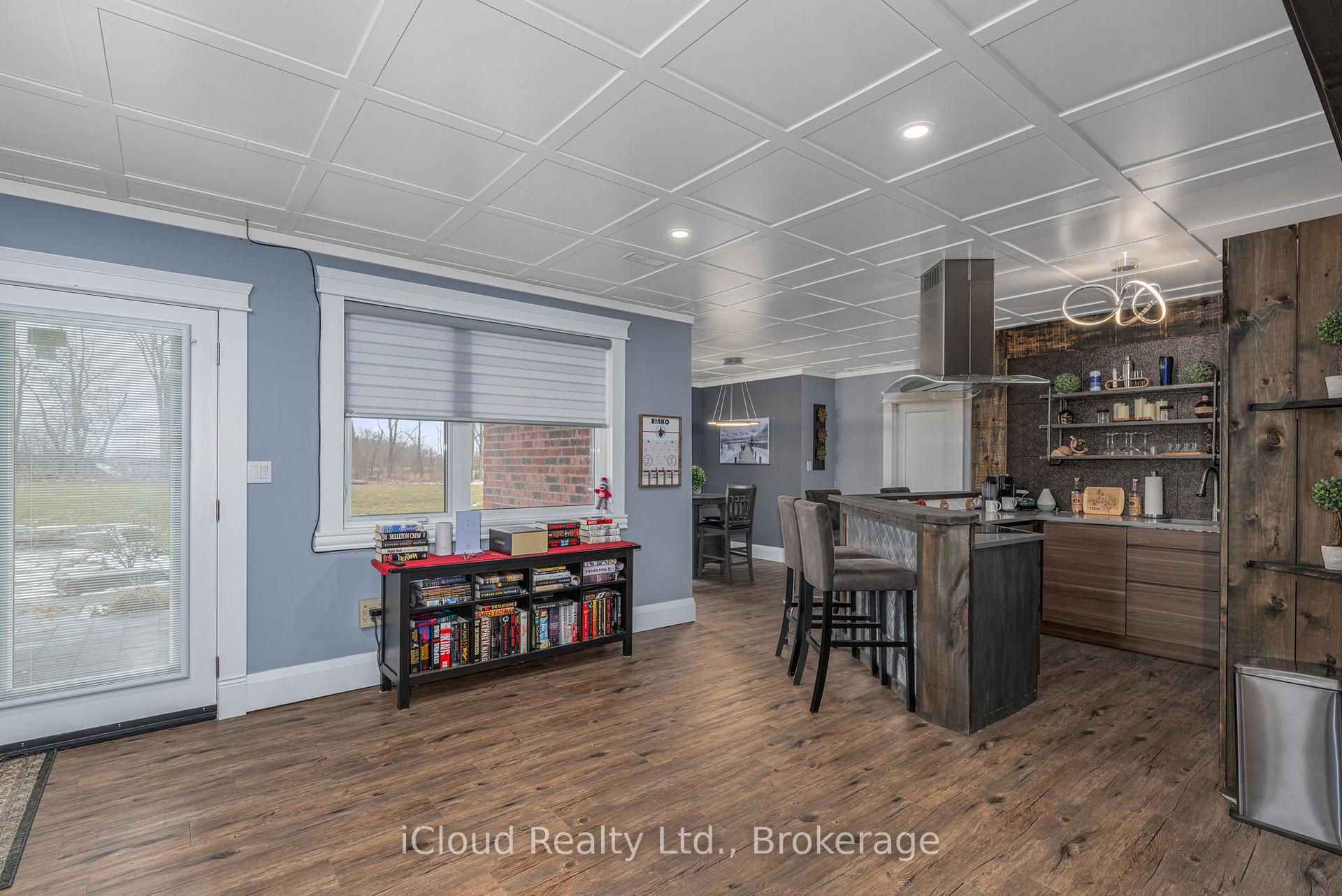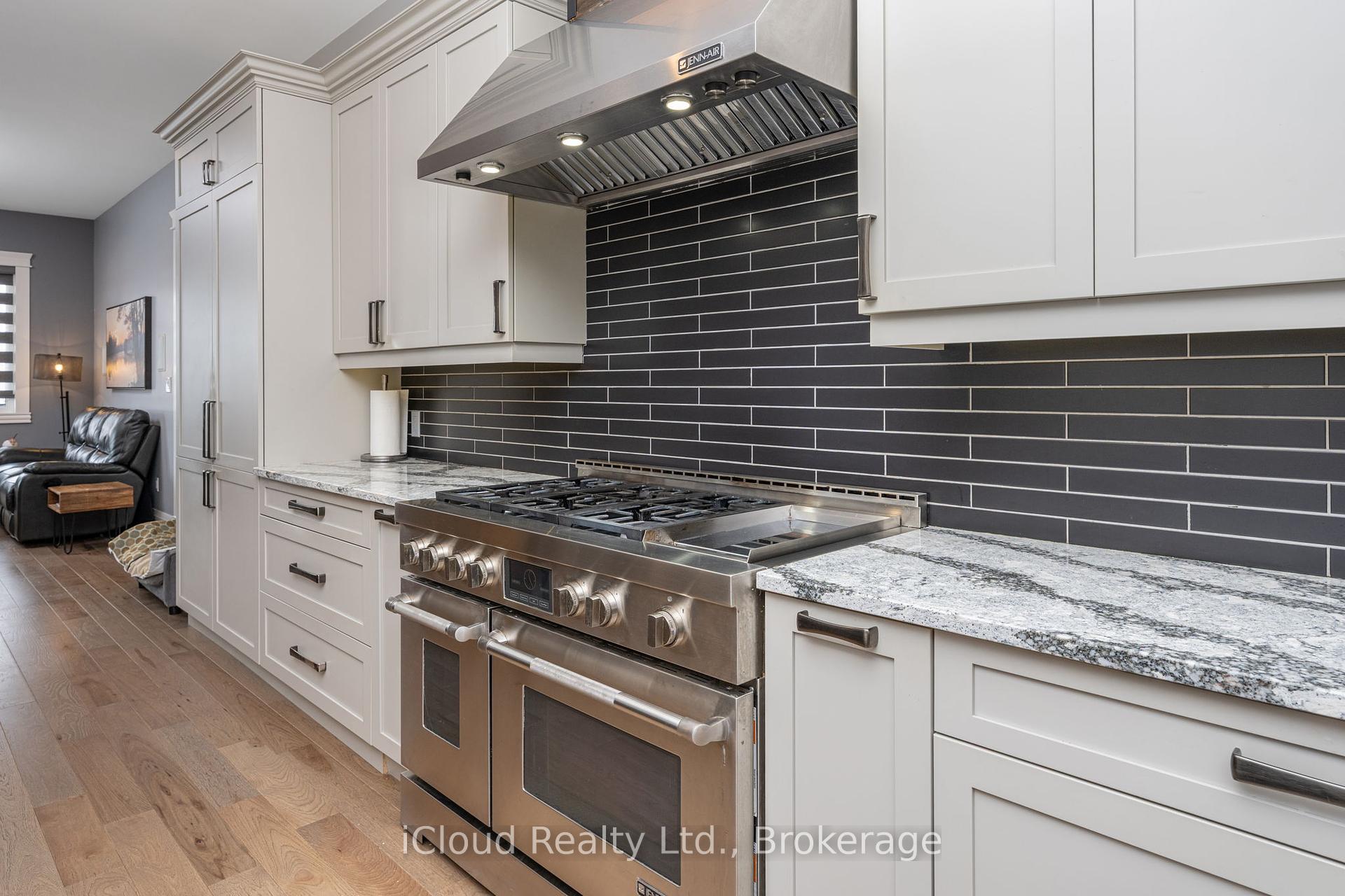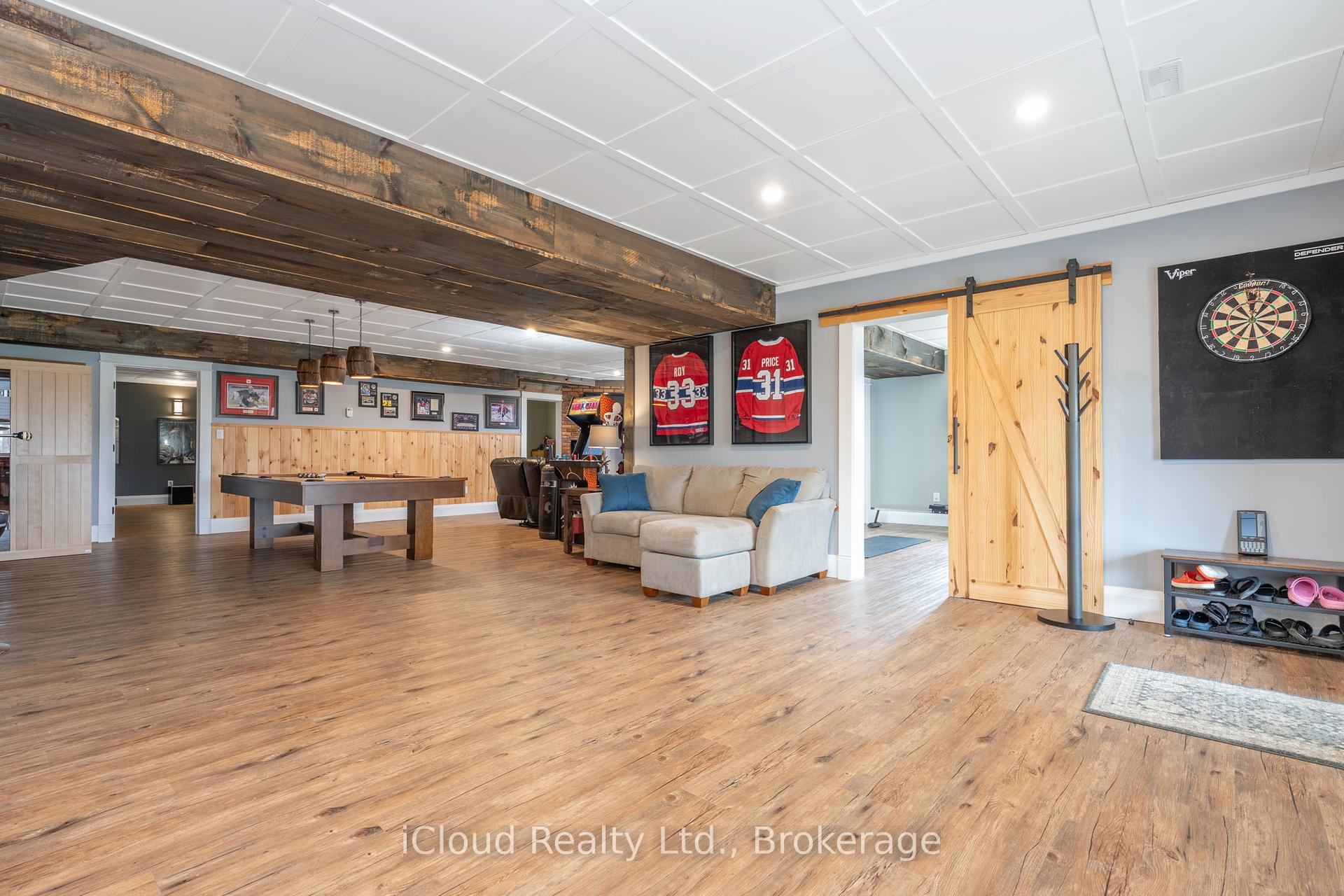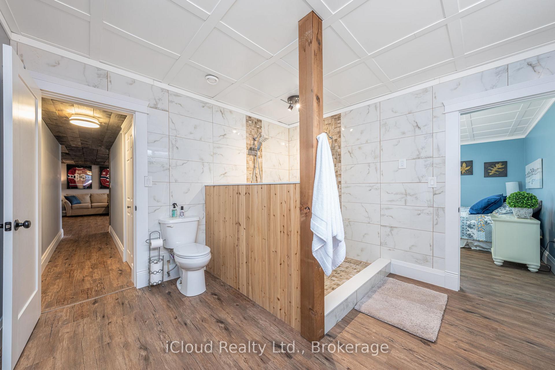 This extraordinary 5-bedroom, 5-bathroom custom-built bungalow offers over 5,000 sq ft of beautifully finished living space on 9 peaceful, tree-lined acres in sought-after Erin. A perfect blend of luxury and functionality, the home features hardwood flooring throughout the main level and a chefs dream kitchen with a large quartz island, top-of-the-line appliances, and a two-way fireplace connecting to the inviting living room. A walkout from the living room leads to a covered deck overlooking the stunning property ideal for entertaining or quiet evenings in nature. The primary suite is a true retreat, featuring a spa-inspired ensuite with a spacious 6×6 open-framed shower, freestanding tub warmed by a gas fireplace, and elegant finishes. Two additional main floor bedrooms each offer 4-piece ensuites and double closets, providing comfort and privacy for family or guests. The fully finished walk-out basement boasts a spacious layout with heated floors, a second kitchen, games area, cozy great room with gas fireplace, dedicated theatre room with Dolby Atmos 9.1 surround sound, one bedroom currently used as a home gym, and a second bedroom with a semi-ensuite featuring another 6×6 open-framed shower. Step outside to a private patio with gazebo, hot tub and built-in fire nook perfect for relaxation. Additional highlights include a heated garage with epoxy flooring, whole-home 22kW automatic generator, reverse osmosis water treatment system, and scenic pond separating two 4+ acre parcels each with its own driveway and natural gas hookup. Previously approved for a second building (with septic and well), this property offers luxury, flexibility, potential future development, and country charm in one unmatched package.