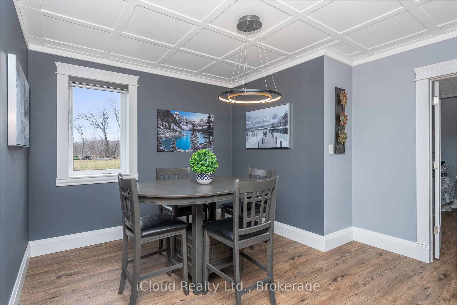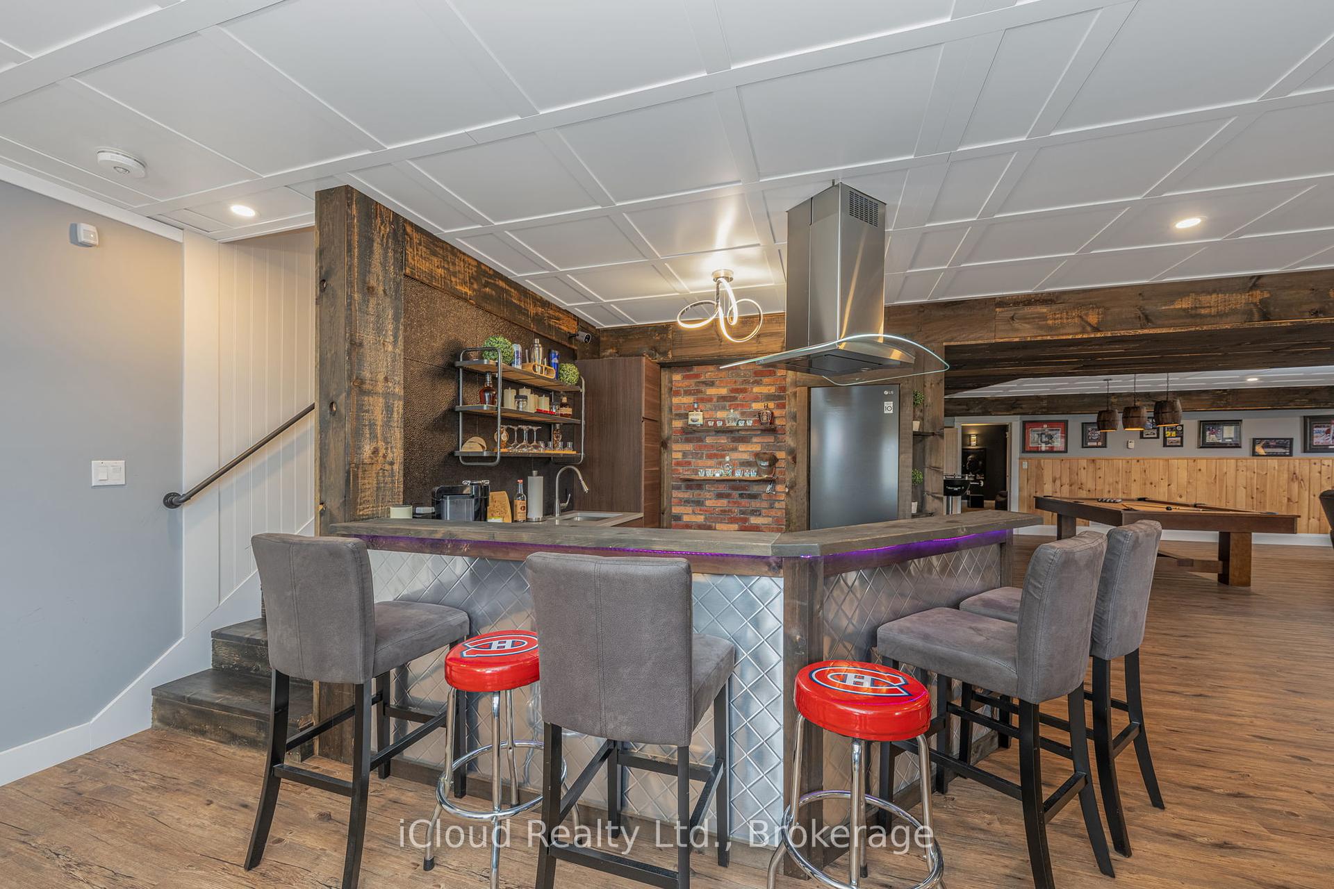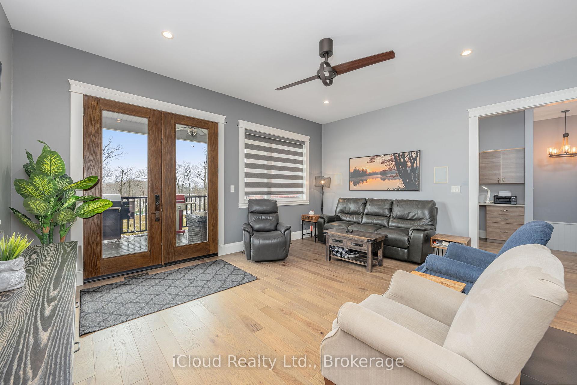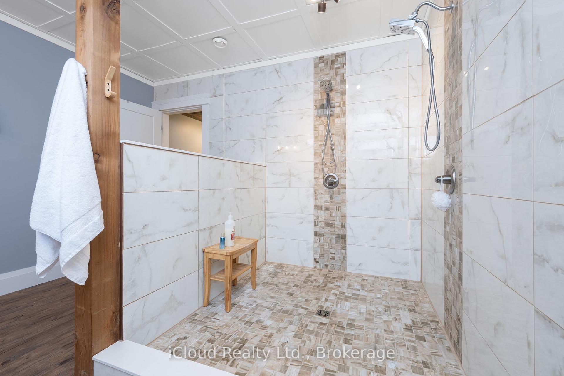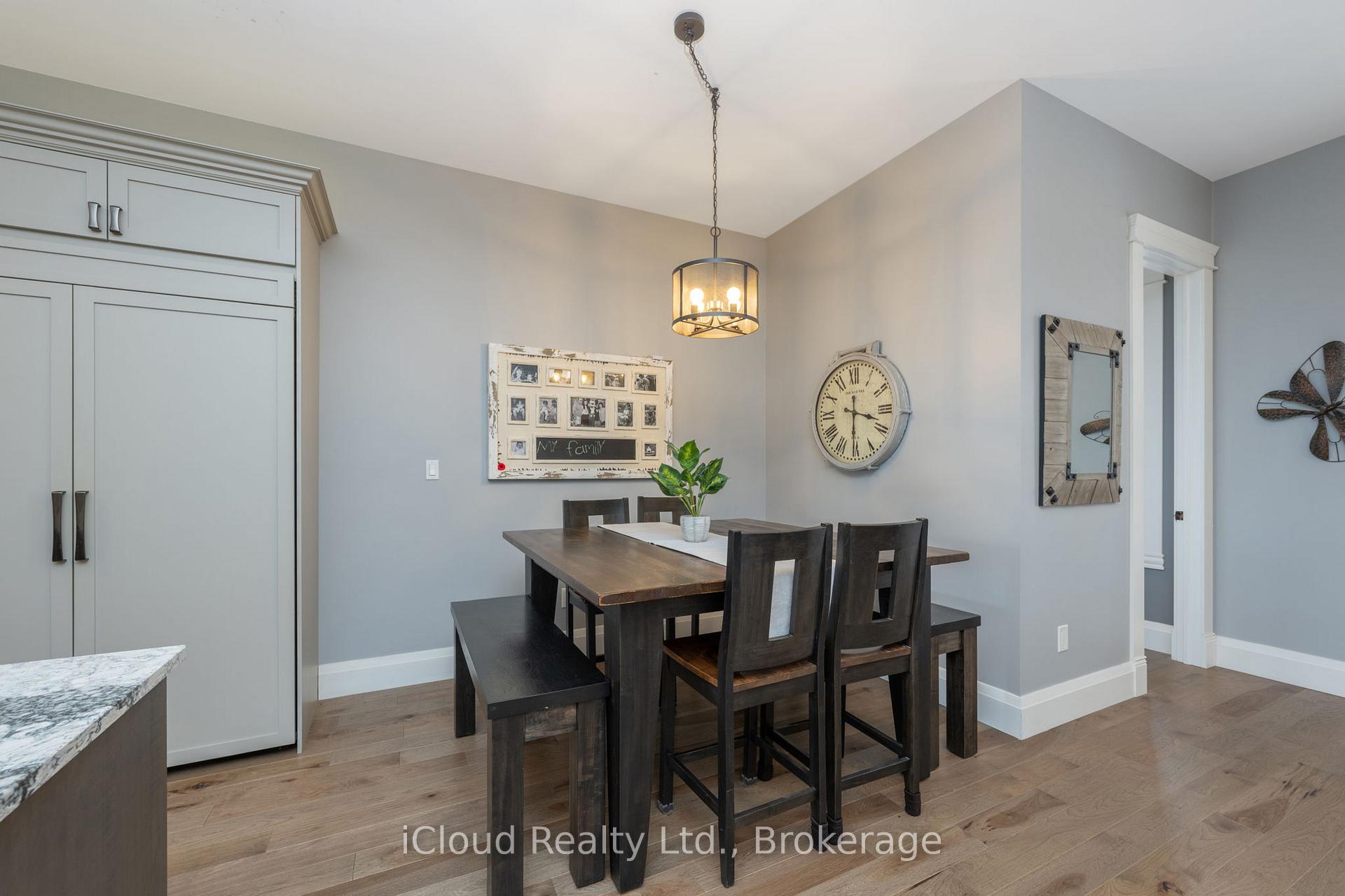This extraordinary 5-bedroom, 5-bathroom custom-built bungalow offers over 5,000 sq ft of beautifully finished living space on 9 peaceful, tree-lined acres in sought-after Erin. A perfect blend of luxury and functionality, the home features hardwood flooring throughout the main level and a chefs dream kitchen with a large quartz island, top-of-the-line appliances, and a two-way fireplace connecting to the inviting living room. A walkout from the living room leads to a covered deck overlooking the stunning property ideal for entertaining or quiet evenings in nature. The primary suite is a true retreat, featuring a spa-inspired ensuite with a spacious 6×6 open-framed shower, freestanding tub warmed by a gas fireplace, and elegant finishes. Two additional main floor bedrooms each offer 4-piece ensuites and double closets, providing comfort and privacy for family or guests. The fully finished walk-out basement boasts a spacious layout with heated floors, a second kitchen, games area, cozy great room with gas fireplace, dedicated theatre room with Dolby Atmos 9.1 surround sound, one bedroom currently used as a home gym, and a second bedroom with a semi-ensuite featuring another 6×6 open-framed shower. Step outside to a private patio with gazebo, hot tub and built-in fire nook perfect for relaxation. Additional highlights include a heated garage with epoxy flooring, whole-home 22kW automatic generator, reverse osmosis water treatment system, and scenic pond separating two 4+ acre parcels each with its own driveway and natural gas hookup. Previously approved for a second building (with septic and well), this property offers luxury, flexibility, potential future development, and country charm in one unmatched package.