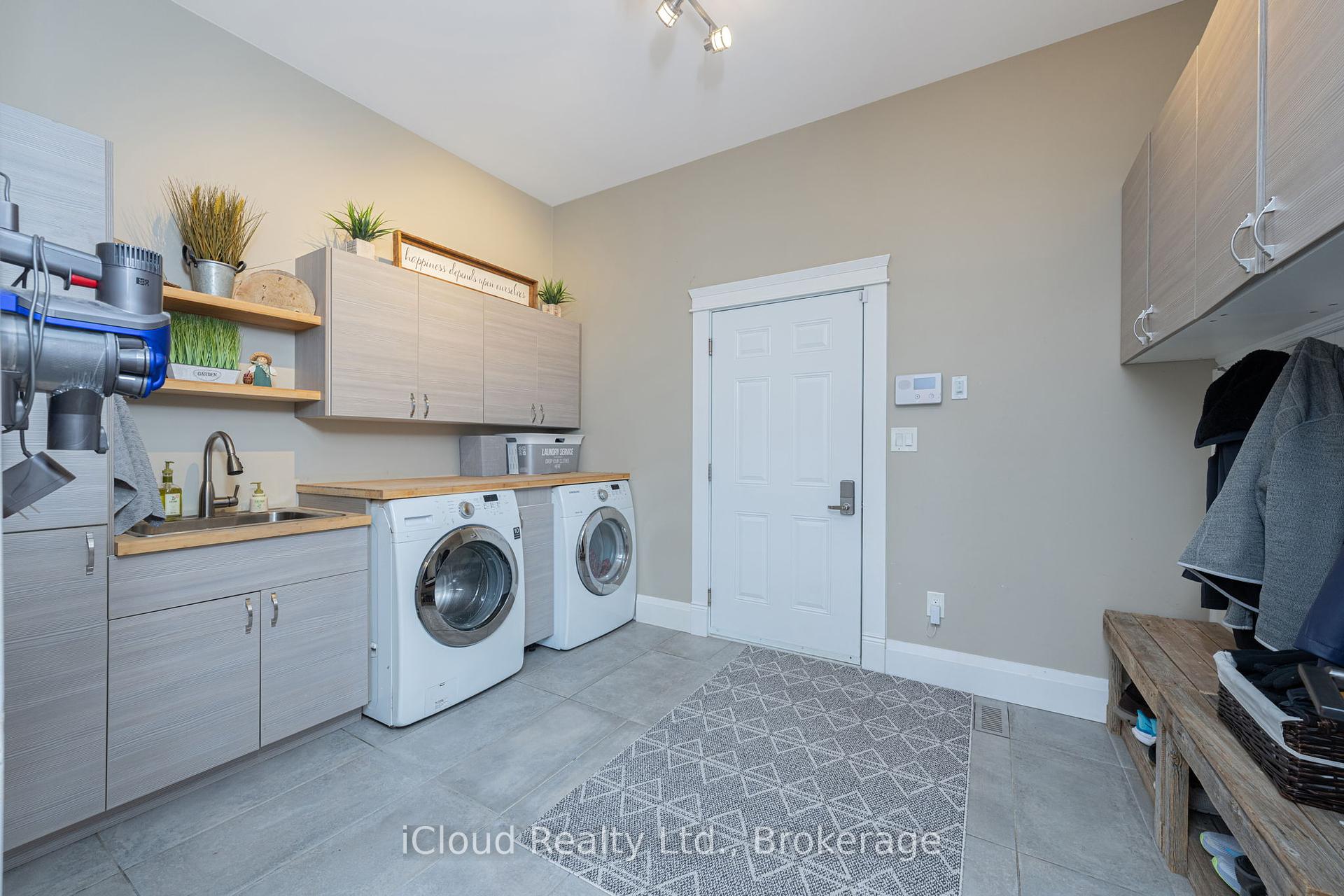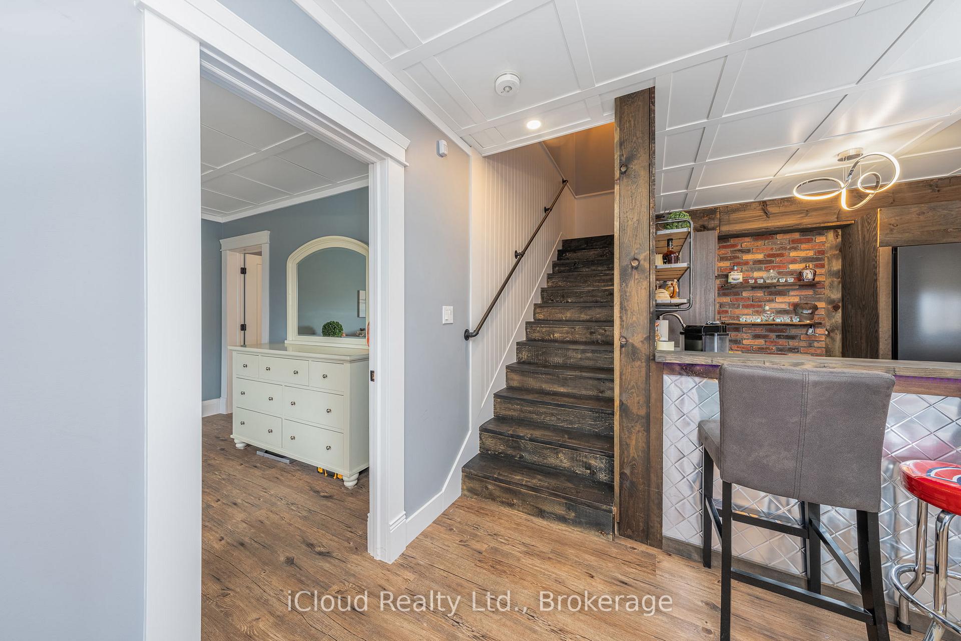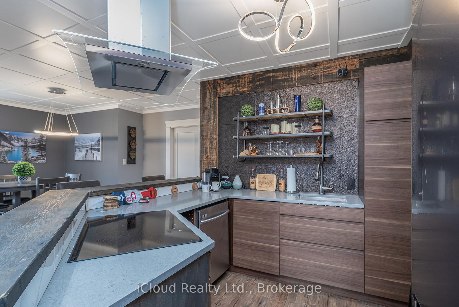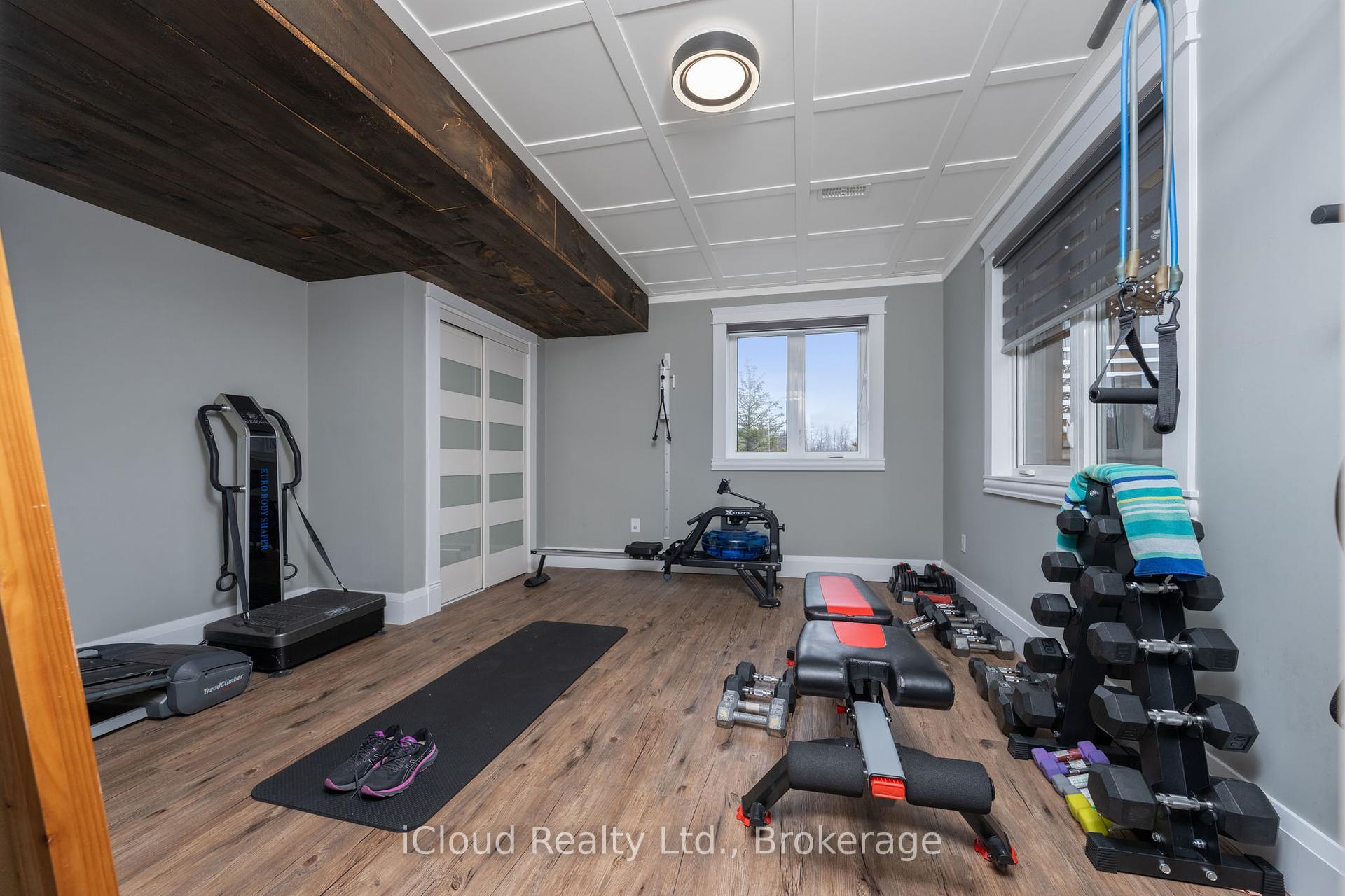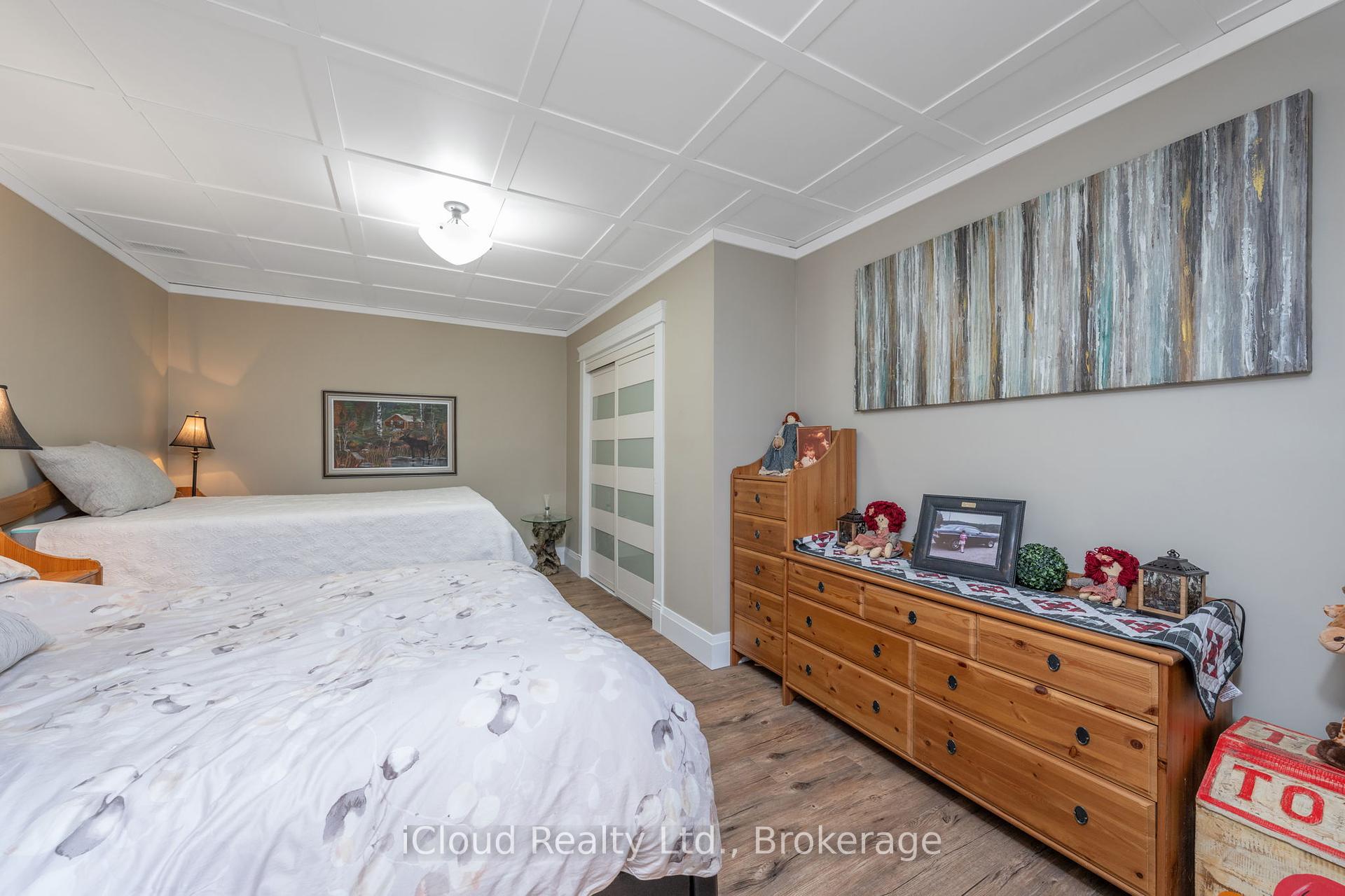 This extraordinary 5-bedroom, 5-bathroom custom-built bungalow offers over 5,000 sq ft of beautifully finished living space on 9 peaceful, tree-lined acres in sought-after Erin. A perfect blend of luxury and functionality, the home features hardwood flooring throughout the main level and a chefs dream kitchen with a large quartz island, top-of-the-line appliances, and a two-way fireplace connecting to the inviting living room. A walkout from the living room leads to a covered deck overlooking the stunning property ideal for entertaining or quiet evenings in nature. The primary suite is a true retreat, featuring a spa-inspired ensuite with a spacious 6×6 open-framed shower, freestanding tub warmed by a gas fireplace, and elegant finishes. Two additional main floor bedrooms each offer 4-piece ensuites and double closets, providing comfort and privacy for family or guests. The fully finished walk-out basement boasts a spacious layout with heated floors, a second kitchen, games area, cozy great room with gas fireplace, dedicated theatre room with Dolby Atmos 9.1 surround sound, one bedroom currently used as a home gym, and a second bedroom with a semi-ensuite featuring another 6×6 open-framed shower. Step outside to a private patio with gazebo, hot tub and built-in fire nook perfect for relaxation. Additional highlights include a heated garage with epoxy flooring, whole-home 22kW automatic generator, reverse osmosis water treatment system, and scenic pond separating two 4+ acre parcels each with its own driveway and natural gas hookup. Previously approved for a second building (with septic and well), this property offers luxury, flexibility, potential future development, and country charm in one unmatched package.