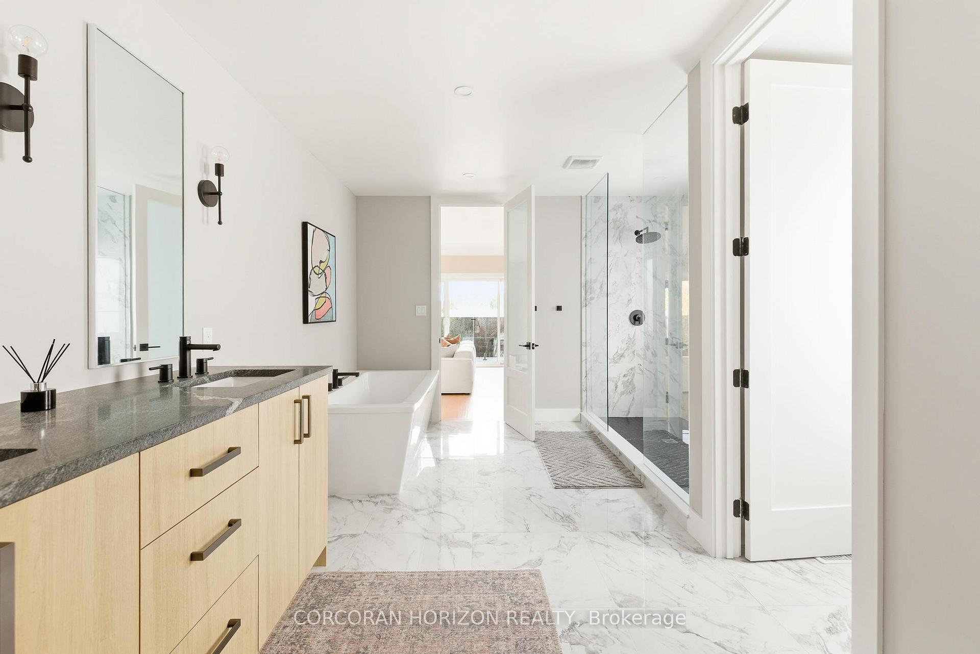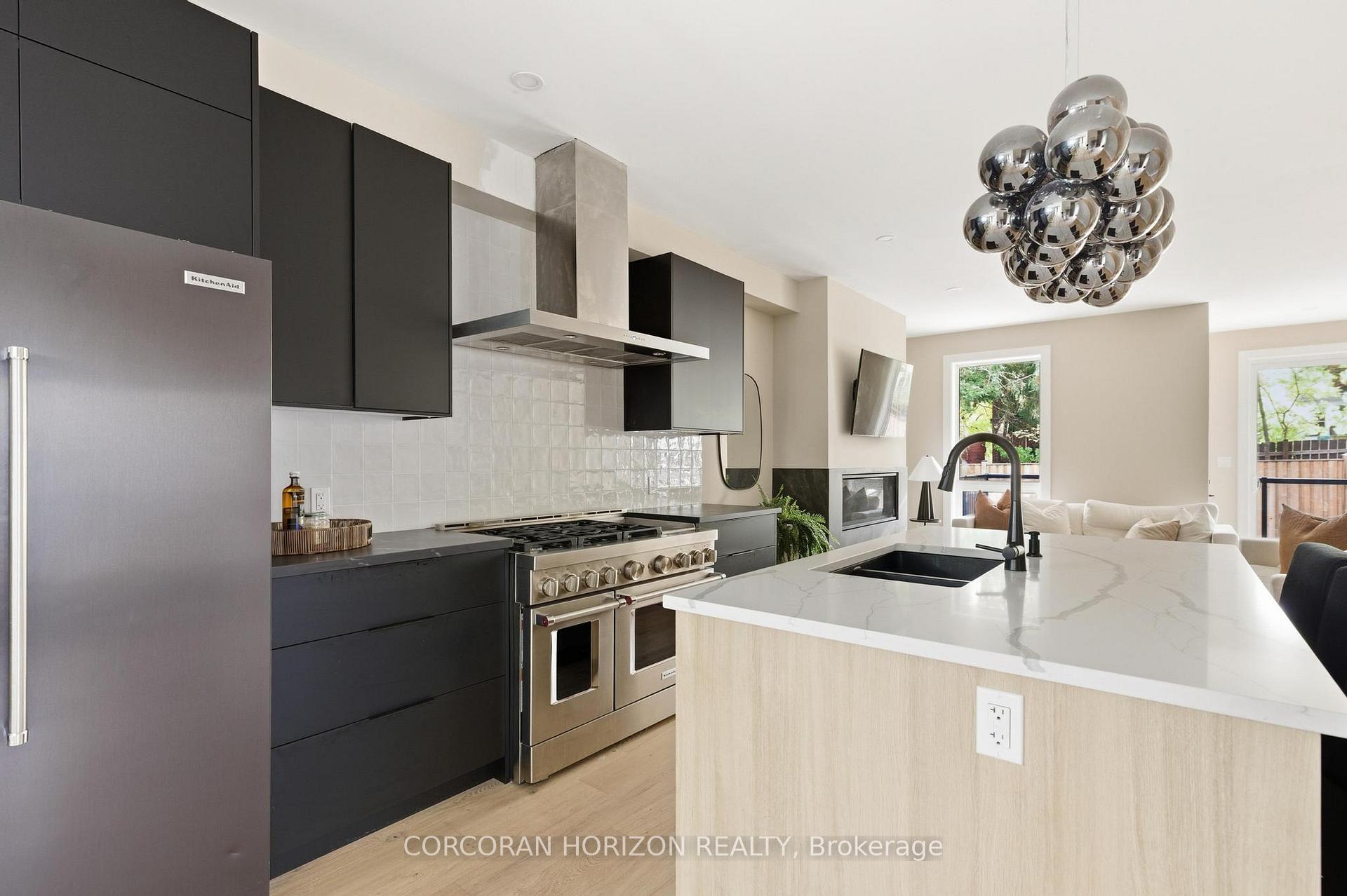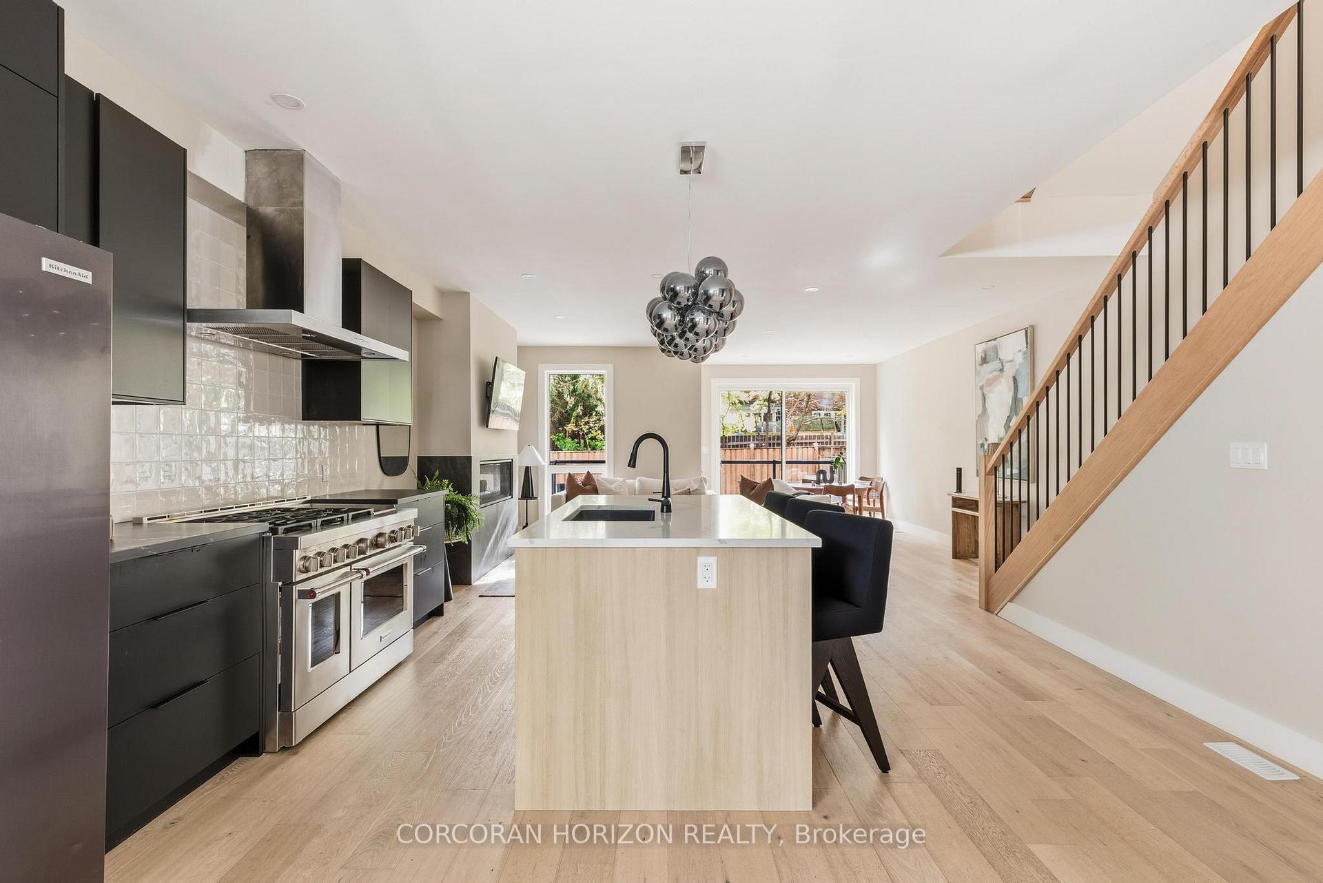 Welcome to 95 Williams Street, Waterloo! Built in 2022, this modern and spacious home offers over 4,500 sq. ft. of thoughtfully designed living space with 5 bedrooms and 5 bathrooms. Perfectly situated in the vibrant heart of Uptown Waterloo, you’ll enjoy easy access to top-rated schools, parks, trails, restaurants, shops, and public transit. Step inside to an inviting open-concept main floor with 9′ ceilings, pot lights, and large windows that fill the space with natural light. The chef-inspired kitchen features quartz countertops, modern cabinetry, stainless steel appliances, and a generous island-perfect for cooking and entertaining. The bright living room with a gas fireplace flows seamlessly into the dining area, which opens onto a deck ideal for outdoor gatherings or quiet relaxation. The second floor offers three spacious bedrooms, including two connected by a stylish Jack-and-Jill bathroom. This level also features a bright home office with balcony access, a convenient 2-piece powder room, and a dedicated laundry room. The third floor offers a private primary retreat complete with a large walk-in closet, a stunning 5-piece ensuite with double sinks, marble flooring, glass-enclosed shower, and a soaker tub-plus an additional great room for lounging or work-from-home flexibility. The finished basement adds versatility with a fifth bedroom, a 4-piece bathroom, and a generous rec room, perfect for guests, in-laws, or a home gym. Outside, enjoy a fully fenced backyard with open green space and a spacious deck for family barbecues or evenings under the stars. Built with quality and attention to detail, this home includes 16″ engineered floor joists, 6″ European white oak hardwood flooring, two-zone heating and cooling, a durable steel roof, and an extra-high garage ready for a car lift.Experience the best of modern design, everyday comfort, and Uptown living at 95 Williams Street.