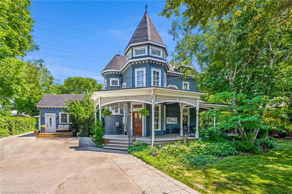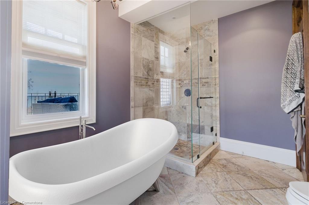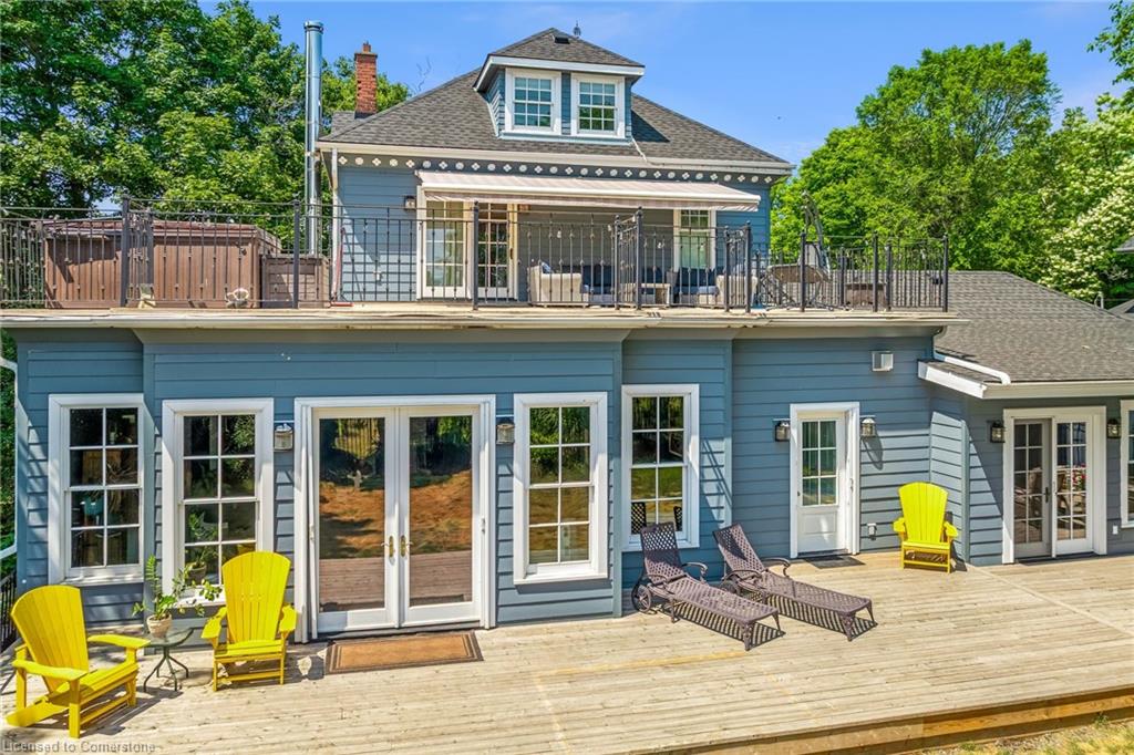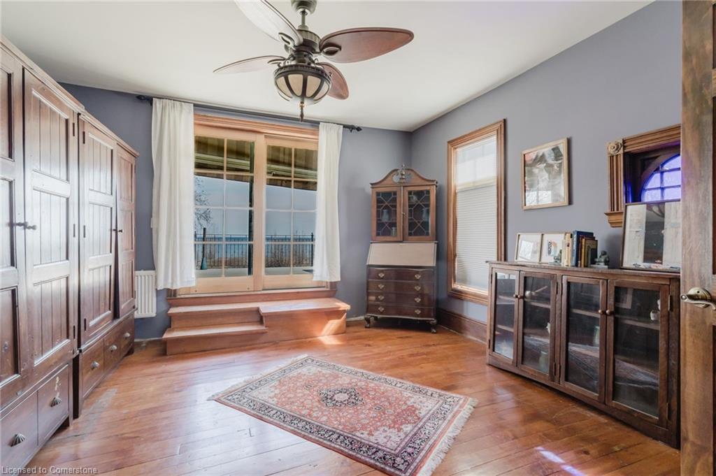 Welcome to an extraordinary waterfront property on prestigious Beach Boulevard in Hamilton! With 104 feet of frontage, this designated historic gem offers breathtaking, unobstructed lake views—a rare find in this coveted location. The main residence seamlessly blends historic charm with modern upgrades, featuring 4 bedrooms, 2.5 bathrooms, and a spacious layout. Multiple living areas—including a living room, family room, and dining room—create a warm and inviting atmosphere. At the heart of the home is a beautiful wood-burning masonry heater that makes an excellent alternate heat source and includes a pizza oven. A major addition in 2008 expanded the space while maintaining its timeless character. Step outside to incredible outdoor living spaces—a wrap-around porch along the front of the house, a deck spanning the entire rear, and a massive second-floor balcony with a hot tub, all designed to take full advantage of the stunning lake views. The property also includes a separate in-law suite with 1 bedroom, 1 bathroom, kitchen, vaulted ceilings, and a cozy gas fireplace, offering an ideal space for guests, family or rental potential. Plenty of parking as well as a detached 2 car garage. This is truly a rare chance to own a piece of history in a prime lakeside setting.