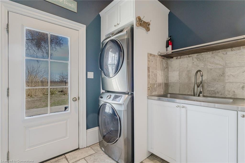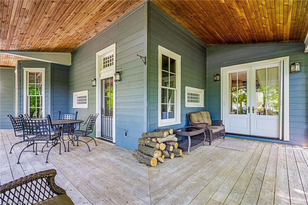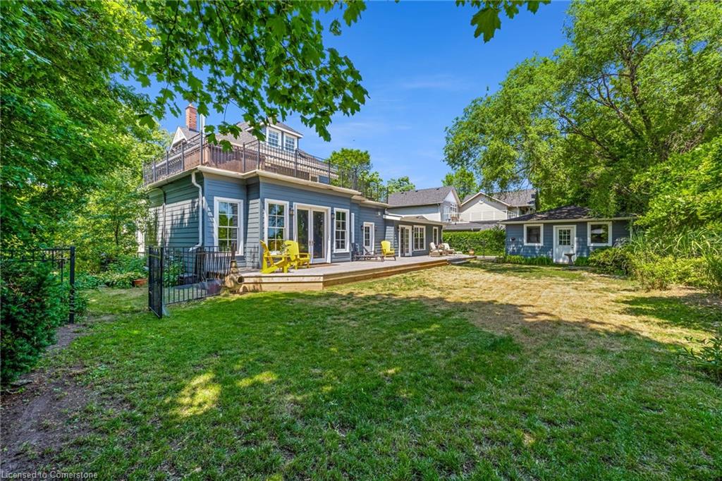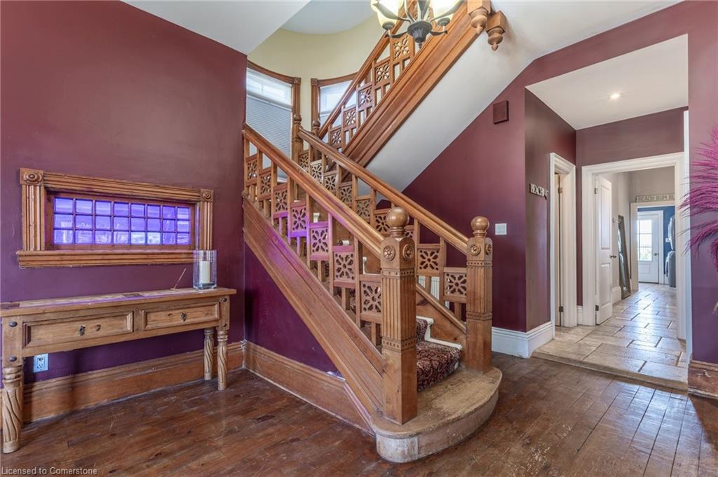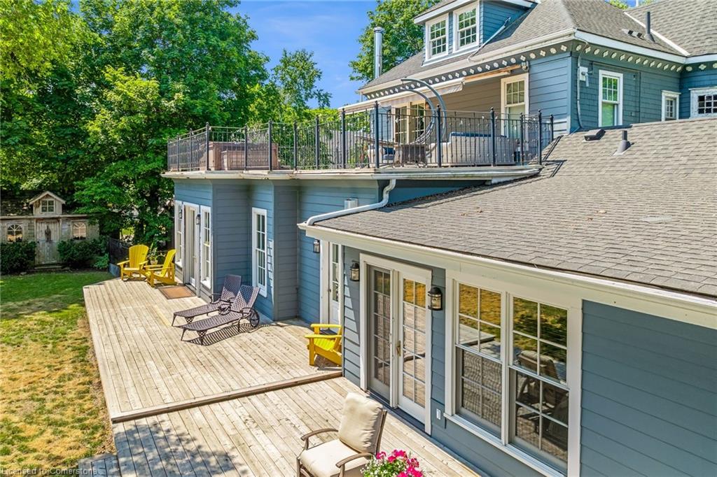 Welcome to an extraordinary waterfront property on prestigious Beach Boulevard in Hamilton! With 104 feet of frontage, this designated historic gem offers breathtaking, unobstructed lake views—a rare find in this coveted location. The main residence seamlessly blends historic charm with modern upgrades, featuring 4 bedrooms, 2.5 bathrooms, and a spacious layout. Multiple living areas—including a living room, family room, and dining room—create a warm and inviting atmosphere. At the heart of the home is a beautiful wood-burning masonry heater that makes an excellent alternate heat source and includes a pizza oven. A major addition in 2008 expanded the space while maintaining its timeless character. Step outside to incredible outdoor living spaces—a wrap-around porch along the front of the house, a deck spanning the entire rear, and a massive second-floor balcony with a hot tub, all designed to take full advantage of the stunning lake views. The property also includes a separate in-law suite with 1 bedroom, 1 bathroom, kitchen, vaulted ceilings, and a cozy gas fireplace, offering an ideal space for guests, family or rental potential. Plenty of parking as well as a detached 2 car garage. This is truly a rare chance to own a piece of history in a prime lakeside setting.
