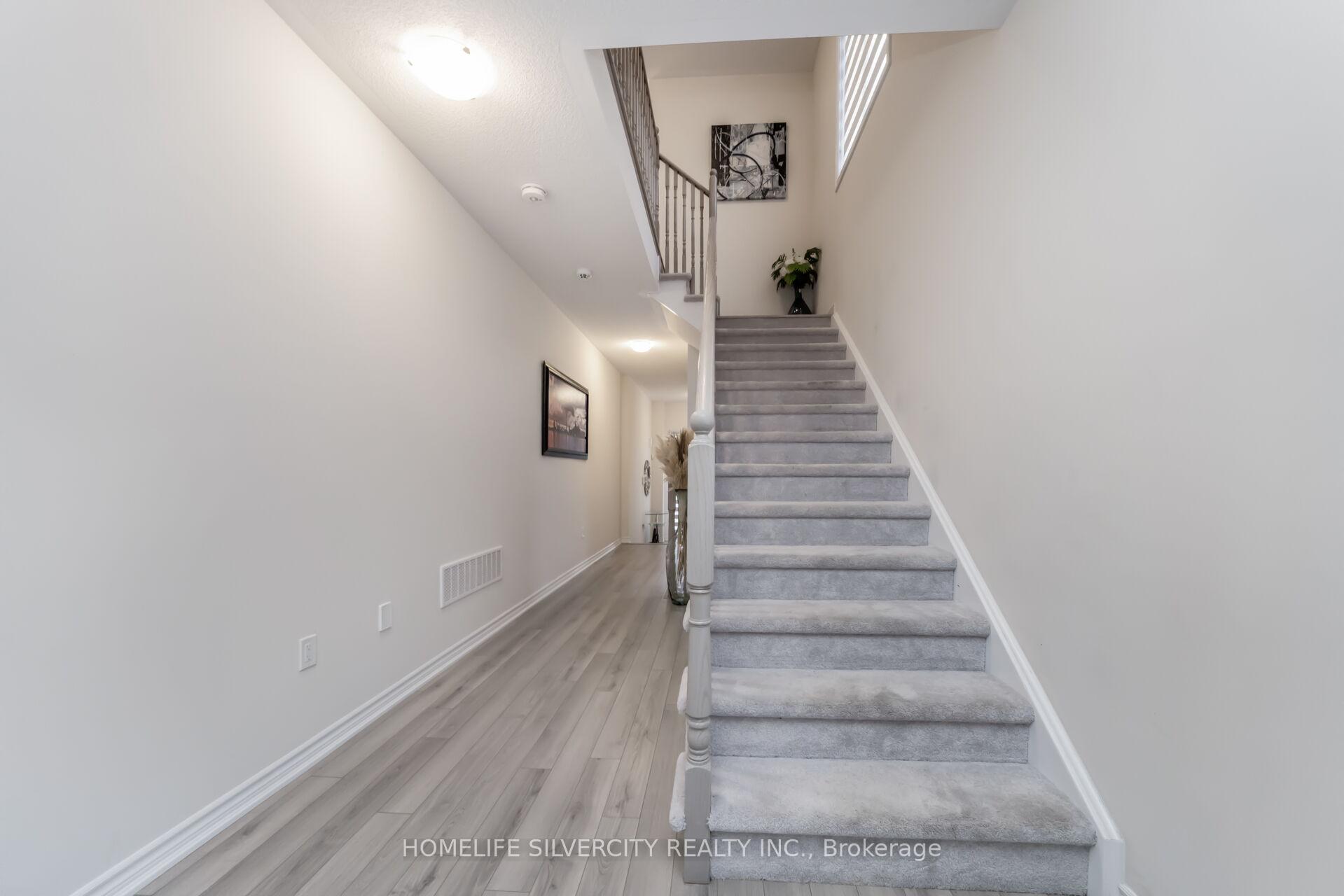 Like A Detached End Unit Modern Town Home w/4 Bedrooms for Sale!! 9-foot ceilings on Main Floor comes with Hardwood Floors!! Modern Kitchen featuring Stainless Steel Appliances, Quartz counter tops, and a large Island breakfast bar & extra pantry space with organized shelves for convenient storage!! Enjoy the cozy ambiance of a gas fireplace on the main floor, adding warmth and charm to the open-concept living area – perfect for relaxing evenings or entertaining guests!! Master with Ensuite Bath & Walk-in Closet!! All other 3 Rooms are good size!!No more hauling laundry up and down – the second-floor laundry room adds comfort and convenience to your everyday routine!! Legal separate entrance to the basement provides ease and flexibility for future rental potential!! Spacious basement featuring huge windows that provide excellent daylight and ventilation!! No walkway at front ensures low maintenance and easy snow removal. Enjoy a private, separate individual driveway offering ample parking space and convenience!! Must See