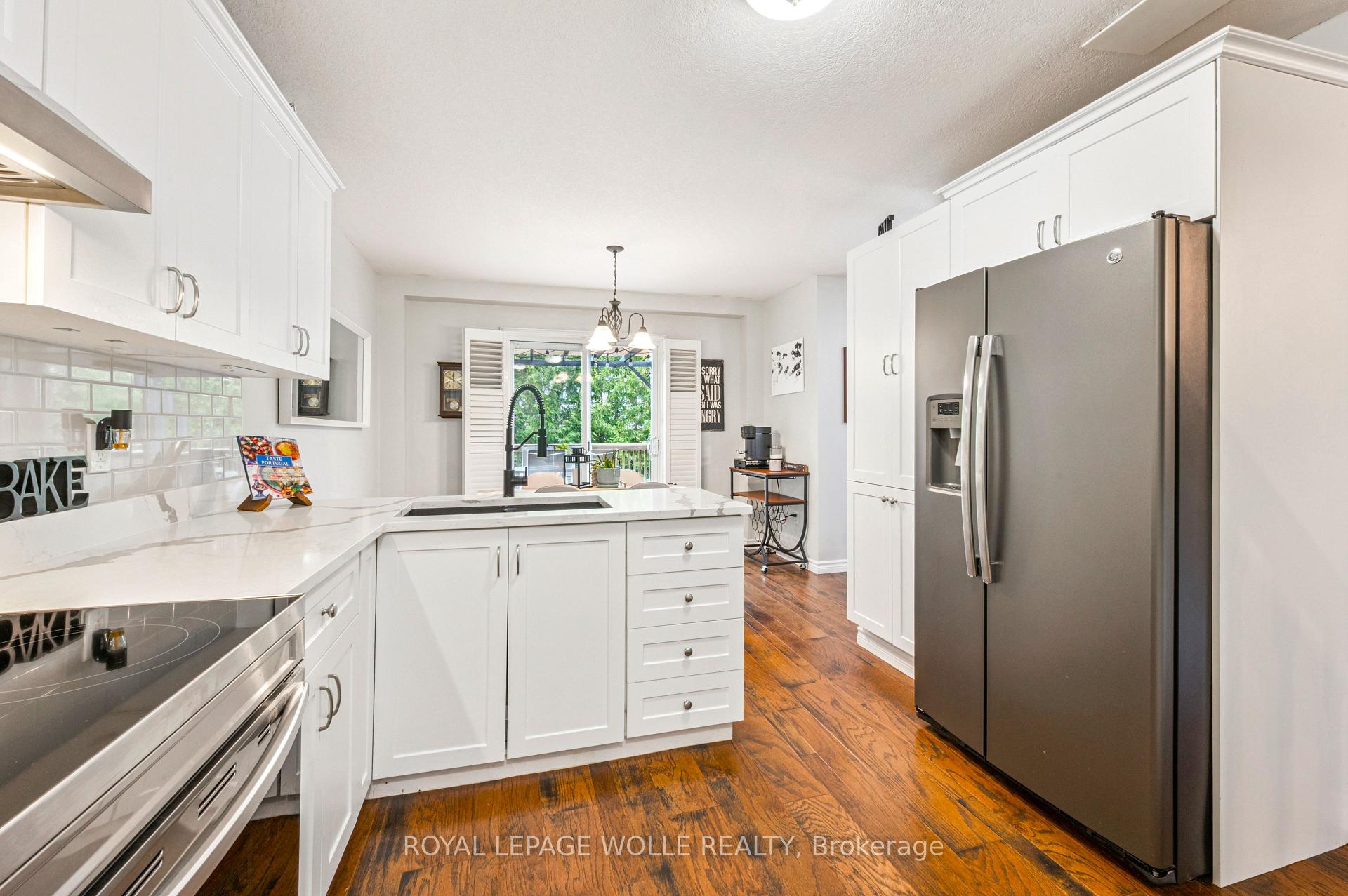 Welcome to 96 Kent Street, nestled in the highly desirable Salisbury/Southgate neighborhood of West Galt. This beautifully updated and well maintained two-storey home offers the perfect blend of modern style, comfort, and functionality for todays family. Step inside to a bright, inviting living room featuring HARDWOOD FLOORS and a large window. The completely modernized kitchen is sure to impress, showcasing QUARTZ COUNTERTOPS, a stylish backsplash, double sink, and plenty of storage with UPGRADED CABINETRY. Upstairs, youll find three spacious bedrooms and a four-piece family bathroom. The FINISHED BASEMENT extends the living space with NEW FLOORING and a versatile bonus room, perfect for a home office, guest suite, or playroom. Outdoor living shines in the private backyard, complete with a two-tier deck, NEW CONCRETE PATIO and side walkway, plus a gazebomaking it the ultimate spot for summer entertaining. The double car garage with NEW DOORS, OPENERS, and convenient rear access to the yard adds both functionality and value. Some additional updates include a NEW FURNACE & HEAT PUMP IN 2023, ADDED INSULATION, & NEW ROOF SHINGLES IN 2016. Located within walking distance of parks and schools, this home also enjoys easy access to Cedar Street amenities, the Westgate Centre, and is under 10 minutes from Cambridges historic downtown where shopping, dining, arts, and transit are all at your fingertips. Clean, bright, and move-in ready, 96 Kent Street is the perfect place to call home.