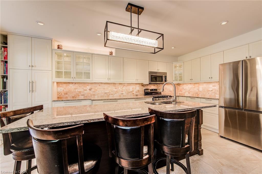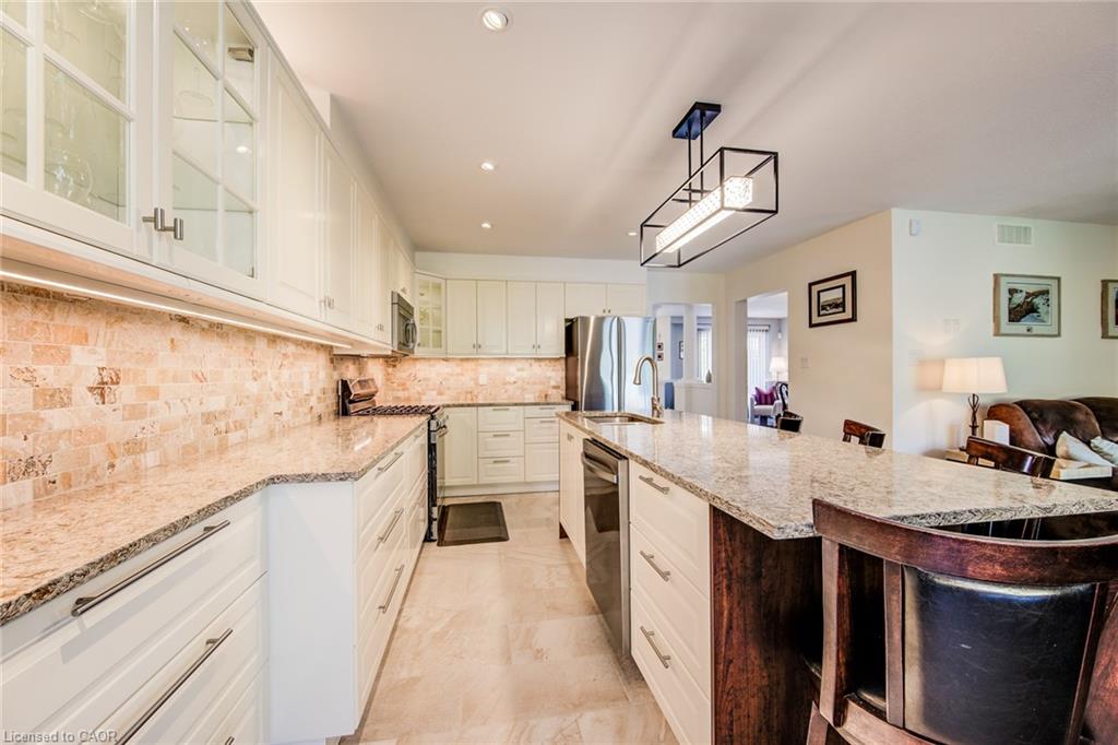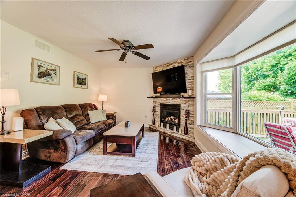 MAKE THIS ONE A KEEPER – JUST MINUTES TO THE 401! 96 Sofron Drive—tucked away on a quiet street in one of Hespeler’s most desirable family neighbourhoods. From the moment you arrive, you’re greeted by charming curb appeal, a double garage, and a welcoming front porch perfect for morning coffees. Step inside to over 2,800 sq ft of finished living space. The main floor features a sun-filled living and dining room ideal for hosting, while the cozy family room—with a gas fireplace and large bay window, offers the perfect place to unwind. The heart of the home is the updated kitchen, where quartz countertops, a stylish backsplash, and a center island create an inviting space for family meals. Sliding doors lead to a backyard retreat—complete with a spacious two-tier deck, gazebo, and a beautifully maintained fenced yard with a storage shed. Upstairs, you’ll find 3 generously sized bedrooms, including a serene primary suite with a walk-in closet and private 3pc ensuite. A bonus loft nook adds flexible space for a home office or study area. The fully finished basement expands your living space with a rec room, a 4th bedroom, another full bathroom, and plenty of storage. Notable upgrades include updated bathrooms, a new A/C and furnace (2024), garage door and driveway (2022), bay window (2018), and a newer roof (2010). Closet organizers, modern finishes, and thoughtful details throughout. Located just 4 minutes to the 401, and walking distance to great schools, trails, parks, the Hespeler arena, and splash pad—this is a home that truly checks all the boxes.