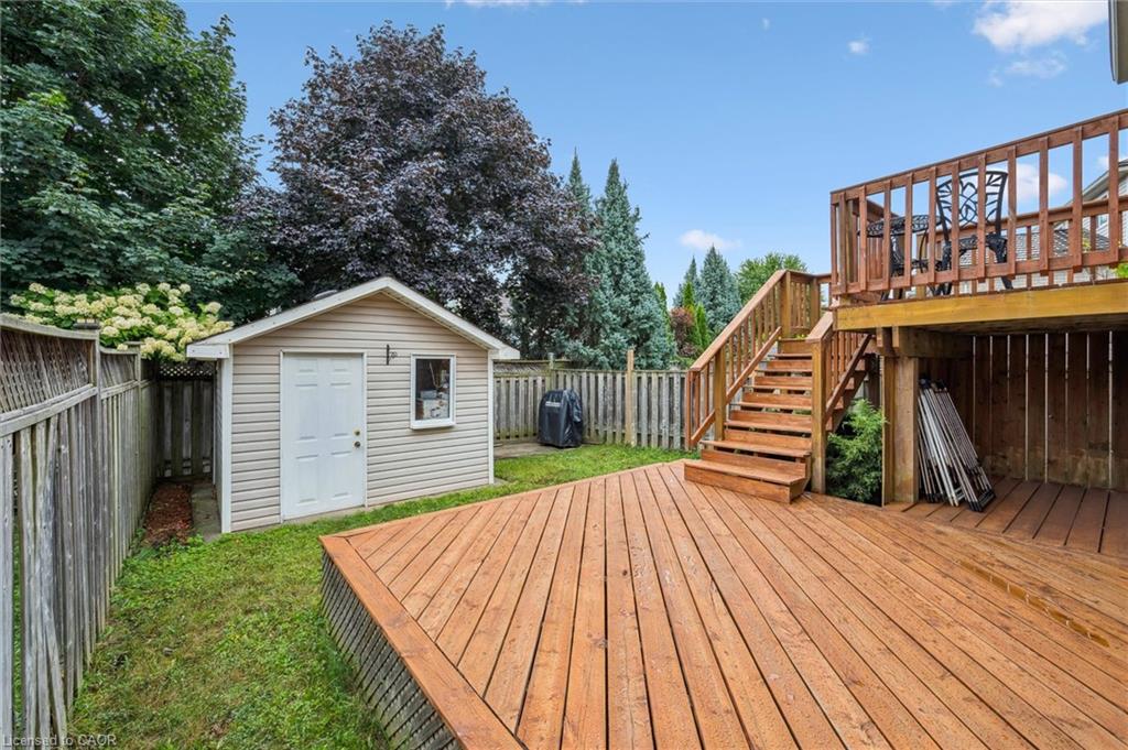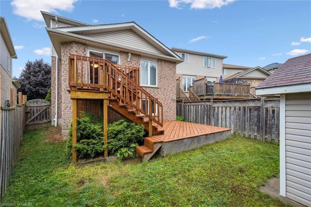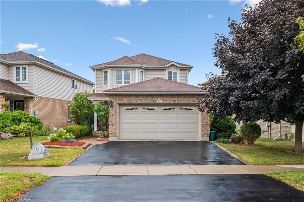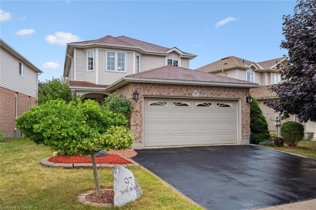 Welcome to 97 Marl Meadow Dr, Kitchener, located in the sought-after Brigadoon neighbourhood, this beautifully maintained home offers a perfect blend of family-friendly living and urban convenience with top-rated schools and easy highway access. Features include hardwood floors on the main level, a separate dining room, bright living room with gas fireplace, and an updated kitchen with quartz countertops and stainless steel appliances. Walk-out from the breakfast area to a fully fenced yard with a 2-tier deck and garden shed. Upstairs boasts 3 spacious bedrooms, 2 full baths, including a 5-pc ensuite and walk-in closet in the primary. The fully finished basement offers a rec room, additional bedroom, 3-pc bath, sitting area, and laundry. Updates: Kitchen (2024), Fridge/Range Hood (2024), Stove (2022), Carpet (2021), HWT (2021), Clothes washer & dryer (2020), Roof (2019), Furnace parts (2021/2024). Upgraded attic insulation and garage insulation, recently rebuilt decks, very nice landscaping, Double garage + 3-car driveway. Move-in ready, show with confidence!