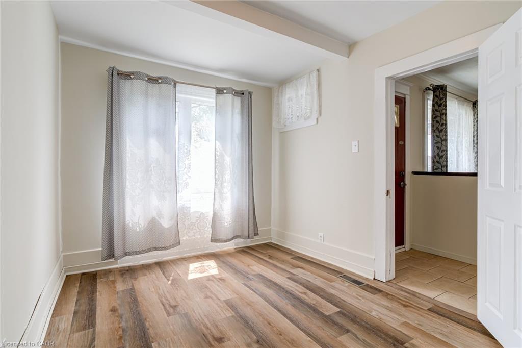 Spacious bungalow offering first-time buyers a fantastic opportunity to get into the market or convenient one-floor living for downsizers. Situated on a large 30 x 100 ft. property in the popular Crown Point neighbourhood only a short walk to schools, parks (Gage Park), as well as shopping, restaurant, and service amenities on Ottawa Street (two blocks) or at The Centre Mall. An open concept layout offers fresh paint, laminate flooring and plenty of natural light – a perfect space for entertaining. There are two bedrooms and a stylish updated 4-piece bathroom. The large eat-in kitchen has updated shaker style cabinetry, tiled flooring, and sliding patio doors out to a back deck overlooking the private fully fenced yard with mature trees and great space for relaxing and outdoor fun. A storage shed allows space for the lawn mower and all of the tools. There is a separate side entrance directly into the kitchen and also a separate back entrance down to the partially finished basement where there was previously a third bedroom and recreation space. Laundry is also located in the basement and there is plenty of storage space. A covered front porch is a wonderful area to enjoy a morning coffee or an evening breeze. The front of the property offers ample space to create a parking pad with plenty of on street parking available. This is an excellent opportunity to own a move-in ready home at an incredible value!