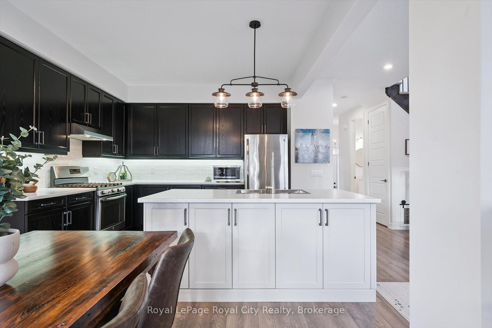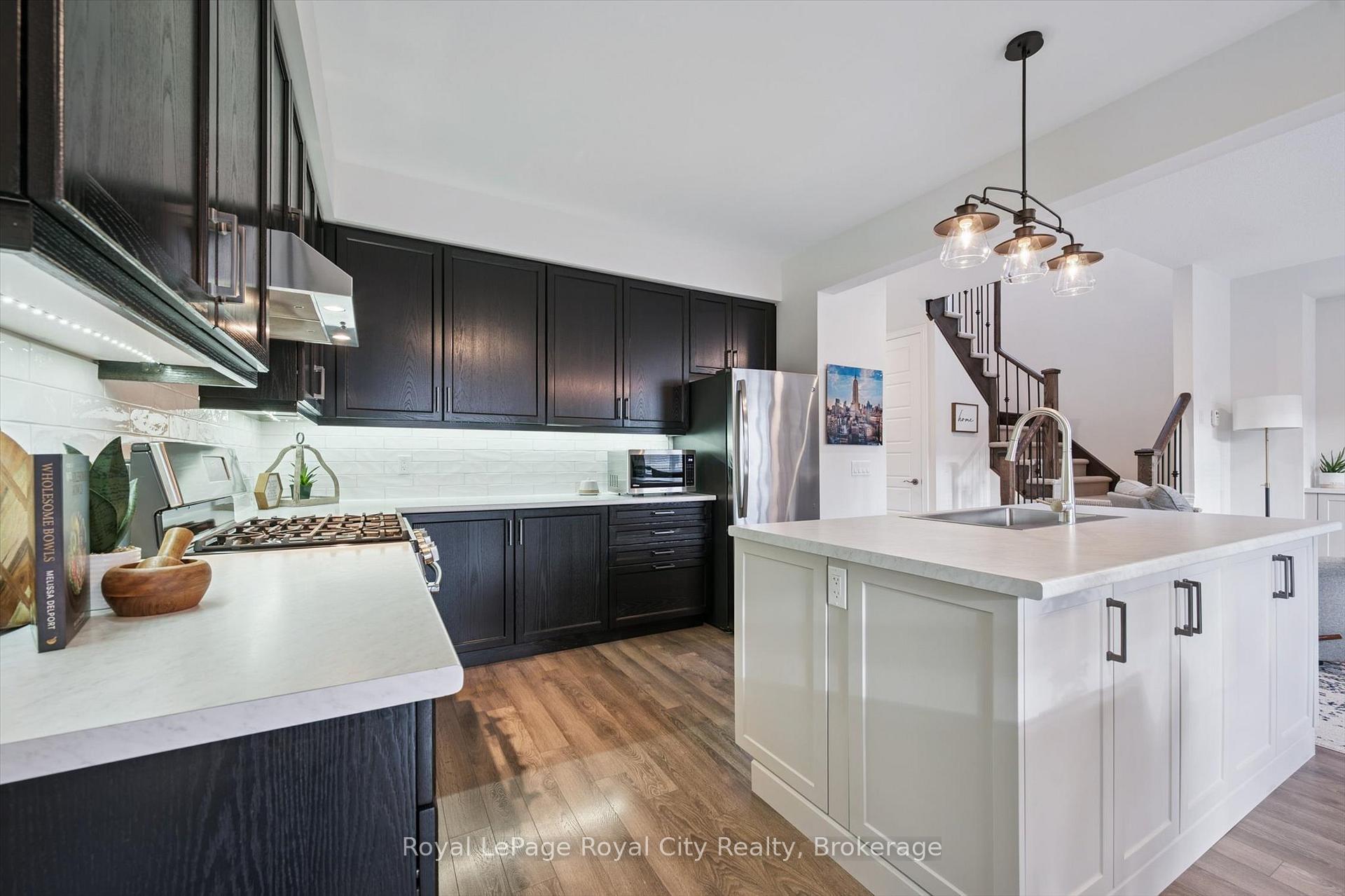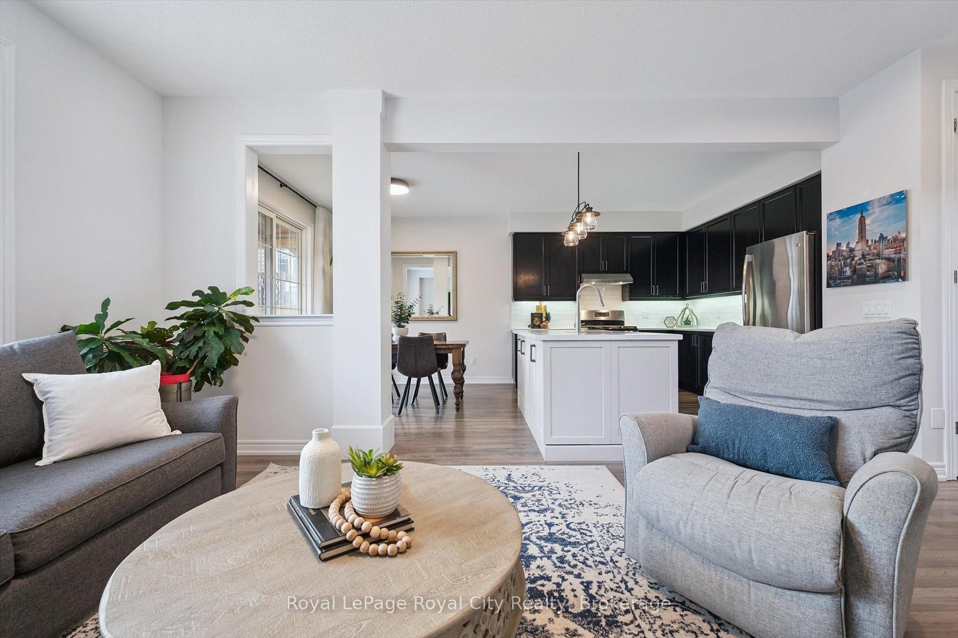 Nestled in the highly sought-after Summerfields community, this beautifully finished 3-bedroom, 3.5-bathroom detached home offers over 2,200 sq ft of thoughtfully designed living space – perfect for modern family life. Step inside to an inviting open-concept main floor featuring luxury vinyl plank flooring throughout. The living room includes custom built-ins, ideal for displaying keepsakes or keeping toys neatly tucked away. The stylish kitchen boasts a custom island, stainless steel appliances, and under-cabinet lighting that highlights a porcelain tile backsplash. The adjoining dining area opens onto a covered back deck and private backyard – perfect for summer BBQs and family get-togethers. Upstairs, the spacious primary suite offers two walk-in closets and a serene ensuite complete with a soaker tub. Two additional bedrooms share a bright 4-piece bathroom, ideal for kids or guests. The finished basement is a true family bonus – featuring a versatile home office or flex space, a cozy recreation room with an electric fireplace, a wet bar for entertaining (or morning coffee!), and a convenient full bathroom. Outside, the fully fenced yard provides privacy and room to play, with a large storage shed to keep everything organized. Located in a family-friendly neighbourhood close to parks, top-rated schools, and amenities, this home also offers easy commutes to Guelph, Kitchener-Waterloo, Orangeville, and the 401. 98 Kay Crescent isn’t just a house – it’s a place to grow, gather, and create lasting memories.