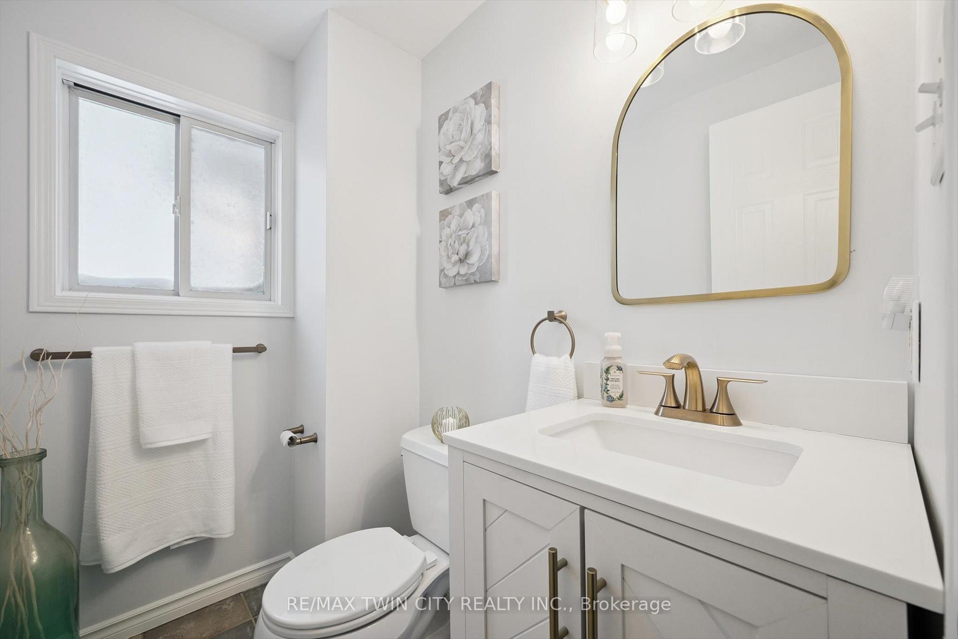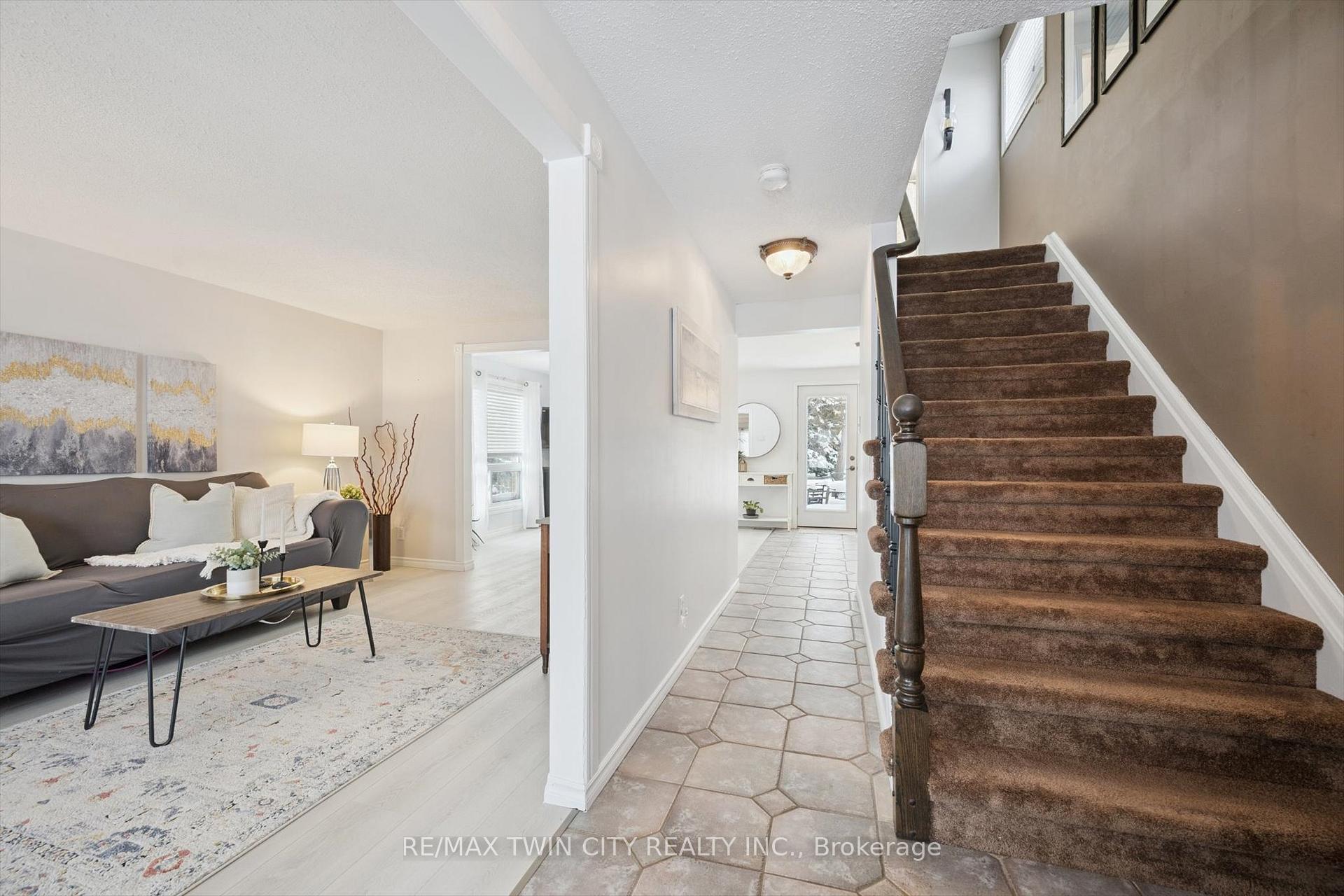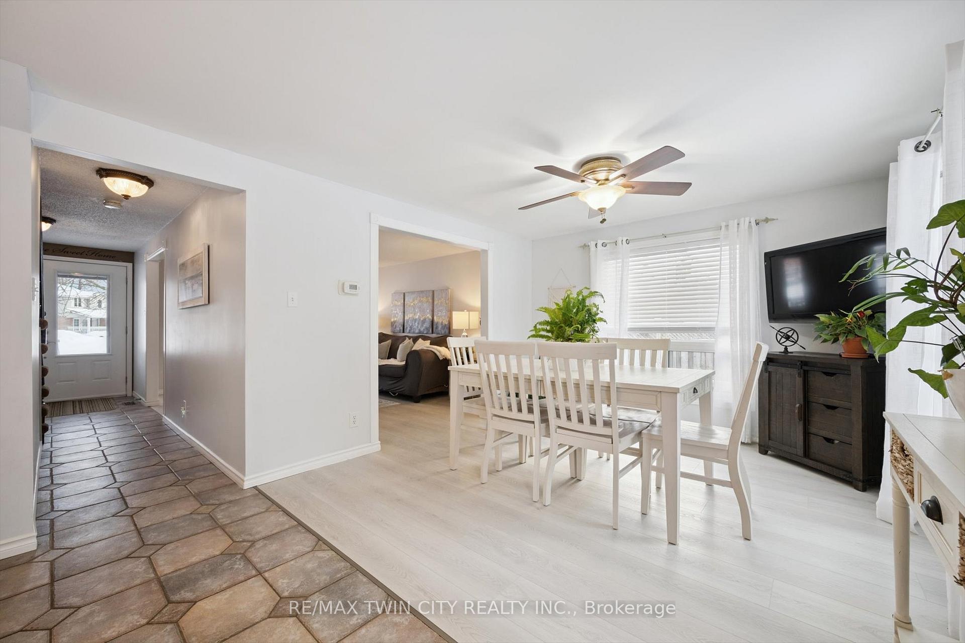 A rare opportunity in Kitchener’s sought-after Forest Heights! Sitting on an impressive -acre lot-a true rural-style property in the heart of the city-this beautifully updated home offers space, privacy, and modern comfort rarely found in this area. Freshly painted throughout with new flooring and upgraded bathrooms, the home features an open-concept main floordesigned for everyday living and entertaining. The bright eat-in kitchen offers abundant counter and cabinet space and a convenient walkout to the backyard, perfect for outdoor dining or enjoying the expansive lot. The upper level includes three generous bedrooms and full bath, with the primary bedroom featuring a desirable cheater ensuite. Downstairs, the finished basement provides an additional bedroom, tons of storage, and flexible space for a family room, home office, or guest suite. An inside entry to the garage adds everyday convenience. With its oversized lot, thoughtful updates, and prime Forest Heights location close to schools, trails, shopping, and transit, this is a one-of-a-kind property that truly stands apart. Paint (2026), A/C (2023), Driveway (2021), Windows (2016), front door (2018), Garage door (2005), carpet (2016), main floor flooring (2026), Basement flooring (2019), and Kitchen (2005).