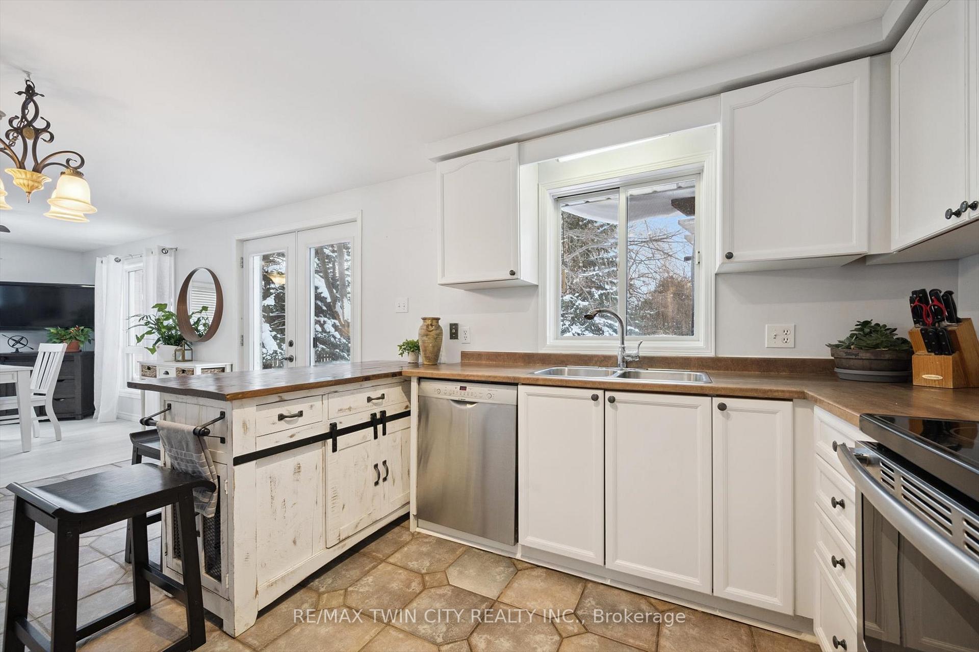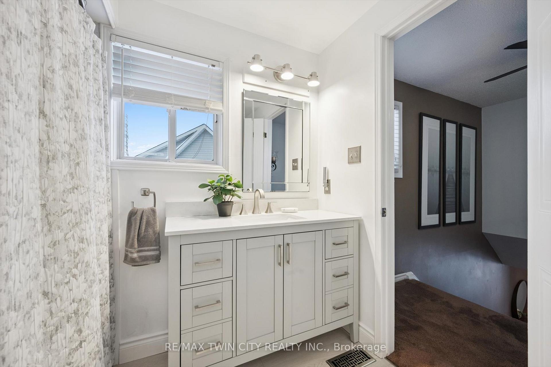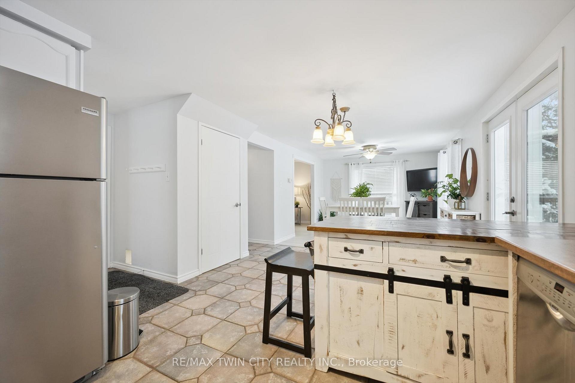 A rare opportunity in Kitchener’s sought-after Forest Heights! Sitting on an impressive -acre lot-a true rural-style property in the heart of the city-this beautifully updated home offers space, privacy, and modern comfort rarely found in this area. Freshly painted throughout with new flooring and upgraded bathrooms, the home features an open-concept main floordesigned for everyday living and entertaining. The bright eat-in kitchen offers abundant counter and cabinet space and a convenient walkout to the backyard, perfect for outdoor dining or enjoying the expansive lot. The upper level includes three generous bedrooms and full bath, with the primary bedroom featuring a desirable cheater ensuite. Downstairs, the finished basement provides an additional bedroom, tons of storage, and flexible space for a family room, home office, or guest suite. An inside entry to the garage adds everyday convenience. With its oversized lot, thoughtful updates, and prime Forest Heights location close to schools, trails, shopping, and transit, this is a one-of-a-kind property that truly stands apart. Paint (2026), A/C (2023), Driveway (2021), Windows (2016), front door (2018), Garage door (2005), carpet (2016), main floor flooring (2026), Basement flooring (2019), and Kitchen (2005).