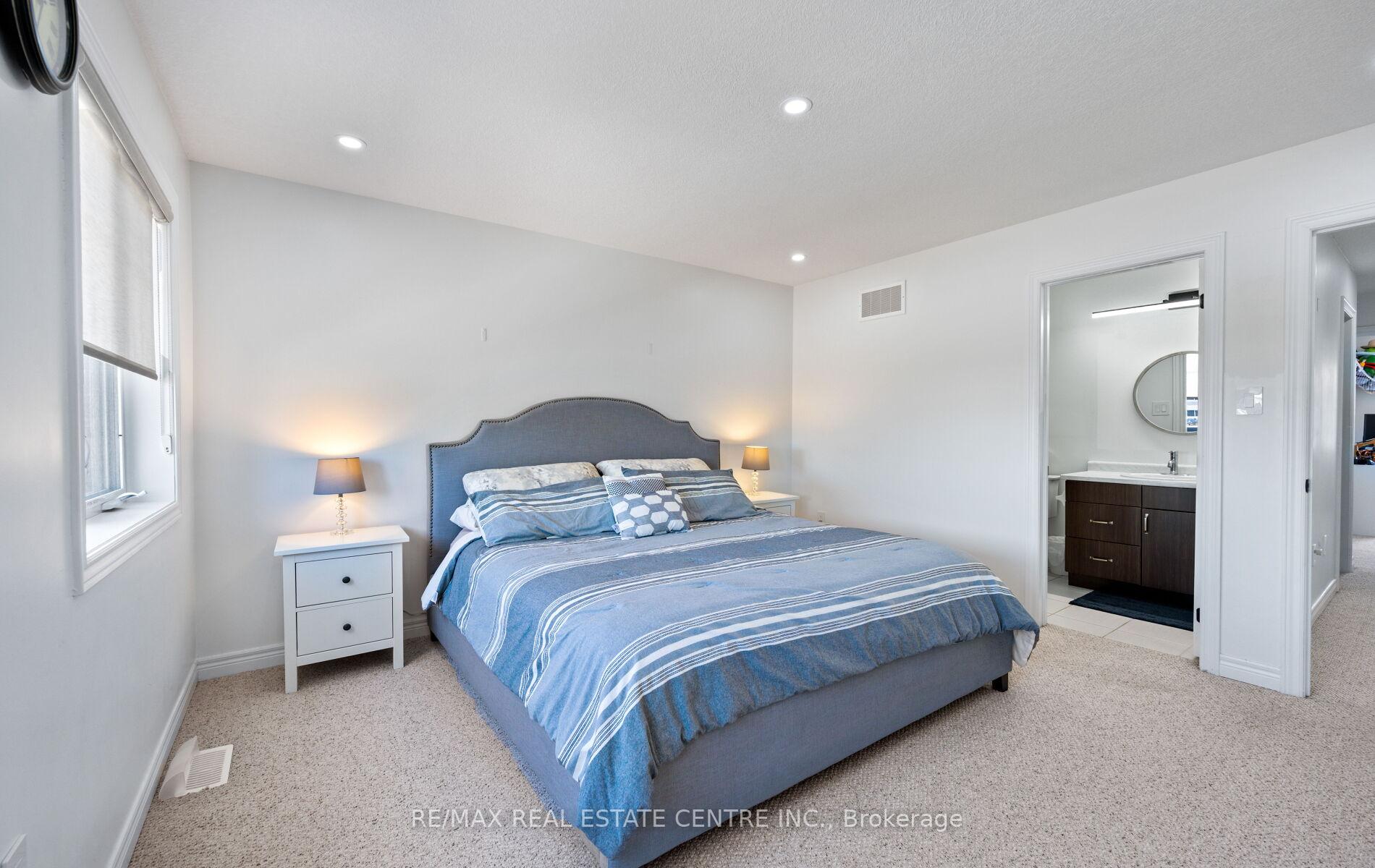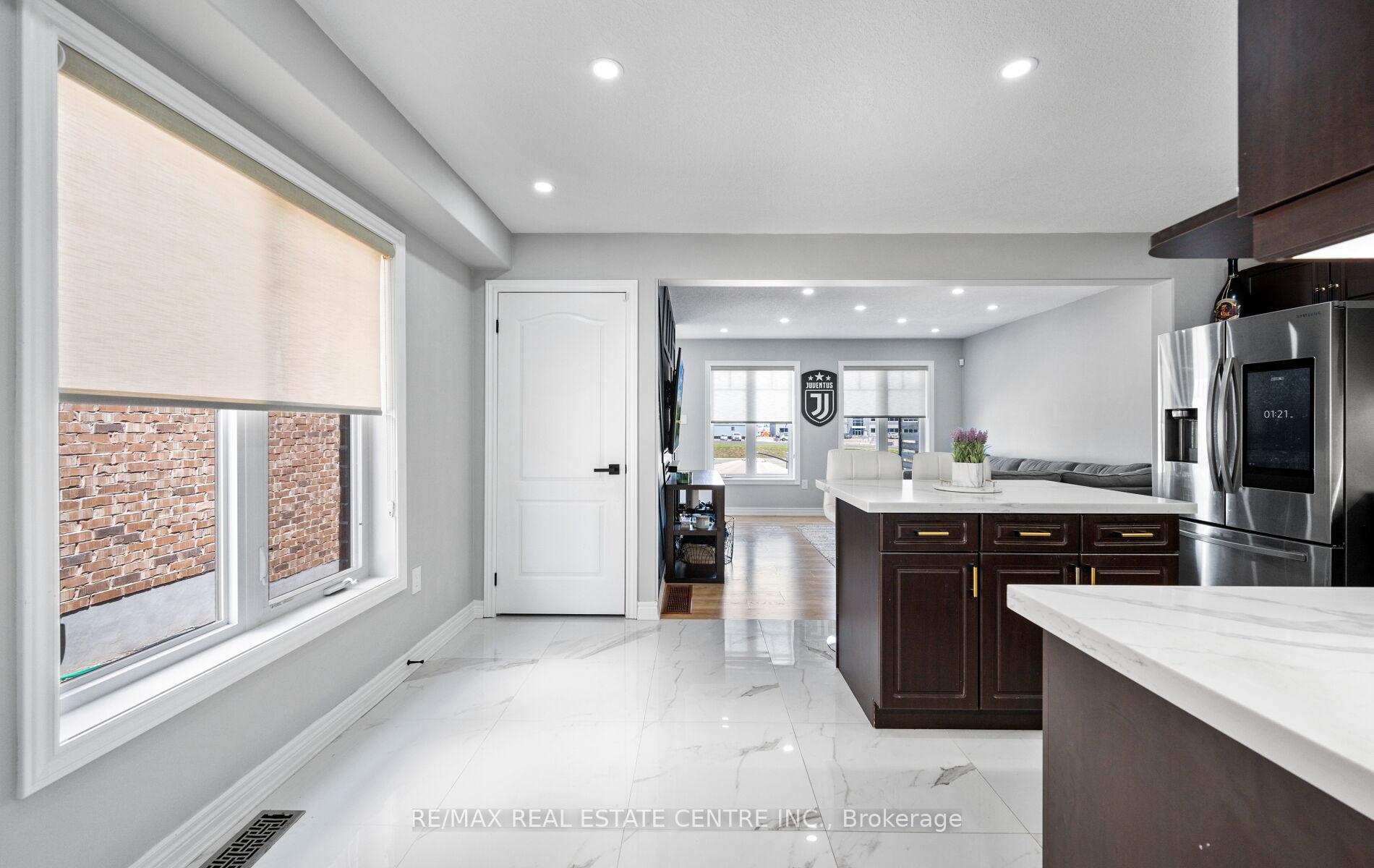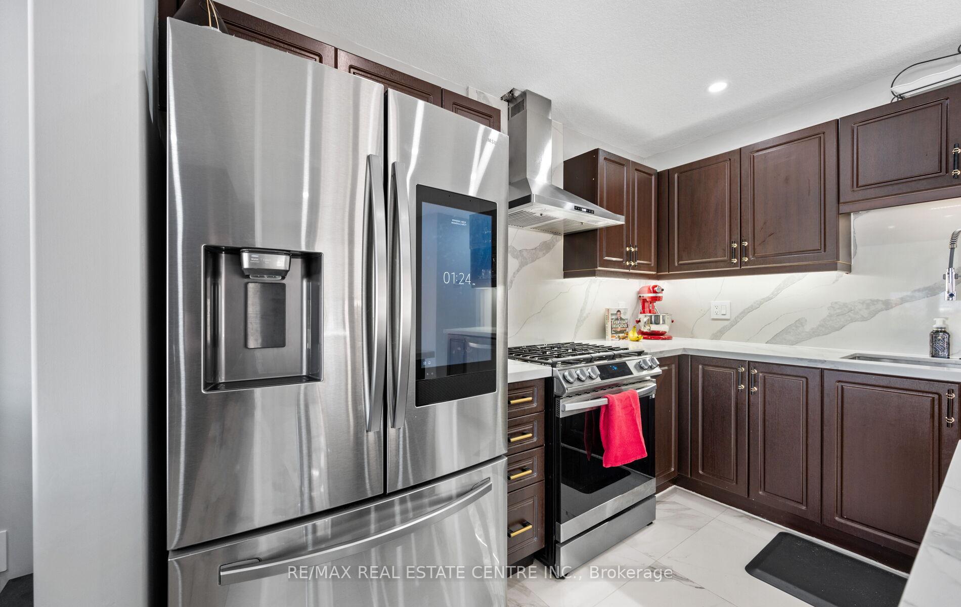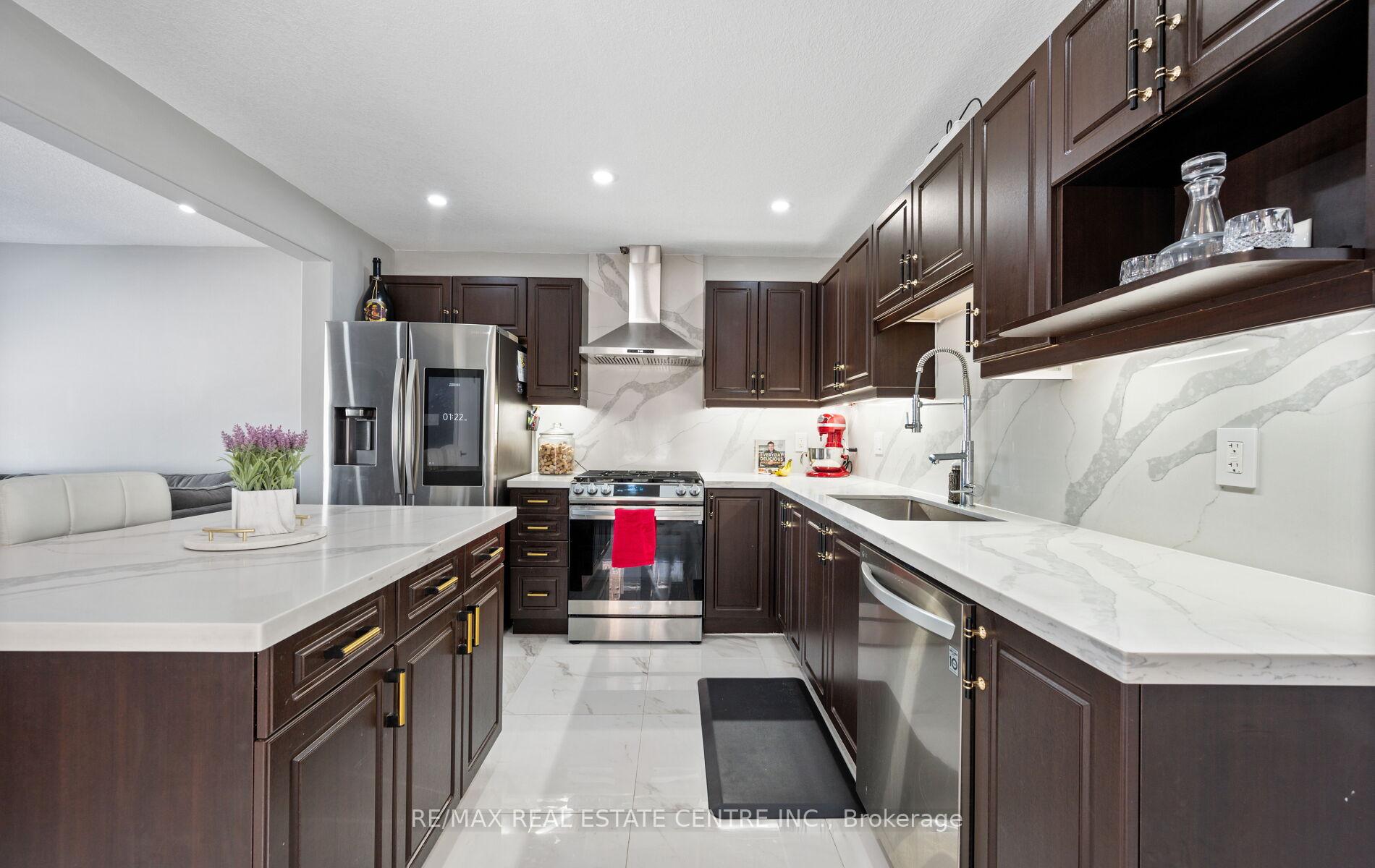 Stunning Upgraded End Unit Townhome on a Quiet Cul-De-Sac! This beautifully maintained home offers a spacious open-concept layout filled with natural light and no sidewalk for extra parking. Featuring upgraded tiles, modern baseboards, and wide plank laminate flooring throughout the main areas. Enjoy cozy comfort with updated Berber broadloom in the bedrooms. The sleek, modern kitchen is complete with stainless steel appliances, quartz countertops, stylish backsplash, and an undermount sink. Pot lights add a touch of elegance throughout. The primary bedroom boasts a private 3-piece ensuite. Step outside to a finished cobblestone backyard with an outdoor deckperfect for entertaining. Fully fenced with gated access for privacy and security. Located in a highly sought-after area, just minutes from schools, parks, shopping, transit, and more!