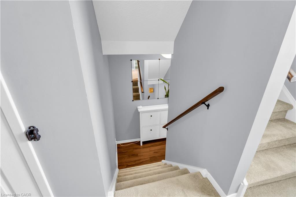 Welcome to this beautifully maintained END UNIT 3 bedroom, 2 bathroom condo townhome in a quiet, family-friendly neighbourhood. With neighbours on only one side, this home offers added privacy and a well-designed layout that balances comfort and function. The bright living and dining area is the heart of the home, perfect for everyday living and easy entertaining. The kitchen features a thoughtful pass-through to the dining area, making it ideal for hosting guests or enjoying everyday meals with ease. Both bathrooms have been tastefully renovated with modern, timeless finishes. Upstairs, three spacious bedrooms provide flexibility for families, guests, or a home office. The finished lower level adds exceptional versatility, perfect for a playroom, games room, hobby space, or even an additional bedroom, the choice is yours. The gardens are a true highlight, come spring, they burst into colour with beautiful perennials, creating a gardener’s dream setting. A large deck offers the perfect space to enjoy warm summer evenings or a quiet morning coffee. Ideally situated near the Georgetown GO Station, this home offers effortless commuting and convenient access to schools and everyday essentials, including grocery stores, restaurants, and local services. Complete with exclusive parking and situated in a desirable community, this inviting townhome is ready to welcome you home.
