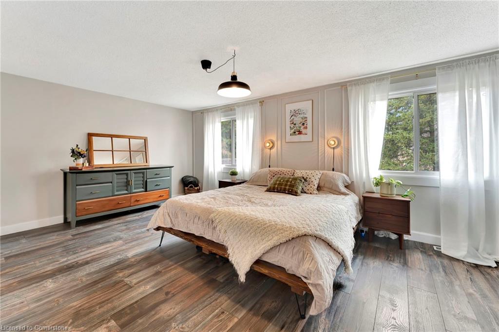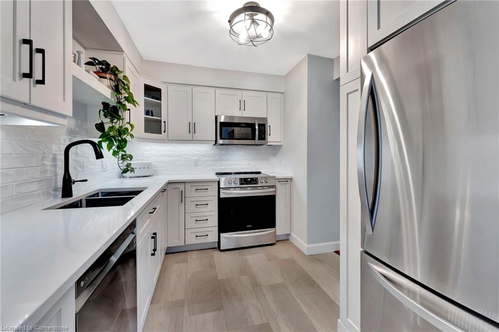 This is the one you have been waiting for! Welcome to this beautifully maintained semi-detached home tucked away on a quiet court in Waterloo, just steps from parks, trails, shopping and more. Many updates are evident upon first impressions and the modern entry door is only the beginning. You won’t mind staying in for meals, this Amazing recently renovated kitchen will be the envy of all your guests, complete with quartz countertops, subway tile backsplash and stainless steel appliances! Large bright updated windows and sliding doors, provide convenient access to the fenced backyard, with deck and many mature trees! Upstairs features 3 generous bedrooms and the primary feels like a luxury hotel suite, complete with cheater access to the stylishly renovated family bathroom. The fully finished basement offers even more living space perfect for relaxing or entertaining and 3pc bath. This is a true gem in a fantastic location! Make this home your own!