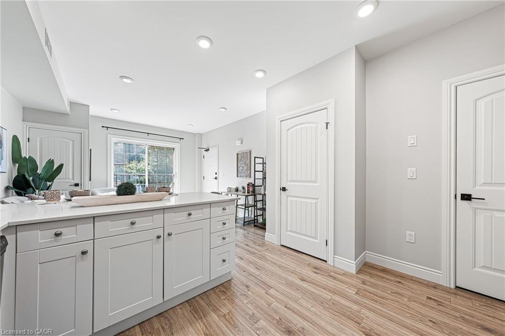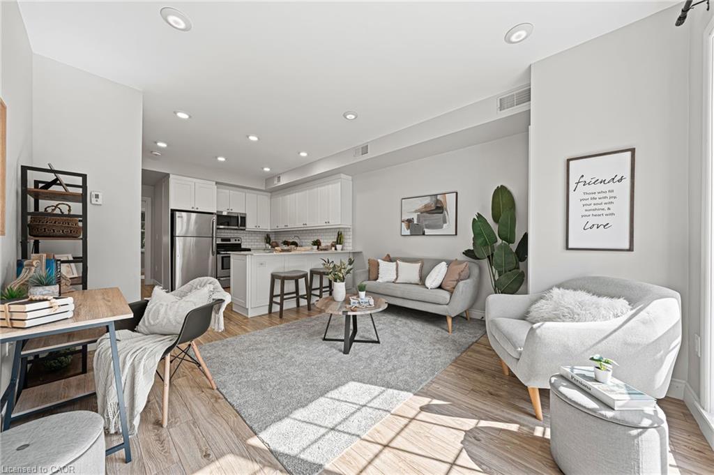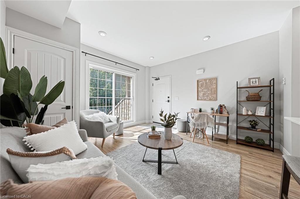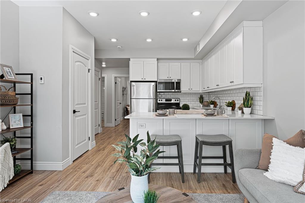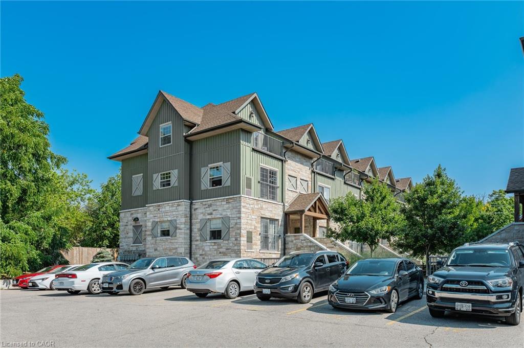 This beautifully crafted stacked condominium townhome offers the perfect blend of contemporary style and everyday comfort. Enjoy a bright, open-concept layout featuring a spacious living room and modern kitchen complete with gleaming quartz countertops and timeless cabinetry. The generously sized bedroom includes a large walk-in closet and a full 4-piece cheater ensuite, providing both convenience and privacy. Ideally located just steps from the scenic Spur Line Trail and only a short walk to Uptown Waterloo, Wilfrid Laurier University, University of Waterloo, Downtown Kitchener, the LRT, bus routes at your doorstep, and all essential amenities — this is truly exceptional uptown living!