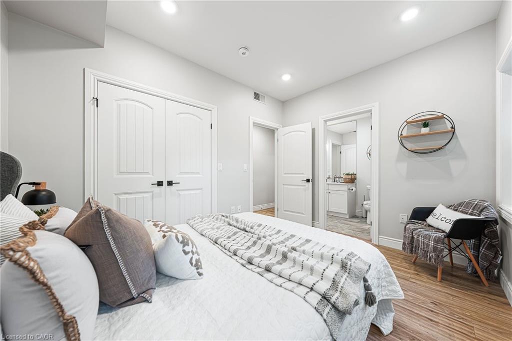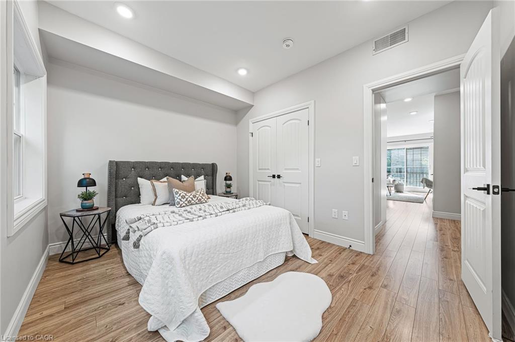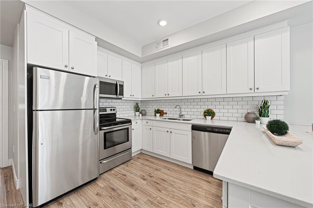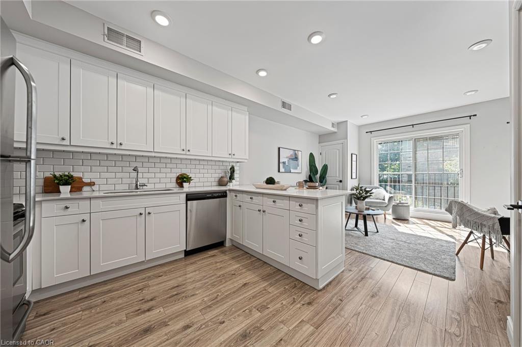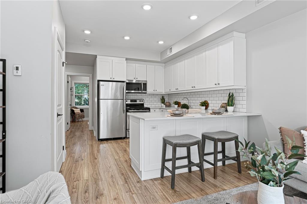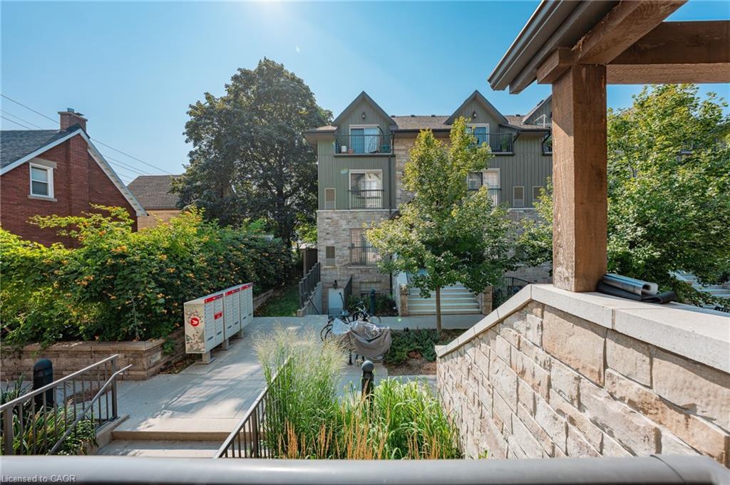 This beautifully crafted stacked condominium townhome offers the perfect blend of contemporary style and everyday comfort. Enjoy a bright, open-concept layout featuring a spacious living room and modern kitchen complete with gleaming quartz countertops and timeless cabinetry. The generously sized bedroom includes a large walk-in closet and a full 4-piece cheater ensuite, providing both convenience and privacy. Ideally located just steps from the scenic Spur Line Trail and only a short walk to Uptown Waterloo, Wilfrid Laurier University, University of Waterloo, Downtown Kitchener, the LRT, bus routes at your doorstep, and all essential amenities — this is truly exceptional uptown living!