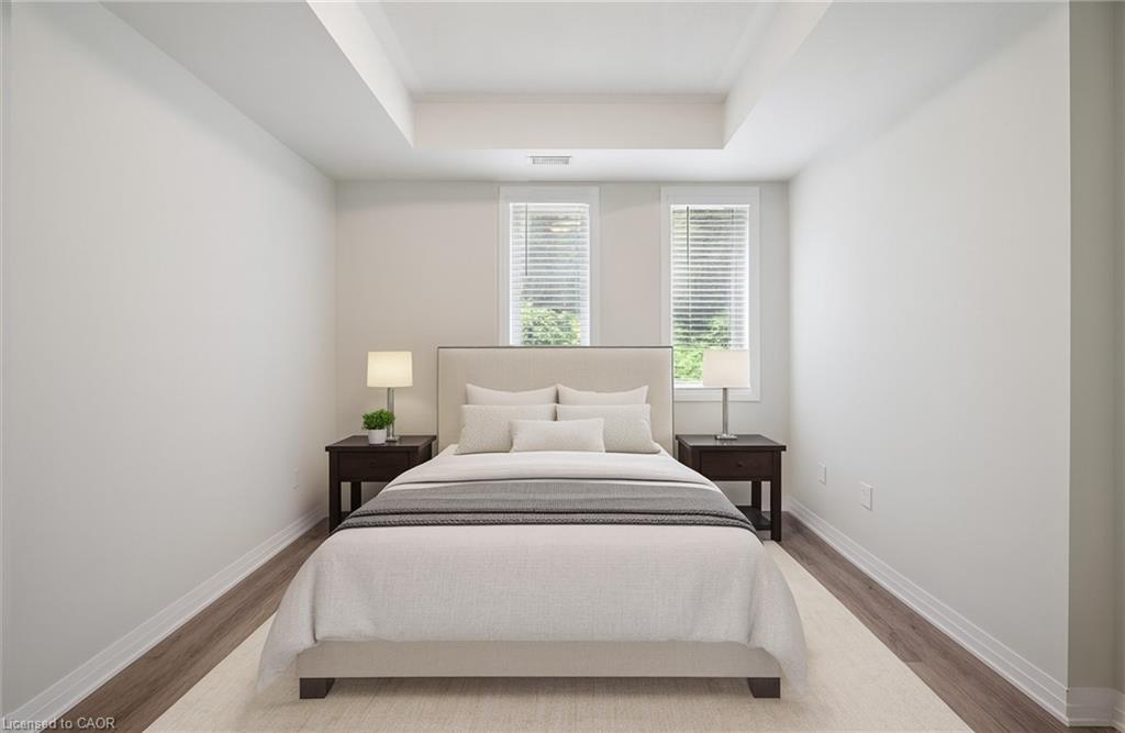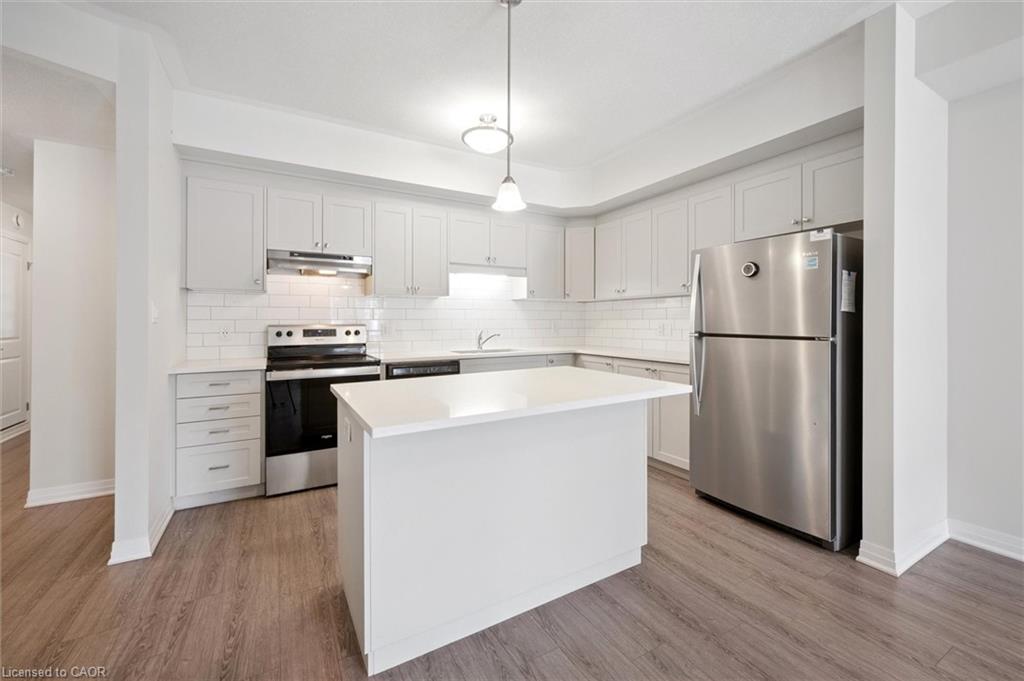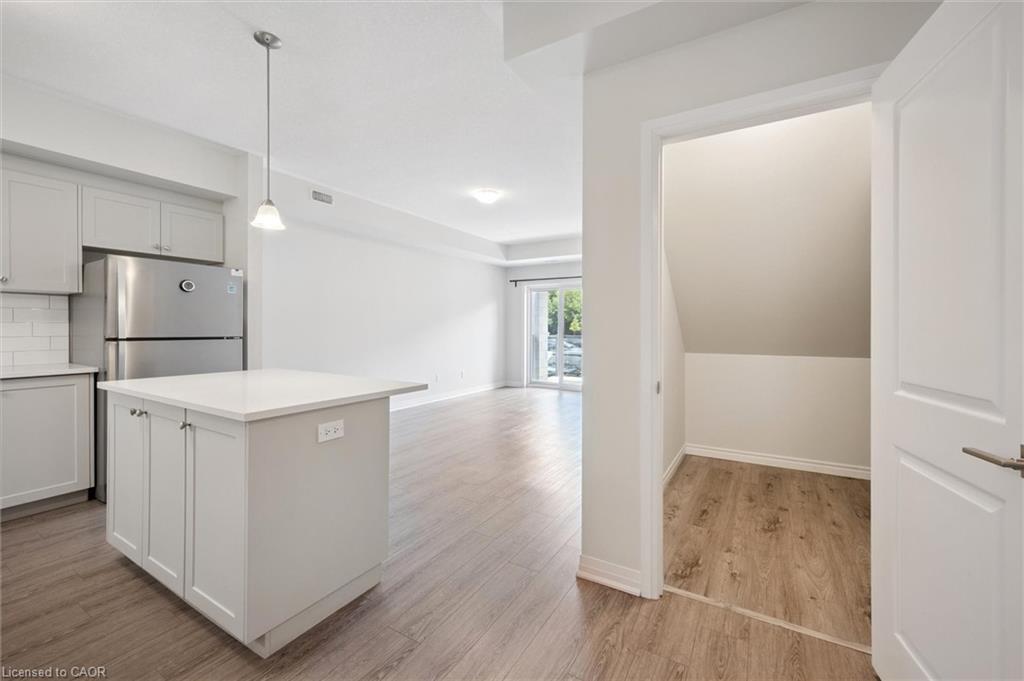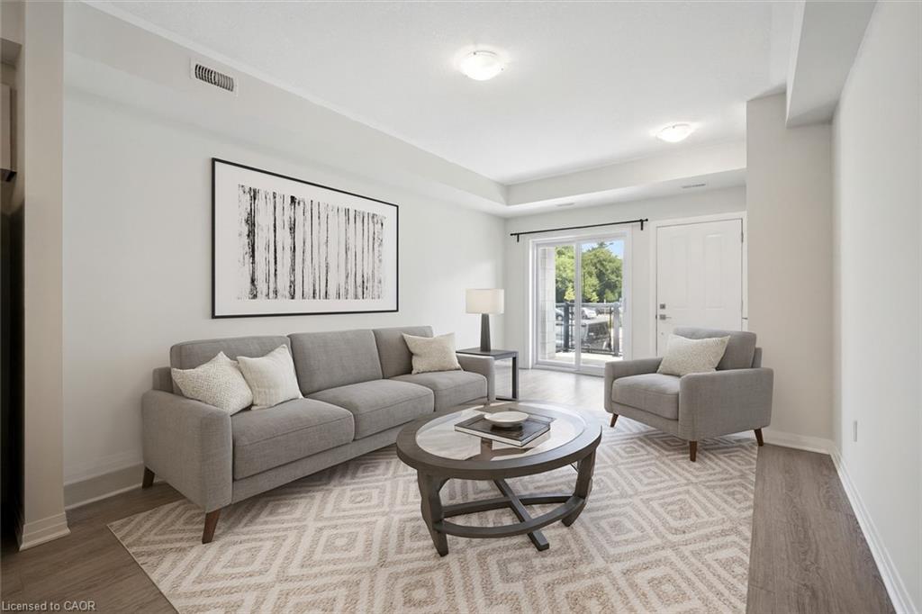 25 Isherwood Avenue Unit C34 offers a stylish blend of comfort and convenience in one of Cambridge’s most accessible locations. This bright main-floor bungalow-style 2-bedroom, 2-bath stacked townhome features an open-concept layout with a modern kitchen, stainless steel appliances, subway tile backsplash, and a central island that’s perfect for both cooking and gathering. The spacious primary suite includes a walk-in closet and a private 3-piece ensuite, while the second bedroom and full bath provide flexibility for guests or a home office. Large windows fill the space with natural light, and two private balconies offer peaceful views of green space and fresh-air living. Complete with one parking spot, this move-in-ready home is situated minutes from the Grand River trails, Riverside Park, the 401, and the vibrant Gaslight District, with its mix of dining, shopping, and entertainment—ideal for those seeking a low-maintenance lifestyle without sacrificing location.