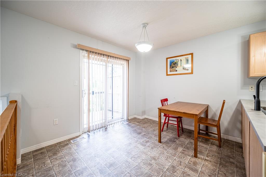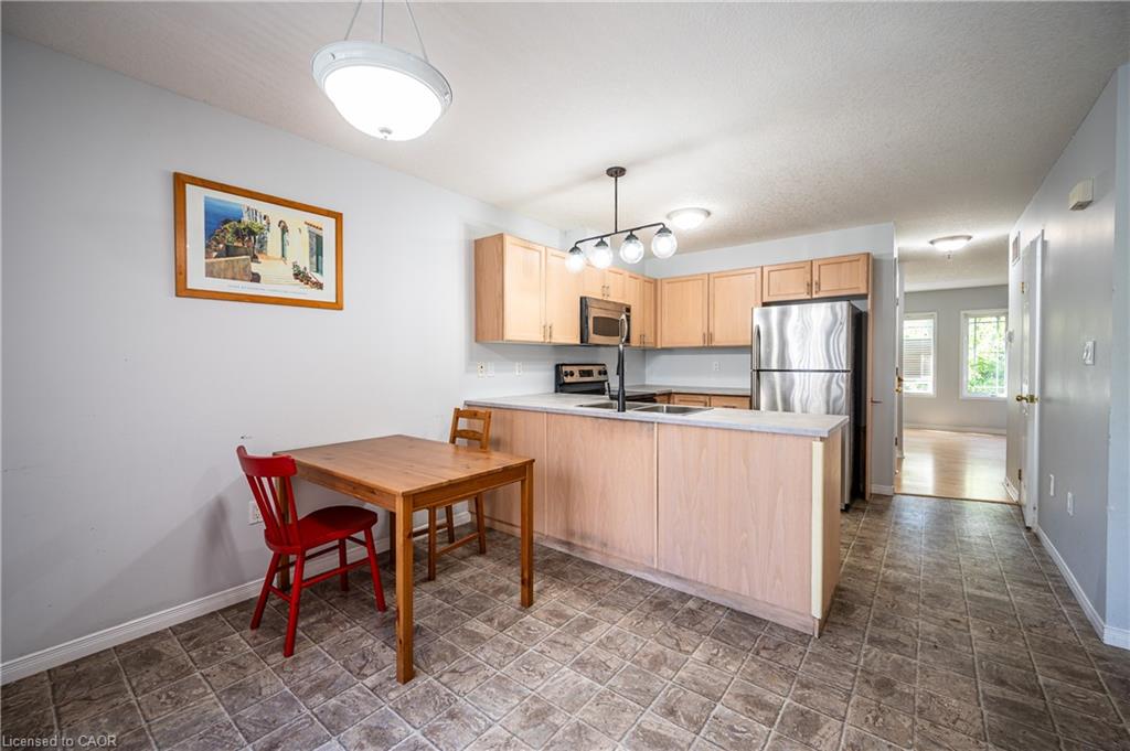 The property offers excellent management with consistently low condo fees, ensuring peace of mind and affordability. Ample visitor parking is available both inside and outside the complex. The dining area opens directly onto a private side patio, perfect for barbecues and outdoor relaxation. The spacious living room at the back features large windows that bring in plenty of natural light. Upstairs, you’ll find two generously sized bedrooms with newly upgraded flooring, providing a comfortable and modern living experience. The lower level offers a versatile space with a walkout to the backyard—ideal as a family room, home office, or additional bedroom. The basement includes a small kitchen and a 3-piece bathroom, adding even more functionality. This property is attractively priced and makes a great option for both investment and personal use. The home is currently vacant and move-in ready. Don’t miss this opportunity—book your showing today!