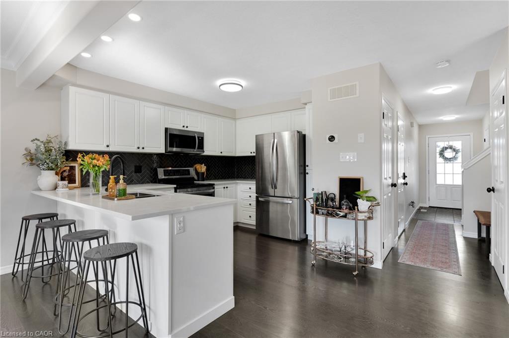 Nestled in the highly sought-after Lackner Woods and Idlewood area, this beautifully finished Executive Stone Front 3-bedroom, 3-bath (including private ensuite bath) End Unit-Townhome offers the perfect blend of modern living and natural serenity. Inside, the home boasts sleek finishes, High-End Quartz Counters w/black faucets throughout kitchen & all baths. Spacious layout, w/ dining room feature and large living room w/ walkout, ideal for entertaining, and wow-featuring a rarely found walk-out basement that leads directly to the park, creating a seamless connection to the outdoors. All top stainless steel appliances and washer & dryer included. Enjoy entertaining or relaxing on the upper and lower decks, perfect for gatherings or quiet evenings. Best of all you’re just minutes away from the slopes of Chicopee Ski Hill, while nature trails and the Grand River surround you, providing a peaceful, scenic backdrop. With quick access to Highway 401, Perfectly situated for families, this home is within walking distance of top-rated schools, including the new Chicopee Hills school and the upcoming state-of-the-art Catholic high school. Whether you’re a nature lover or a commuter, this location is ideal. Don’t miss this rare opportunity to live in one of the most desirable neighborhoods, where convenience meets tranquility.
