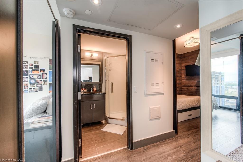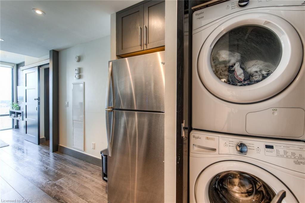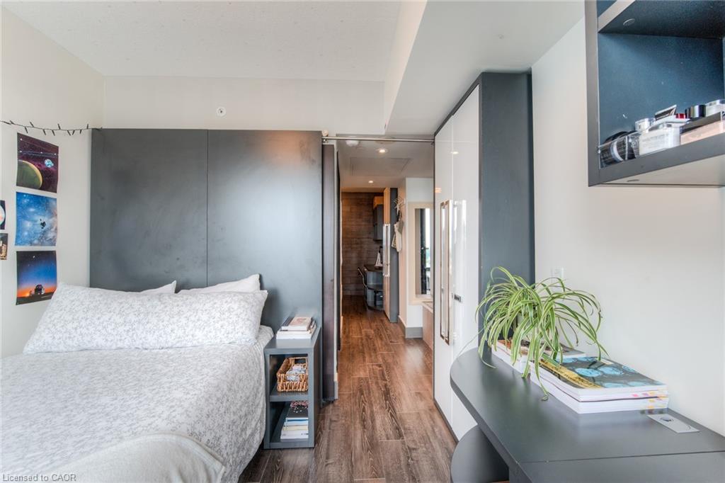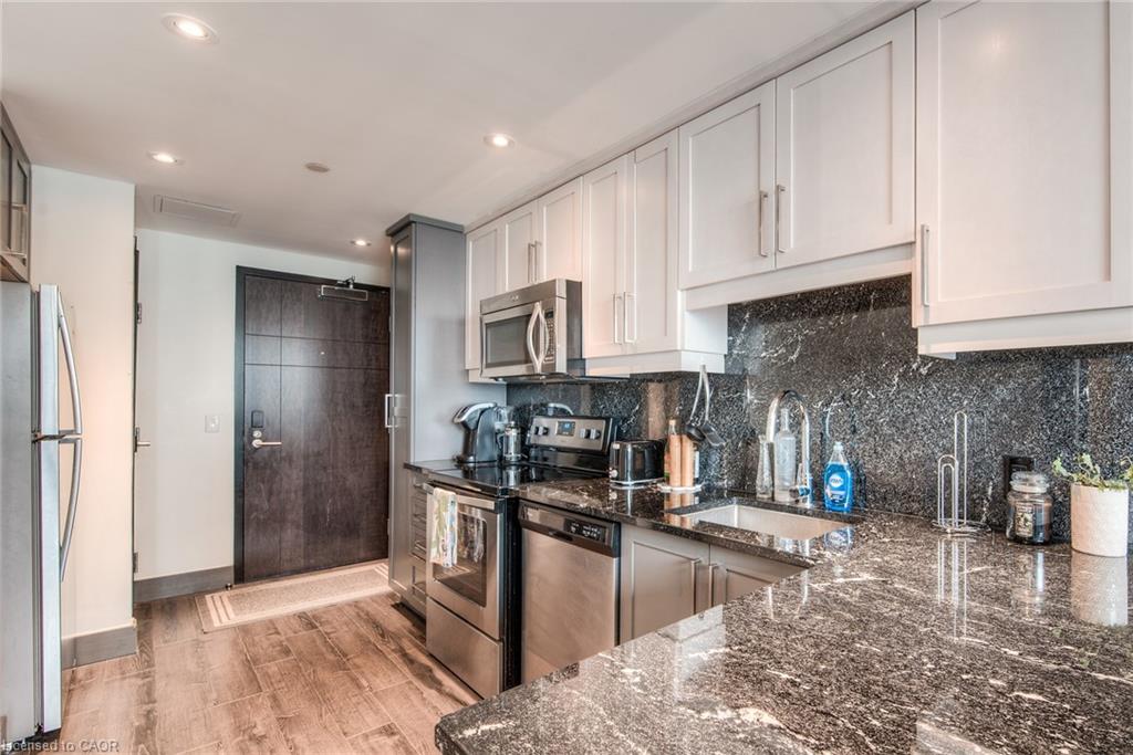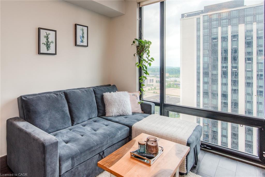 Welcome to ICON 330! The highly sought after luxe student condo located within walking distance of to all the amenities that make Waterloo great! Across the street from University of Waterloo’s main campus east boundary. Central to the University core, nearby pubs/restaurants/cafes, Waterloo Park, and ION transit (also almost across the street), this is the most desirable location for all students and potential investors! Located in the south tower, this suite is a luxurious 1 bedroom + den. This unit has never been rented – always owner occupied since first day of ownership – and it shows AAA. All interior finishings are highly modernized, featuring accent wood laminate walls, dark wide-plank laminate flooring, granite countertop and backsplash, and upgraded appliances. Kitchen Whirlpool appliance package includes: OTR microwave, refrigerator, stove, and dishwasher. There is also in-suite laundry closet with appliances provided by Whirlpool. Furnishings include: bed bases, dressers, desks, shelves. This unit does not go without the spectacular amenities provided by the building located on the 8th level! These amenities include: fitness center, yoga studio, games room, media room, rooftop patio, student lounges & study areas in a secure building with fob access and concierge security. This community will work well for inspired tech/university employees, parent seeking a luxe lifestyle within a hub loaded with modern amenities for their university bound kid, or entry level investor looking for high-quality turnkey opportunity. Call your REALTOR to arrange a private showing.